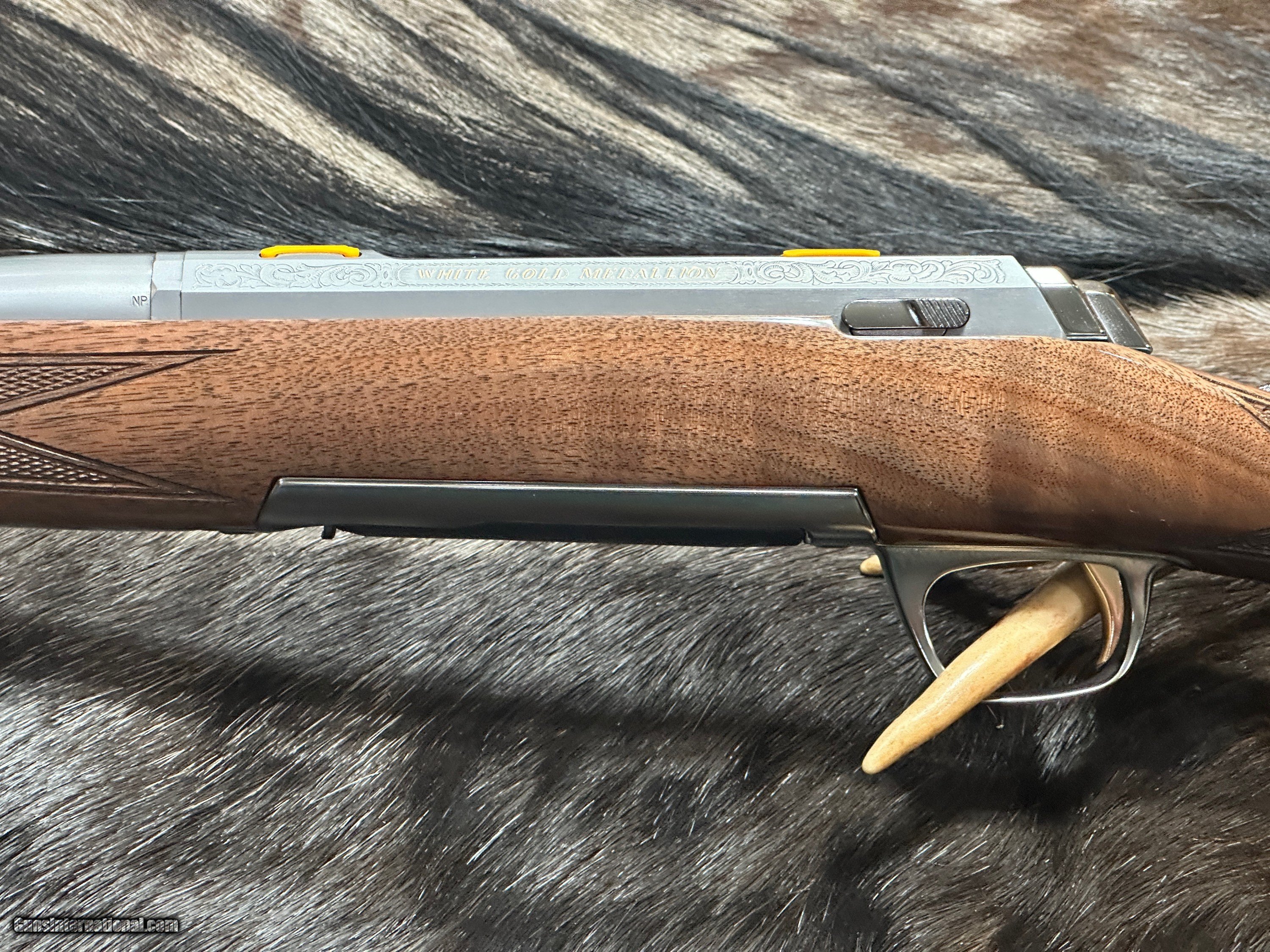 Description: NEW BROWNING X-BOLT WHITE GOLD MEDALLION IN 300 WINCHESTER MAGNUM WITH GOOD WOOD STOCK - LAYAWAY AVAILABLE. UNLIKE OTHER SELLERS, JD OUTFITTERS DOES NOT FALSELY CLAIM TO HAVE “INVENTORY” BUT THEN DROP-SHIPS SOME UNKNOWN AND UNSEEN RIFLE FROM A THIRD-PARTY WAREHOUSE. NOR DOES JD OUTFITTERS USE STOCK OR GENERIC PHOTOS. THE RIFLE YOU SEE IS IN INVENTORY, READY TO SHIP, AND IS THE RIFLE YOU WILL RECEIVE! FREE AFRICAN SAFARI WITH KUCHE SAFARIS (: KUCHE.CO.ZA) INCLUDED WITH THIS RIFLE! SAFARI IS FOR 1-HUNTER / 5-DAYS / 3-ANIMALS (IMPALA, BLESBUCK, WARTHOG). SAFARI IS CUSTOMIZABLE WITH AS MANY ADDITIONAL DAYS AND ANIMALS AS YOU WANT. THE CERTIFICATE IS GOOD FOR 3-YEARS FROM DATE OF PURCHASE AND WILL BE EMAILED TO YOU. NOTE: THE SAFARI IS FREE AND DOES NOT ADD ANY COST TO THE FIREARM. BUY A SCOPE AND RINGS/BASES FROM JD OUTFITTERS AND RECEIVE FREE MOUNTING. JD OUTFITTERS STOCKS LEUPOLD, SWAROVSKI, KAHLES, AND MANY OTHER SCOPES. Features Of This Great Bolt Action Rifle Include: