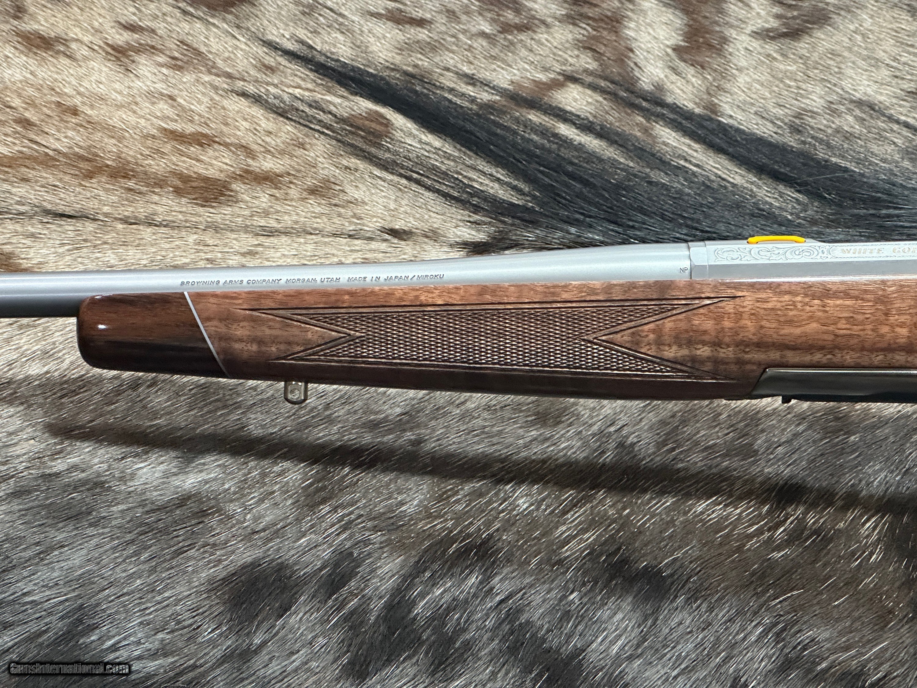 Description: NEW BROWNING X-BOLT WHITE GOLD MEDALLION IN 7MM REMINGTON MAGNUM WITH GREAT WOOD STOCK - LAYAWAY AVAILABLE. UNLIKE OTHER SELLERS, JD OUTFITTERS DOES NOT FALSELY CLAIM TO HAVE “INVENTORY” BUT THEN DROP-SHIPS SOME UNKNOWN AND UNSEEN RIFLE FROM A THIRD-PARTY WAREHOUSE. NOR DOES JD OUTFITTERS USE STOCK OR GENERIC PHOTOS. THE RIFLE YOU SEE IS IN INVENTORY, READY TO SHIP, AND IS THE RIFLE YOU WILL RECEIVE! FREE AFRICAN SAFARI WITH KUCHE SAFARIS (: KUCHE.CO.ZA) INCLUDED WITH THIS RIFLE! SAFARI IS FOR 1-HUNTER / 5-DAYS / 3-ANIMALS (IMPALA, BLESBUCK, WARTHOG). SAFARI IS CUSTOMIZABLE WITH AS MANY ADDITIONAL DAYS AND ANIMALS AS YOU WANT. THE CERTIFICATE IS GOOD FOR 3-YEARS FROM DATE OF PURCHASE AND WILL BE EMAILED TO YOU. NOTE: THE SAFARI IS FREE AND DOES NOT ADD ANY COST TO THE FIREARM. BUY A SCOPE AND RINGS/BASES FROM JD OUTFITTERS AND RECEIVE FREE MOUNTING. JD OUTFITTERS STOCKS LEUPOLD, SWAROVSKI, KAHLES, AND MANY OTHER SCOPES. Features Of This Great Bolt Action Rifle Include: