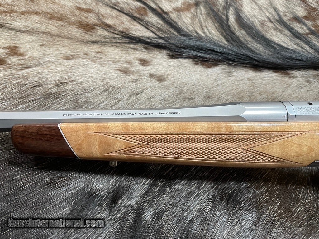 Description: NEW LIMITED EDITION BROWNING X-BOLT WHITE GOLD MEDALLION MAPLE IN 22-250 REMINGTON - LAYAWAY AVAILABLE. THIS IS A VERY SPECIAL LIMITED PRODUCTION BROWNING X-BOLT WITH AN OCTAGON BARREL, BEAUTIFUL AAA+ GRADE MAPLE STOCK WITH ROSEWOOD GRIP AND FOREND CAPS AND STAINLESS RECEIVER AND BARREL. ONCE THESE ARE GONE, THEY ARE GONE! GET YOURS WHILE YOU CAN!THE RIFLE YOU SEE IN THE PICTURES IS THE RIFLE YOU WILL RECEIVE! FREE AFRICAN SAFARI WITH KUCHE SAFARIS (KUCHE.CO.ZA) INCLUDED WITH THIS RIFLE! SAFARI IS FOR 1-HUNTER / 5-DAYS / 3-ANIMALS (IMPALA, BLESBUCK, WARTHOG). ADDITIONAL DAYS, ANIMALS MAY BE ADDED AS DESIRED. CERTIFICATE PROVIDED UPON PURCHASE. NOTE: THE SAFARI IS FREE AND DOES NOT ADD ANY COST TO THE RIFLE PURCHASE A SCOPE AND BASES/RINGS FROM JD OUTFITTERS AND RECEIVE FREE MOUNTING BEFORE THE RIFLE SHIPS. Features Of This Great Bolt Action Rifle Include: