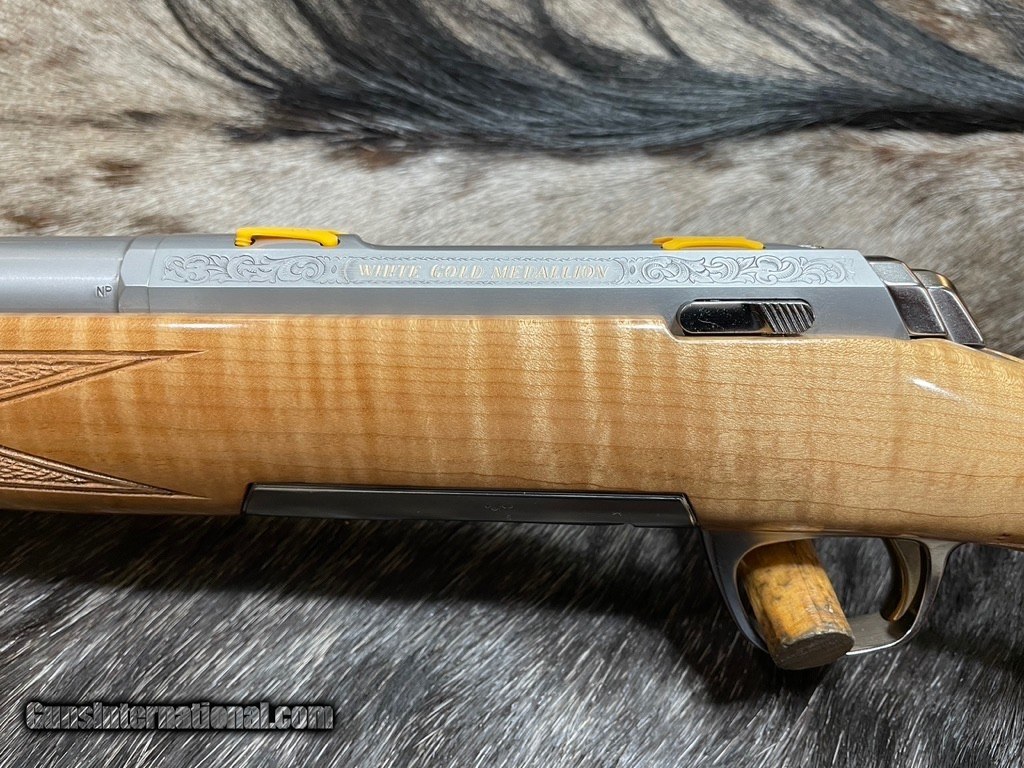 Description: NEW LIMITED EDITION BROWNING X-BOLT WHITE GOLD MEDALLION MAPLE IN 22-250 REMINGTON - LAYAWAY AVAILABLE. THIS IS A VERY SPECIAL LIMITED PRODUCTION BROWNING X-BOLT WITH AN OCTAGON BARREL, BEAUTIFUL AAA+ GRADE MAPLE STOCK WITH ROSEWOOD GRIP AND FOREND CAPS AND STAINLESS RECEIVER AND BARREL. ONCE THESE ARE GONE, THEY ARE GONE! GET YOURS WHILE YOU CAN! THE RIFLE YOU SEE IN THE PICTURES IS THE RIFLE YOU WILL RECEIVE! FREE AFRICAN SAFARI WITH KUCHE SAFARIS (KUCHE.CO.ZA) INCLUDED WITH THIS RIFLE! SAFARI IS FOR 1-HUNTER / 5-DAYS / 3-ANIMALS (IMPALA, BLESBUCK, WARTHOG). ADDITIONAL DAYS, ANIMALS MAY BE ADDED AS DESIRED. CERTIFICATE PROVIDED UPON PURCHASE. NOTE: THE SAFARI IS FREE AND DOES NOT ADD ANY COST TO THE RIFLE PURCHASE A SCOPE AND BASES/RINGS FROM JD OUTFITTERS AND RECEIVE FREE MOUNTING BEFORE THE RIFLE SHIPS. Features Of This Great Bolt Action Rifle Include: