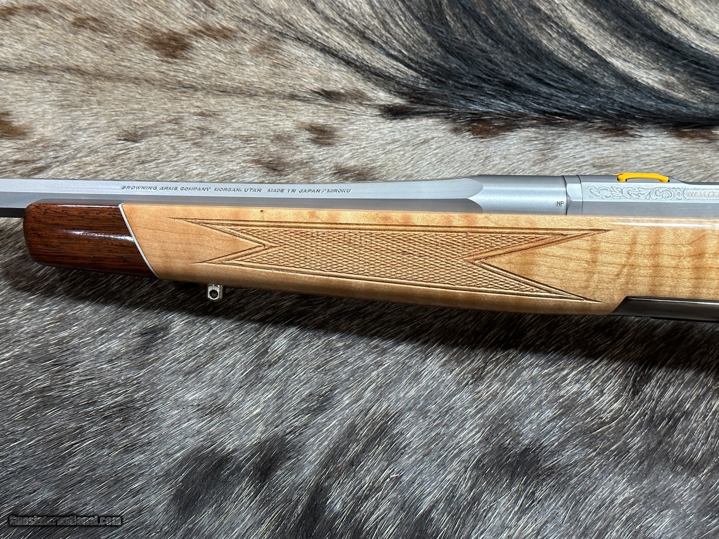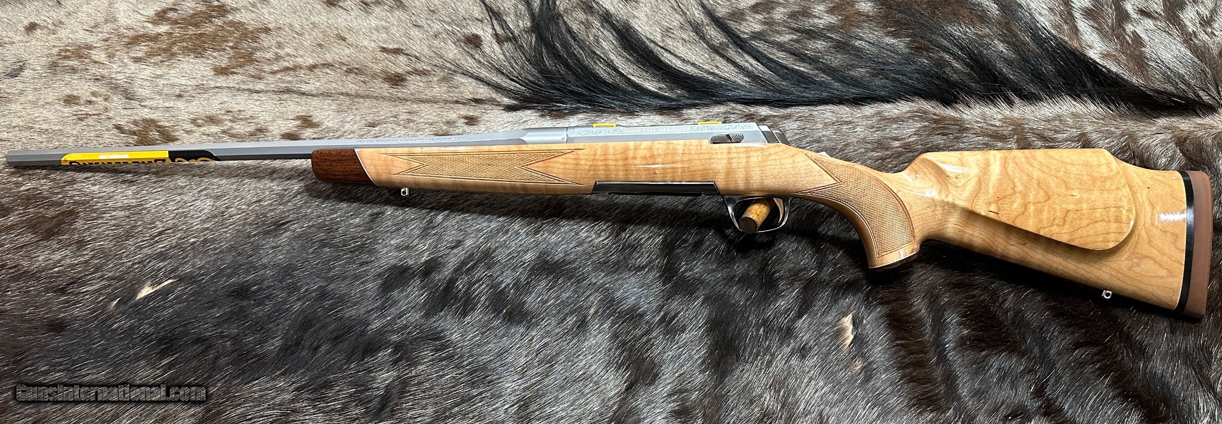 Description: NEW LIMITED EDITION BROWNING X-BOLT WHITE GOLD MEDALLION MAPLE IN 243 WINCHESTER - LAYAWAY AVAILABLE. THIS IS A VERY SPECIAL LIMITED PRODUCTION BROWNING X-BOLT WITH AN OCTAGON BARREL, BEAUTIFUL AAA+ GRADE MAPLE STOCK WITH ROSEWOOD GRIP AND FOREND CAPS AND STAINLESS RECEIVER AND BARREL. ONCE THESE ARE GONE, THEY ARE GONE! GET YOURS WHILE YOU CAN! THE RIFLE YOU SEE IN THE PICTURES IS THE RIFLE YOU WILL RECEIVE! FREE AFRICAN SAFARI WITH KUCHE SAFARIS (KUCHE.CO.ZA) INCLUDED WITH THIS RIFLE! SAFARI IS FOR 1-HUNTER / 5-DAYS / 3-ANIMALS (IMPALA, BLESBUCK, WARTHOG). ADDITIONAL DAYS, ANIMALS MAY BE ADDED AS DESIRED. CERTIFICATE PROVIDED UPON PURCHASE. NOTE: THE SAFARI IS FREE AND DOES NOT ADD ANY COST TO THE RIFLE PURCHASE A SCOPE AND BASES/RINGS FROM JD OUTFITTERS AND RECEIVE FREE MOUNTING BEFORE THE RIFLE SHIPS. Features Of This Great Bolt Action Rifle Include:
