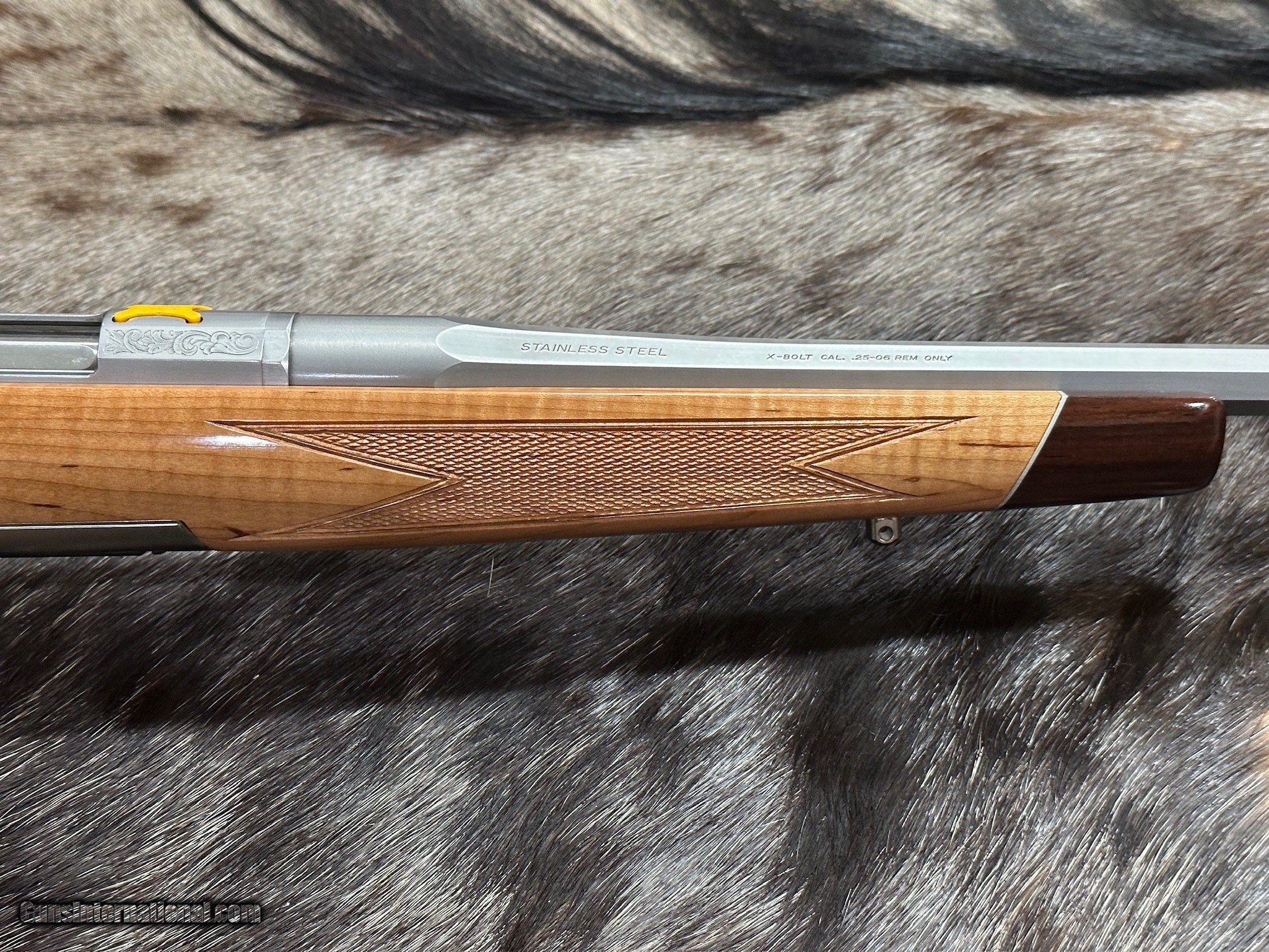 Description: NEW LIMITED EDITION BROWNING X-BOLT WHITE GOLD MEDALLION MAPLE IN 25-06 REMINGTON - LAYAWAY AVAILABLE. THIS IS A VERY SPECIAL LIMITED PRODUCTION BROWNING X-BOLT WITH AN OCTAGON BARREL, BEAUTIFUL AAA+ GRADE MAPLE STOCK WITH ROSEWOOD GRIP AND FOREND CAPS AND STAINLESS RECEIVER AND BARREL. ONCE THESE ARE GONE, THEY ARE GONE! GET YOURS WHILE YOU CAN! THE RIFLE YOU SEE IN THE PICTURES IS THE RIFLE YOU WILL RECEIVE! FREE AFRICAN SAFARI WITH KUCHE SAFARIS (: KUCHE.CO.ZA) INCLUDED WITH THIS RIFLE! SAFARI IS FOR 1-HUNTER / 5-DAYS / 3-ANIMALS (IMPALA, BLESBUCK, WARTHOG). SAFARI IS CUSTOMIZABLE WITH AS MANY ADDITIONAL DAYS AND ANIMALS AS YOU WANT. THE CERTIFICATE IS GOOD FOR 3-YEARS FROM DATE OF PURCHASE AND WILL BE EMAILED TO YOU. NOTE: THE SAFARI IS FREE AND DOES NOT ADD ANY COST TO THE FIREARM. PURCHASE A SCOPE AND BASES/RINGS FROM JD OUTFITTERS AND RECEIVE FREE MOUNTING BEFORE THE RIFLE SHIPS Features Of This Great Bolt Action Rifle Include: