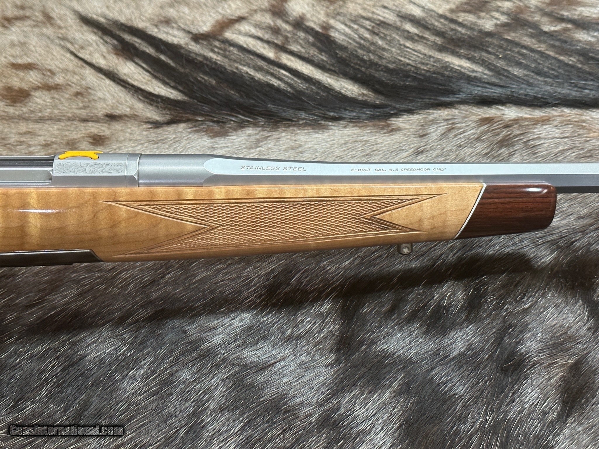 Description: NEW LIMITED EDITION BROWNING X-BOLT WHITE GOLD MEDALLION MAPLE IN 6.5 CREEDMOOR - LAYAWAY AVAILABLE. THIS IS A VERY SPECIAL LIMITED PRODUCTION BROWNING X-BOLT WITH AN OCTAGON BARREL, BEAUTIFUL AAA+ GRADE MAPLE STOCK WITH ROSEWOOD GRIP AND FOREND CAPS AND STAINLESS RECEIVER AND BARREL. ONCE THESE ARE GONE, THEY ARE GONE! GET YOURS WHILE YOU CAN! THE RIFLE YOU SEE IN THE PICTURES IS THE RIFLE YOU WILL RECEIVE! FREE AFRICAN SAFARI WITH KUCHE SAFARIS (KUCHE.CO.ZA) INCLUDED WITH THIS RIFLE! SAFARI IS FOR 1-HUNTER / 5-DAYS / 3-ANIMALS (IMPALA, BLESBUCK, WARTHOG). ADDITIONAL DAYS, ANIMALS MAY BE ADDED AS DESIRED. CERTIFICATE PROVIDED UPON PURCHASE. NOTE: THE SAFARI IS FREE AND DOES NOT ADD ANY COST TO THE RIFLE PURCHASE A SCOPE AND BASES/RINGS FROM JD OUTFITTERS AND RECEIVE FREE MOUNTING BEFORE THE RIFLE SHIPS. Features Of This Great Bolt Action Rifle Include: