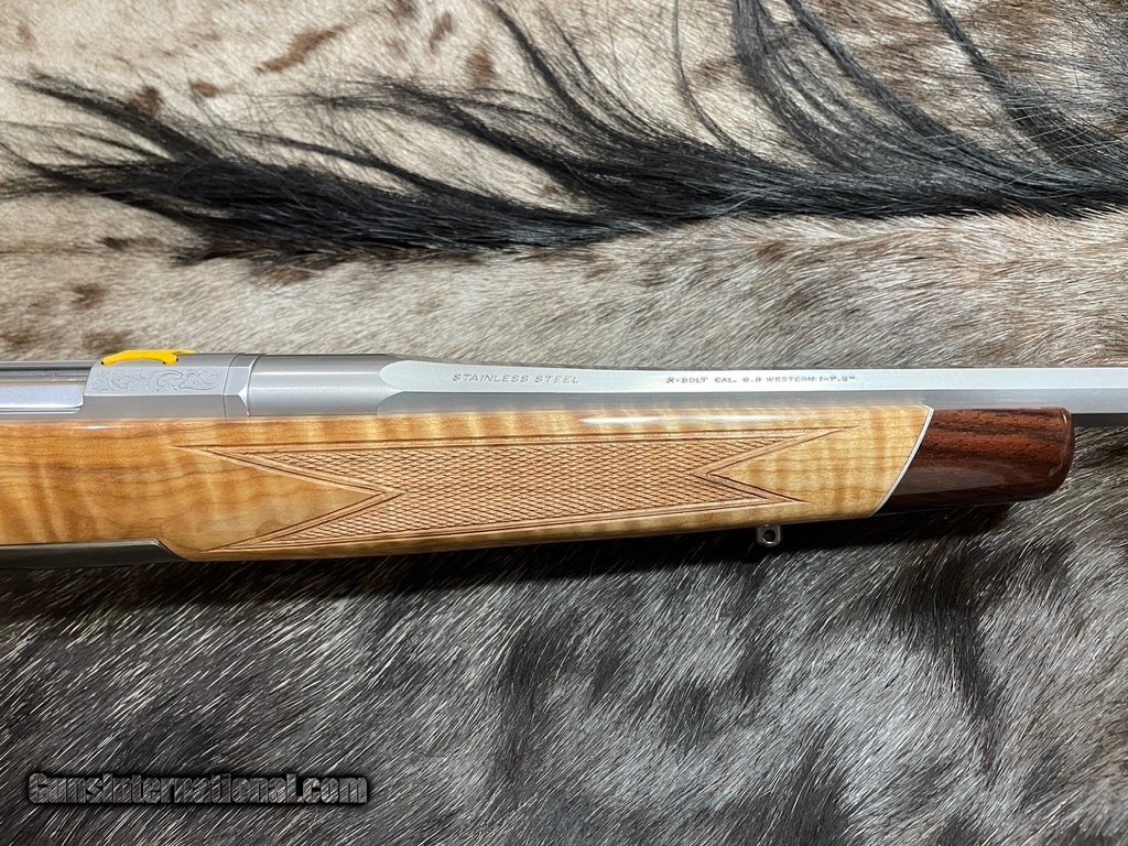 Description: NEW LIMITED EDITION BROWNING X-BOLT WHITE GOLD MEDALLION MAPLE IN 6.8 WESTERN - LAYAWAY AVAILABLE. THIS IS A VERY SPECIAL LIMITED PRODUCTION BROWNING X-BOLT WITH AN OCTAGON BARREL, BEAUTIFUL AAA+ GRADE MAPLE STOCK WITH ROSEWOOD GRIP AND FOREND CAPS AND STAINLESS RECEIVER AND BARREL. ONCE THESE ARE GONE, THEY ARE GONE! GET YOURS WHILE YOU CAN!THE RIFLE YOU SEE IN THE PICTURES IS THE RIFLE YOU WILL RECEIVE! FREE AFRICAN SAFARI WITH KUCHE SAFARIS (KUCHE.CO.ZA) INCLUDED WITH THIS RIFLE! SAFARI IS FOR 1-HUNTER / 5-DAYS / 3-ANIMALS (IMPALA, BLESBUCK, WARTHOG). ADDITIONAL DAYS, ANIMALS MAY BE ADDED AS DESIRED. CERTIFICATE PROVIDED UPON PURCHASE. NOTE: THE SAFARI IS FREE AND DOES NOT ADD ANY COST TO THE RIFLE PURCHASE A SCOPE AND BASES/RINGS FROM JD OUTFITTERS AND RECEIVE FREE MOUNTING BEFORE THE RIFLE SHIPS. Features Of This Great Bolt Action Rifle Include: