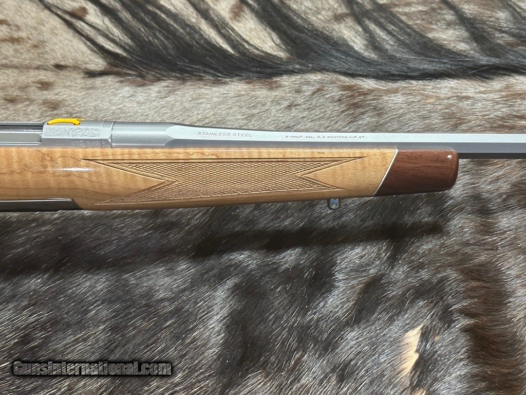 Description: NEW LIMITED EDITION BROWNING X-BOLT WHITE GOLD MEDALLION MAPLE IN 6.8 WESTERN - LAYAWAY AVAILABLE. THIS IS A VERY SPECIAL LIMITED PRODUCTION BROWNING X-BOLT WITH AN OCTAGON BARREL, BEAUTIFUL AAA+ GRADE MAPLE STOCK WITH ROSEWOOD GRIP AND FOREND CAPS AND STAINLESS RECEIVER AND BARREL. ONCE THESE ARE GONE, THEY ARE GONE! GET YOURS WHILE YOU CAN! THE RIFLE YOU SEE IN THE PICTURES IS THE RIFLE YOU WILL RECEIVE! FREE AFRICAN SAFARI WITH KUCHE SAFARIS (KUCHE.CO.ZA) INCLUDED WITH THIS RIFLE! SAFARI IS FOR 1-HUNTER / 5-DAYS / 3-ANIMALS (IMPALA, BLESBUCK, WARTHOG). ADDITIONAL DAYS, ANIMALS MAY BE ADDED AS DESIRED. CERTIFICATE PROVIDED UPON PURCHASE. NOTE: THE SAFARI IS FREE AND DOES NOT ADD ANY COST TO THE RIFLE PURCHASE A SCOPE AND BASES/RINGS FROM JD OUTFITTERS AND RECEIVE FREE MOUNTING BEFORE THE RIFLE SHIPS. Features Of This Great Bolt Action Rifle Include: