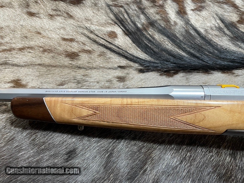 Description: NEW LIMITED EDITION BROWNING X-BOLT WHITE GOLD MEDALLION MAPLE IN 308 WINCHESTER - LAYAWAY AVAILABLE. THIS IS A VERY SPECIAL LIMITED PRODUCTION BROWNING X-BOLT WITH AN OCTAGON BARREL, BEAUTIFUL AAA+ GRADE MAPLE STOCK WITH ROSEWOOD GRIP AND FOREND CAPS AND STAINLESS RECEIVER AND BARREL. ONCE THESE ARE GONE, THEY ARE GONE! GET YOURS WHILE YOU CAN! THE RIFLE YOU SEE IN THE PICTURES IS THE RIFLE YOU WILL RECEIVE! FREE AFRICAN SAFARI WITH KUCHE SAFARIS (KUCHE.CO.ZA) INCLUDED WITH THIS RIFLE! SAFARI IS FOR 1-HUNTER / 5-DAYS / 3-ANIMALS (IMPALA, BLESBUCK, WARTHOG). ADDITIONAL DAYS, ANIMALS MAY BE ADDED AS DESIRED. CERTIFICATE PROVIDED UPON PURCHASE. NOTE: THE SAFARI IS FREE AND DOES NOT ADD ANY COST TO THE RIFLE PURCHASE A SCOPE AND BASES/RINGS FROM JD OUTFITTERS AND RECEIVE FREE MOUNTING BEFORE THE RIFLE SHIPS. Features Of This Great Bolt Action Rifle Include: