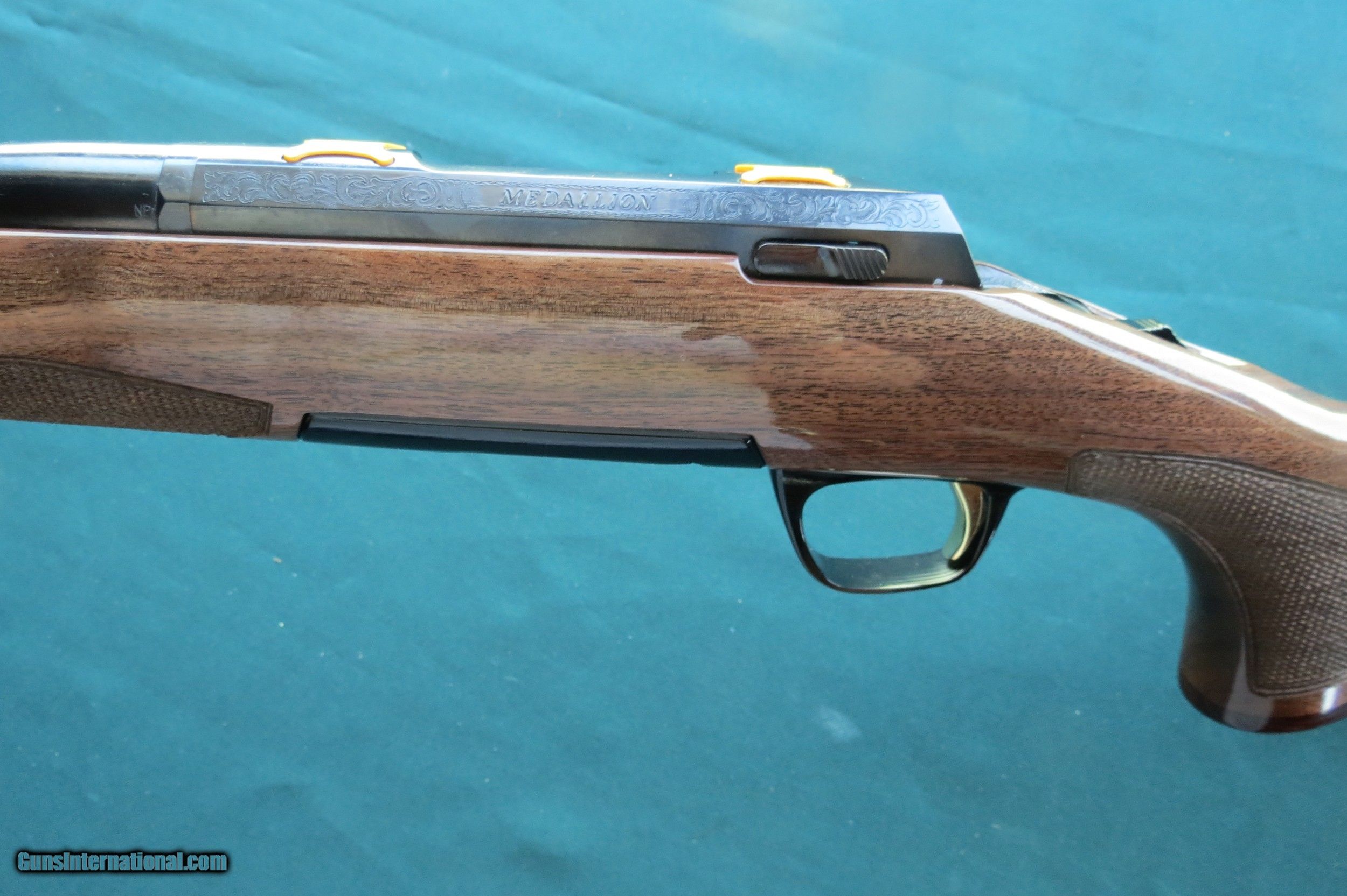Description: SOLD PENDING PAYMENT New in Box Browning X-Bolt Medallion in 22-250, 22" Free Floating Barrel, 13 5/8" LOP, 4 round detachable magazine, 1:9" Rate of Twist, Target Crown, Drilled/Tapped, High Gloss Walnut Stock w/Rosewood Forend Grip & Pistol Cap, Inflex Techology 1" Recoil Pad, Adjsutable Feather Trigger, Top-Tang Safety w.Bolt Unlock Button, Engraved Receiver. Shipping/Insurance $50 SOLD Rifle Caliber: .22-250 Remington Manufacturer: Browning Model: X-Bolt Medallion Barrel Length: 22 Condition: New in Box |