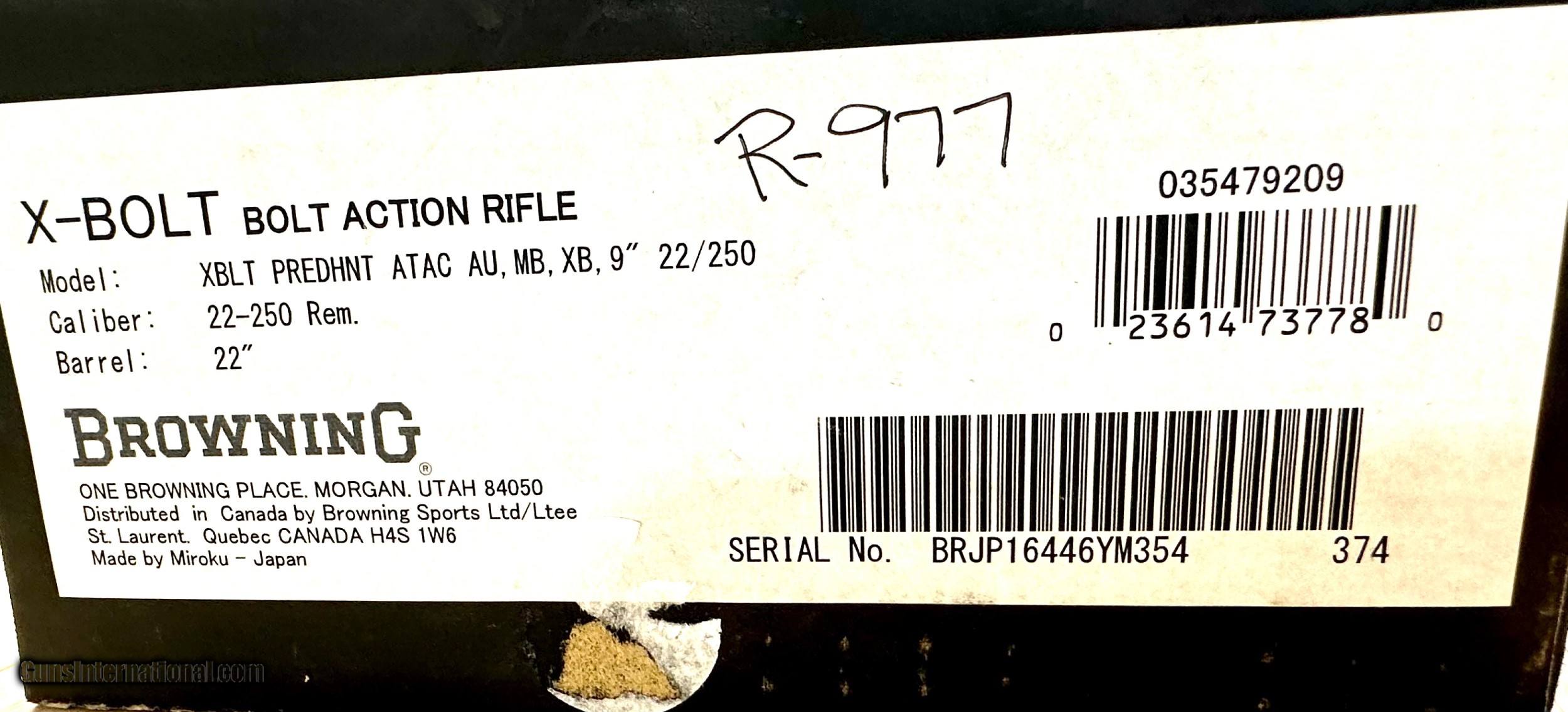 22-250 Browning x-bolt Predator Hunnt Atac - Discontinued by Browning - New Old inventory