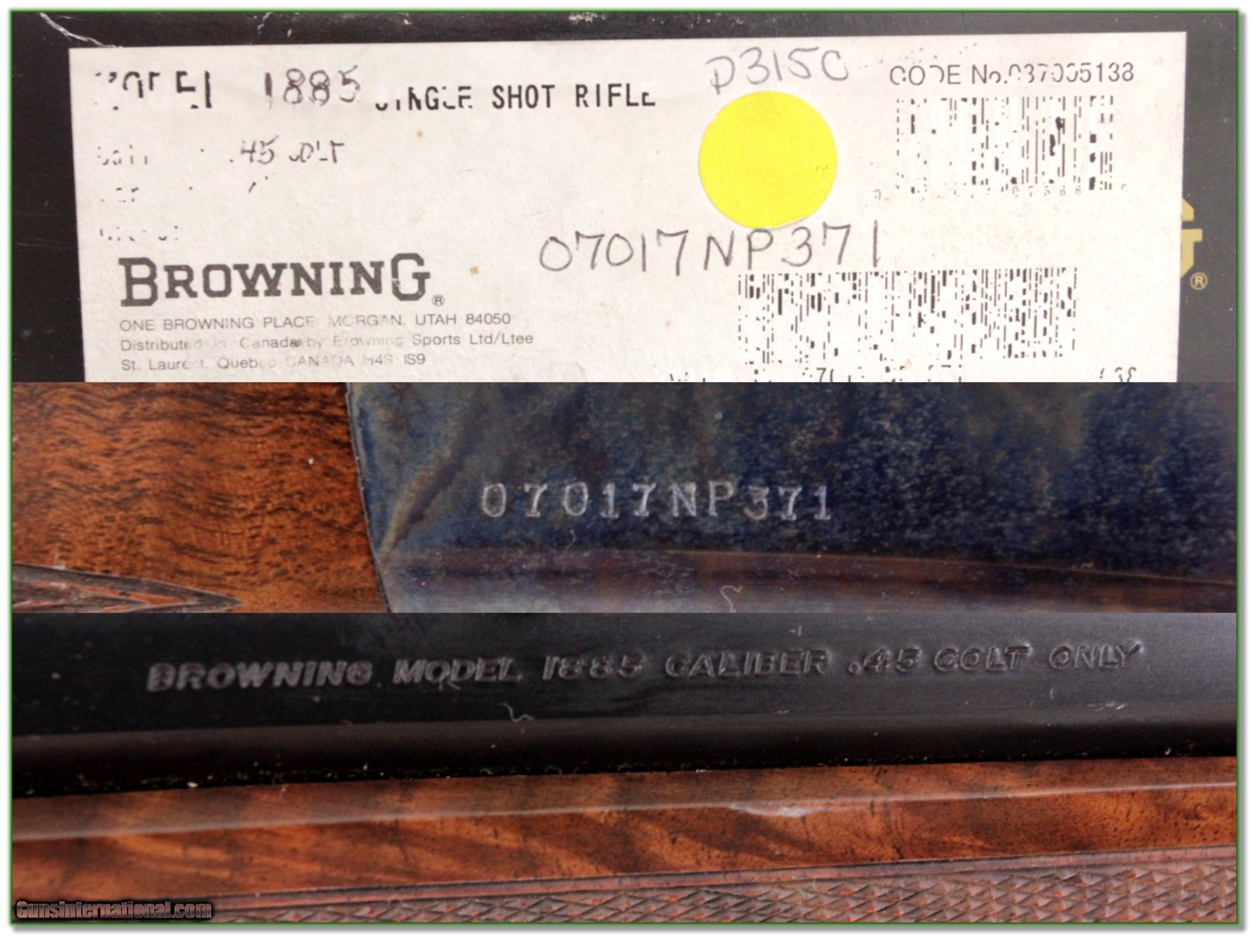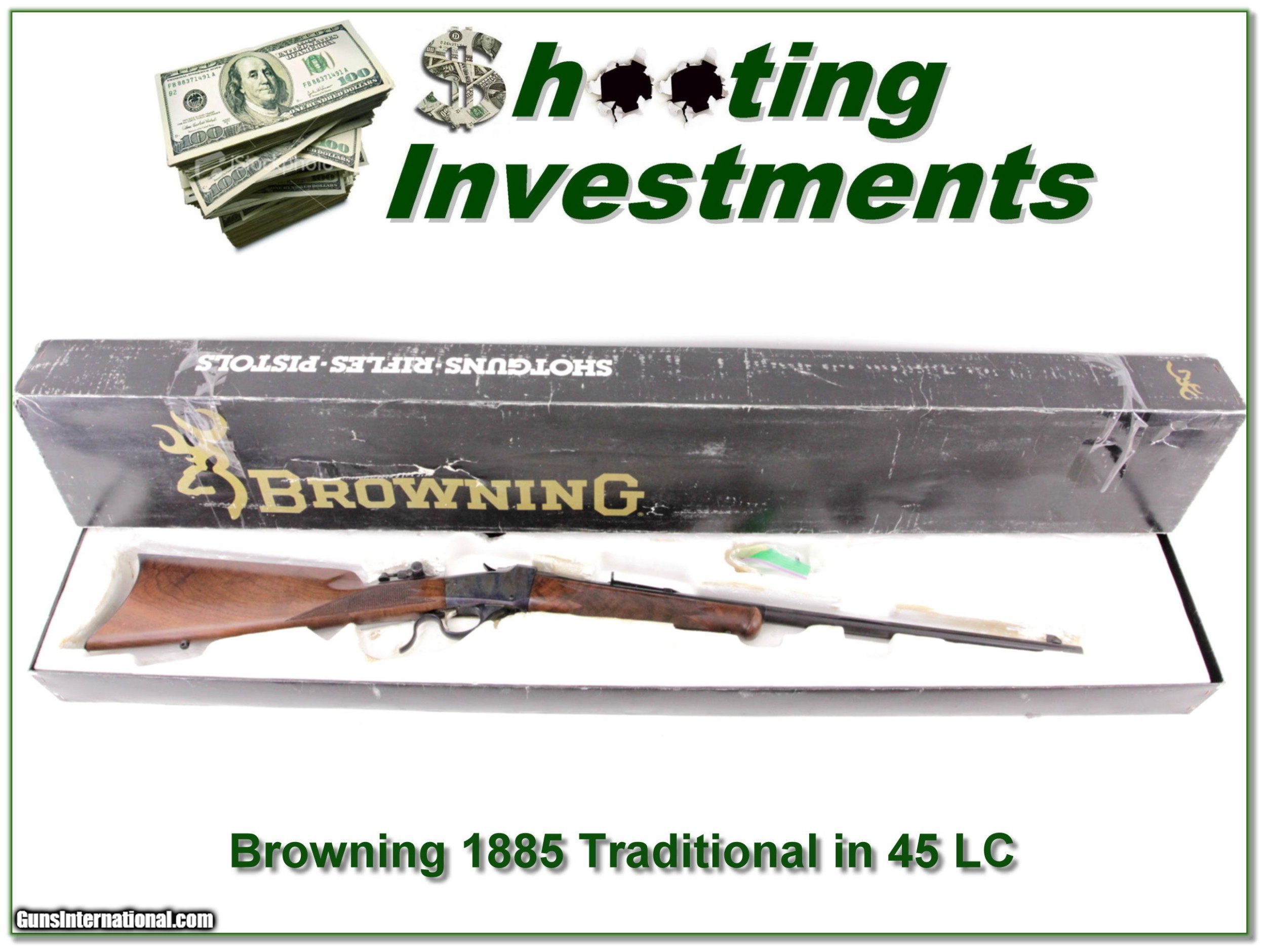 Description: Collectors and shooters this is a beautiful and hard to find Browning 1885 Low Wall Traditional hunter in 45 Colt. It is unfired and comes as seen in original box. These guns have beautiful case coloring and half octagonal 24in barrels. And the oil finished wood is high grade! It see only an insignificant handing mark on the stock. It will make a nice addition to your collection and is a real Shooting Investment. Shipping with insurance is $39. Please email me with any questions or larger pictures. (Consign your quality firearms with Shooting Investments for only 12%! Let me know if you have any you would like to sell!) 19-0065 Payment: Payment is by Money Order, Cashiers Check or Personal Check. I can now also accept Credit Cards (MasterCard, Visa, Discover & American Express) with a 3% convenience fee. PayPal can be used for some items but never for firearms. Shipping: The shipping charge will be listed in each description. It is $39 for most firearms. Some heavy guns or those insured for over $2000 will be higher. Shipments to Alaska and Hawaii are higher because air shipment is required. Most firearms are shipped on Tuesday and Thursday and usually in 5 days of receipt of payment. We package all shipments carefully and insure them. Optics are shipped Priority Mail and most other non-firearm shipments are shipped First Class. Returns: Our return policy is simple. If for any reason you are not pleased with your purchase, you may return your item for a full refund of purchase price. Ammunition cannot be returned. It is important to us that you are happy. Guns cannot be fired or dissembled before returning them and they must be returned in the same condition as received. Notification of a return must occur with-in 3 days of receipt at your dealer. Shipping, convenience and dealer fees are not refundable and are the responsibility of the buyer. Lay-a-way: If needed, we offer a 60 day lay-a-way option on most firearms. It is 1/3 now, 1/3 in 30 days and 1/3 in 60 days. Lay-a-way firearm sales are final and if not completed the first payment cannot be returned. Consigning your firearms with Shooting Investments: We will help you get top dollar for your firearms. While most local guns shops charge 20% or more, our fee is only 12% with a minimum of $75. At your local gun shop it might take months to sell. Selling on-line provides instant access to thousands of interested buyers. You won’t find any other on-line dealer willing to sell your firearms for only 12% or listing every gun on 3 separate s. Selling through an House typically costs the seller 15% and the buyer an addition 15% (so 30%) and you have to wait several months to sell and longer to receive funds. If properly priced, we will sell your firearms in a few weeks. Send us an email or give us a call and we’ll explain how easy it is for you to get top dollar. Trading: Trading for use is really just buying your gun to re-sell. If you have a gun you want to trade, please email a picture and we will let you know what we can give or it. You will always get more if we sell it for you on consignment. Help for California Buyers: We are happy to ship to California. It is the buyer’s responsibility to make sure any item you buy is legal in your state. We are also happy to help with your purchase of a firearm from someone other than us. If you see a gun you would like to buy but the seller can’t or won’t ship to California they can ship to use and we’ll then ship it to your California dealer. The cost for this service is only $30 + shipping. Let us know if we can help! SOLD |