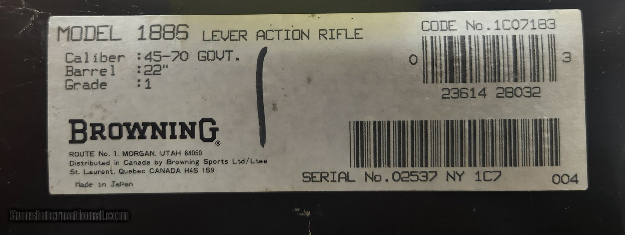 Description: Guns Listing ID: 387675 Excellent. Like new in box. Unfired Browning 1886 saddle ring carbine. Chambered in .45-70. Includes factory box. SOLD Manufacturer: BROWNING Model: 1886 Caliber Info: .45-70 GOVT Condition: Used - Non-Certified Barrels: 22 BARREL Action: LEVER ACTION Finish: BLUED Weight: not specified |