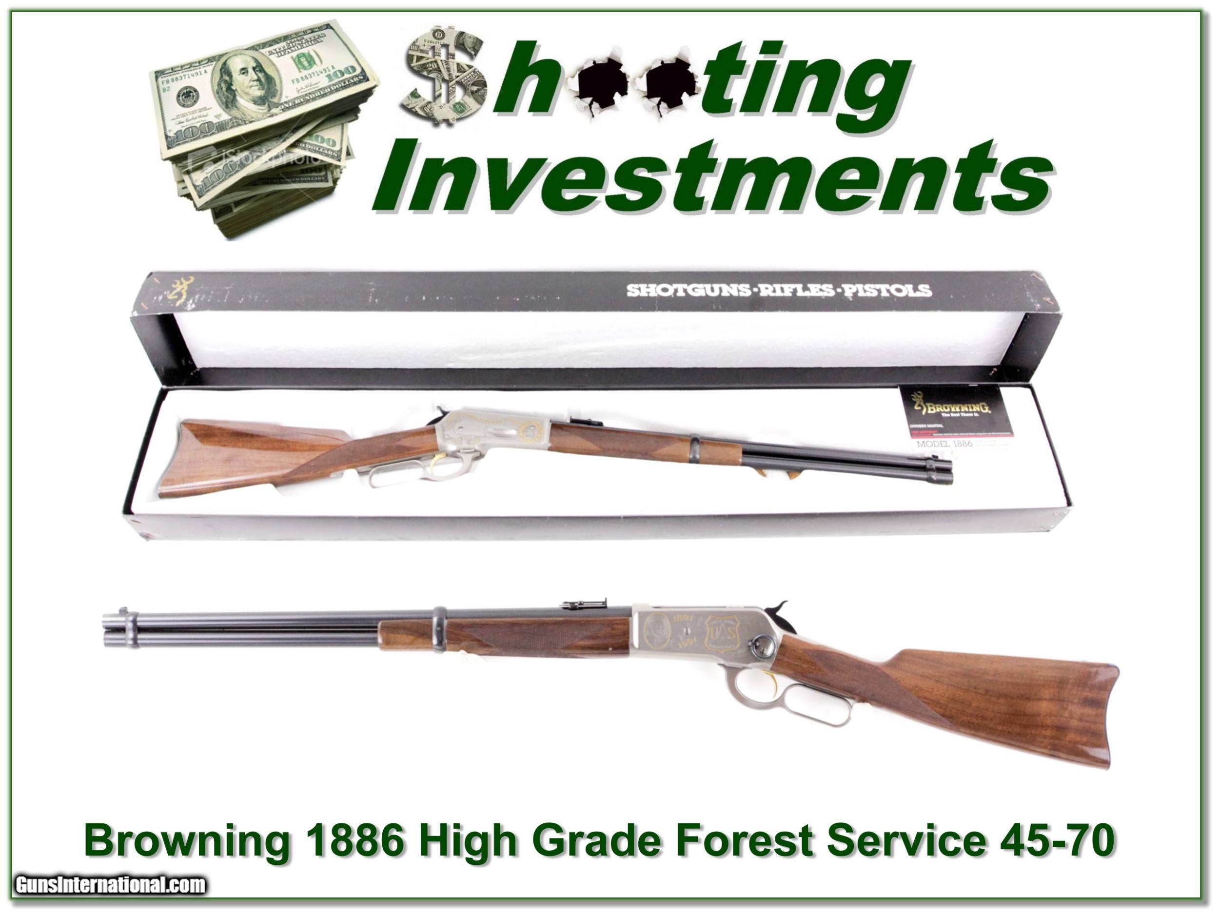 Description: Collectors, this is an unfired Browning 1886 in 45-70 Government. This is a High Grade 1991 US Forest Service commemorative. It has a 22in barrel. I am selling this one on consignment and as such lay-a-way can’t be used. It does of course have the standard 3-day inspection. Shipping and insurance is $49. Please email me with any questions or larger pictures. (Consign your quality firearms with Shooting Investments for only 12%! Let me know if you have any you would like to sell!) 18-0467 Payment: Payment is by Money Order, Cashiers Check or Personal Check. I can now also accept MasterCard and Visa with a 3% convenience fee. PayPal can be used for some items but never firearms. Please let us know if you would like to pay via PayPal. Shipping: The shipping charge will be listed in each description. It is $39 for most long guns and $29 for most handguns. Some heavy guns or those insured for over $2000 will be higher. Shipments to Alaska and Hawaii are higher because air shipment is required. Most firearms are shipped on Tuesday and Thursday and usually in 5 days of receipt of payment. We package all shipments carefully and insure them. For long guns you can purchase a new Plano case for $19. They now cost us $22 when buying 100 at a time. Optics are shipped Priority Mail and most other non-firearm shipments are shipped First Class. Returns: Our return policy is simple. If for any reason you are not pleased with your purchase, you may return your item for a full refund of purchase price. Ammunition cannot be returned. It is important to us that you are happy. Guns cannot be fired or dissembled before returning them and they must be returned in the same condition as received. Notification of a return must occur with-in 3 days of receipt at your dealer. Shipping, convenience and dealer fees are not refundable and are the responsibility of the buyer. Lay-a-way: If needed, we offer a 60 day lay-a-way option on most firearms. It is 1/3 now, 1/3 in 30 days and 1/3 in 60 days. Lay-a-way firearm sales are final and if not completed the first payment cannot be returned. Consigning your firearms with Shooting Investments: We will help you get top dollar for your firearms. While most local guns shops charge 20% or more, our fee is only 12% with a minimum of $75. At your local gun shop it might take months to sell. Selling on-line provides instant access to thousands of interested buyers. You won’t find any other on-line dealer willing to sell your firearms for only 12% or listing every gun on 3 separate s. Selling through an House typically costs the seller 15% and the buyer an addition 15% (so 30%) and you have to wait several months to sell and longer to receive funds. If properly priced, we will sell your firearms in a few weeks. Send us an email or give us a call and we’ll explain how easy it is for you to get top dollar. Trading: Trading for use is really just buying your gun to re-sell. If you have a gun you want to trade, please email a picture and we will let you know what we can give or it. You will always get more if we sell it for you on consignment. Help for California Buyers: We are happy to ship to California. It is the buyer’s responsibility to make sure any item you buy is legal in your state. We are also happy to help with your purchase of a firearm from someone other than us. If you see a gun you would like to buy but the seller can’t or won’t ship to California they can ship to use and we’ll then ship it to your California dealer. The cost for this service is only $30 + shipping. Let us know if we can help! SOLD |