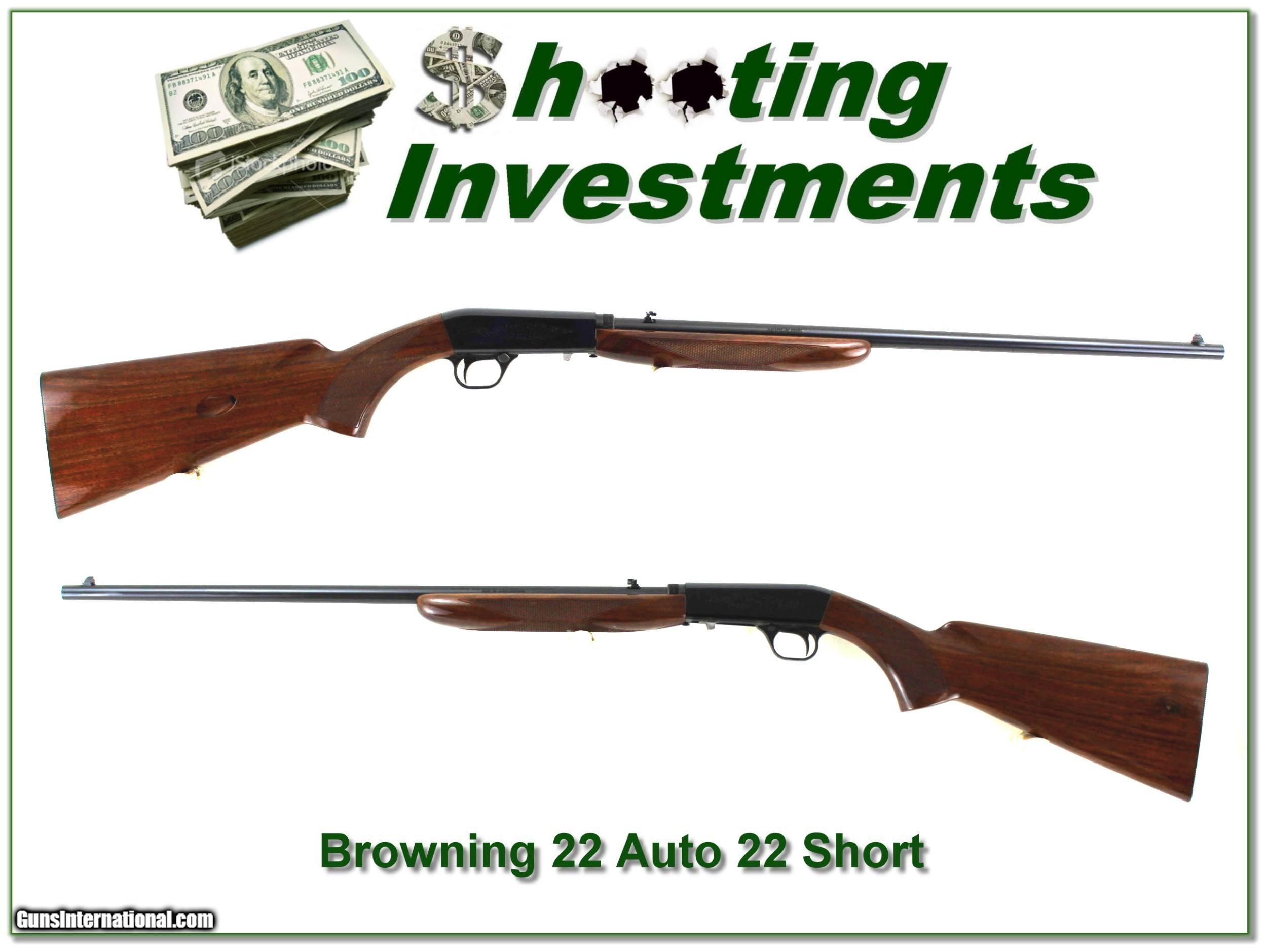 Description: This is the harder to find Browning 22 Auto in 22 Short. It is near new with no marks I find on the metal or the wood. These have a longer 22in barrel. This one was made in 1999 in Japan. It will make a nice gun to shoot or collect. Shipping and insurance is $49. Please email me with any questions or larger pictures. (Consign your quality firearms with Shooting Investments for only 12%! Let me know if you have any you would like to sell!) 22-1001 Payment: Payment is by Money Order, Cashiers Check or Personal Check. I can now also accept Credit Cards (MasterCard, Visa, Discover & American Express) with a 3% convenience fee. Shipping: The shipping charge will be listed in each description. It is $49 for most long guns. Some heavy guns, over 48in boxes or those insured for over $2000 will be higher. Shipments to Alaska and Hawaii are higher because air shipment is required. Most firearms are shipped on Tuesday and Thursday and usually in 5 days of receipt of payment. We package all shipments carefully and insure them. Optics are shipped Priority Mail and most other non-firearm shipments are shipped First Class. Returns: Our return policy is simple. If for any reason you are not pleased with your purchase, you may return your item for a full refund of purchase price. Ammunition cannot be returned. It is important to us that you are happy. Guns cannot be fired or dissembled before returning them and they must be returned in the same condition as received. Notification of a return must occur with-in 3 days of receipt at your dealer. Shipping, convenience and dealer fees are not refundable and are the responsibility of the buyer. Lay-a-way: If needed, we offer a 60 day lay-a-way option on most firearms. It is 1/3 now, 1/3 in 30 days and 1/3 in 60 days. Lay-a-way firearm sales are final and if not completed the first payment cannot be returned. Consigning your firearms with Shooting Investments: We will help you get top dollar for your firearms. While most local guns shops charge 20% or more, our fee is only 12% with a minimum of $75. At your local gun shop it might take months to sell. Selling on-line provides instant access to thousands of interested buyers. You won’t find any other on-line dealer willing to sell your firearms for only 12% or listing every gun on 3 separate s. Selling through an House typically costs the seller 15% and the buyer an addition 15% (so 30%) and you have to wait several months to sell and longer to receive funds. If properly priced, we will sell your firearms in a few weeks. Send us an email or give us a call and we’ll explain how easy it is for you to get top dollar. Trading: Trading for use is really just buying your gun to re-sell. If you have a gun you want to trade, please email a picture and we will let you know what we can give or it. You will always get more if we sell it for you on consignment. Help for California Buyers: We are happy to ship to California. It is the buyer’s responsibility to make sure any item you buy is legal in your state. We are also happy to help with your purchase of a firearm from someone other than us. If you see a gun you would like to buy but the seller can’t or won’t ship to California they can ship to use and we’ll then ship it to your California dealer. The cost for this service is only $30 + shipping. Let us know if we can help! SOLD |
