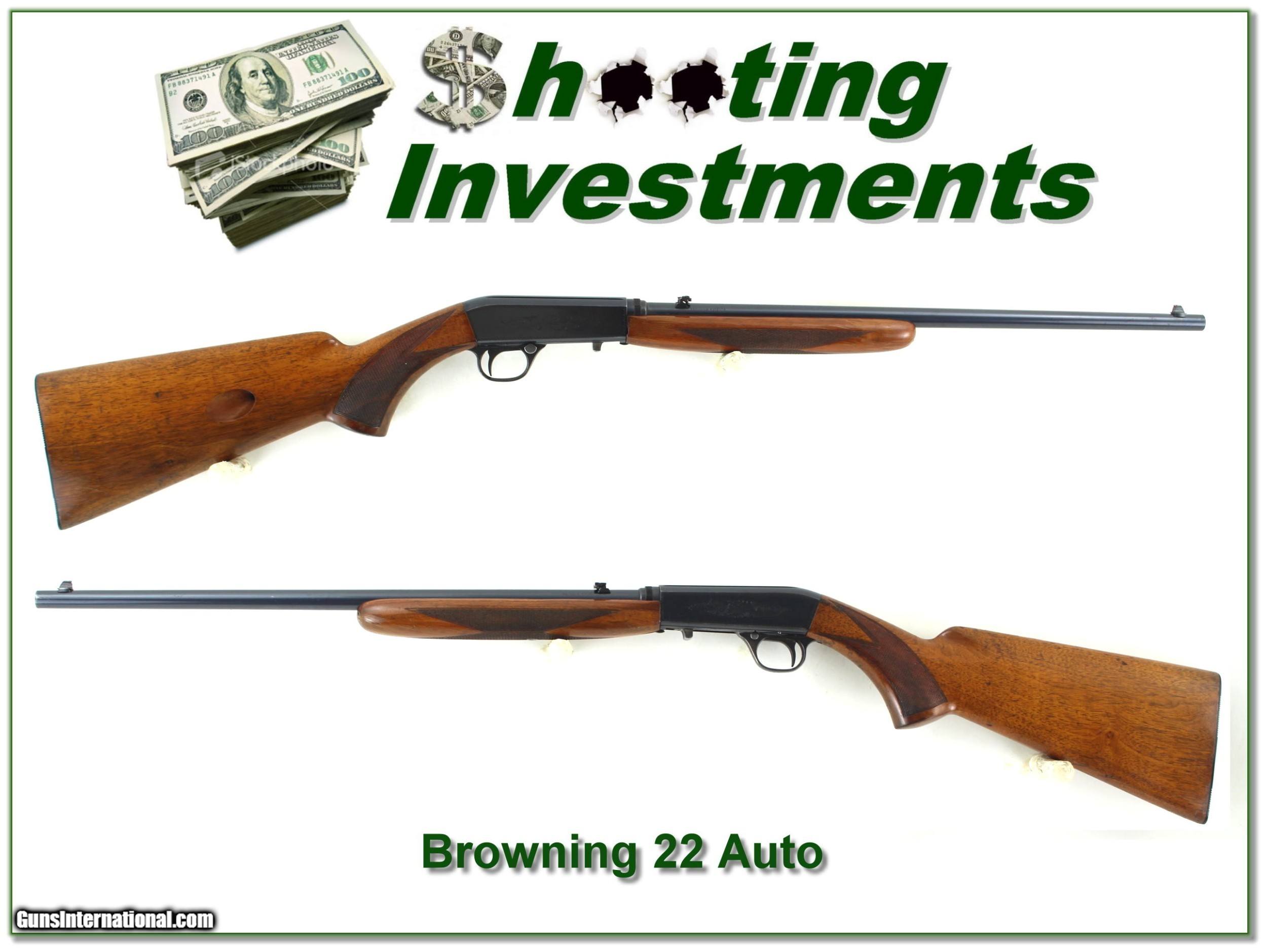 Description: This is a 1963 Belgium made Browning 22 Auto. The blue is very good with some thinning on the receiver edges. The wood has scattered minor marks from use. It will make a classic Browning Belgium 22! I am selling this one on consignment and as such lay-a-way can’t be used. It does of course have the standard 3-day inspection. Shipping and insurance is $39. Please email me with any questions or larger pictures. (Consign your quality firearms with Shooting Investments for only 12%! Let me know if you have any you would like to sell!) 21-1224 Payment: Payment is by Money Order, Cashiers Check or Personal Check. I can now also accept Credit Cards (MasterCard, Visa, Discover & American Express) with a 3% convenience fee. Shipping: The shipping charge will be listed in each description. It is $39 for most firearms. Some heavy guns or those insured for over $2000 will be higher. Shipments to Alaska and Hawaii are higher because air shipment is required. Most firearms are shipped on Tuesday and Thursday and usually in 5 days of receipt of payment. We package all shipments carefully and insure them. Optics are shipped Priority Mail and most other non-firearm shipments are shipped First Class. Returns: Our return policy is simple. If for any reason you are not pleased with your purchase, you may return your item for a full refund of purchase price. Ammunition cannot be returned. It is important to us that you are happy. Guns cannot be fired or dissembled before returning them and they must be returned in the same condition as received. Notification of a return must occur with-in 3 days of receipt at your dealer. Shipping, convenience and dealer fees are not refundable and are the responsibility of the buyer. Lay-a-way: If needed, we offer a 60 day lay-a-way option on most firearms. It is 1/3 now, 1/3 in 30 days and 1/3 in 60 days. Lay-a-way firearm sales are final and if not completed the first payment cannot be returned. Consigning your firearms with Shooting Investments: We will help you get top dollar for your firearms. While most local guns shops charge 20% or more, our fee is only 12% with a minimum of $75. At your local gun shop it might take months to sell. Selling on-line provides instant access to thousands of interested buyers. You won’t find any other on-line dealer willing to sell your firearms for only 12% or listing every gun on 3 separate s. Selling through an House typically costs the seller 15% and the buyer an addition 15% (so 30%) and you have to wait several months to sell and longer to receive funds. If properly priced, we will sell your firearms in a few weeks. Send us an email or give us a call and we’ll explain how easy it is for you to get top dollar. Trading: Trading for use is really just buying your gun to re-sell. If you have a gun you want to trade, please email a picture and we will let you know what we can give or it. You will always get more if we sell it for you on consignment. Help for California Buyers: We are happy to ship to California. It is the buyer’s responsibility to make sure any item you buy is legal in your state. We are also happy to help with your purchase of a firearm from someone other than us. If you see a gun you would like to buy but the seller can’t or won’t ship to California they can ship to use and we’ll then ship it to your California dealer. The cost for this service is only $30 + shipping. Let us know if we can help! SOLD |