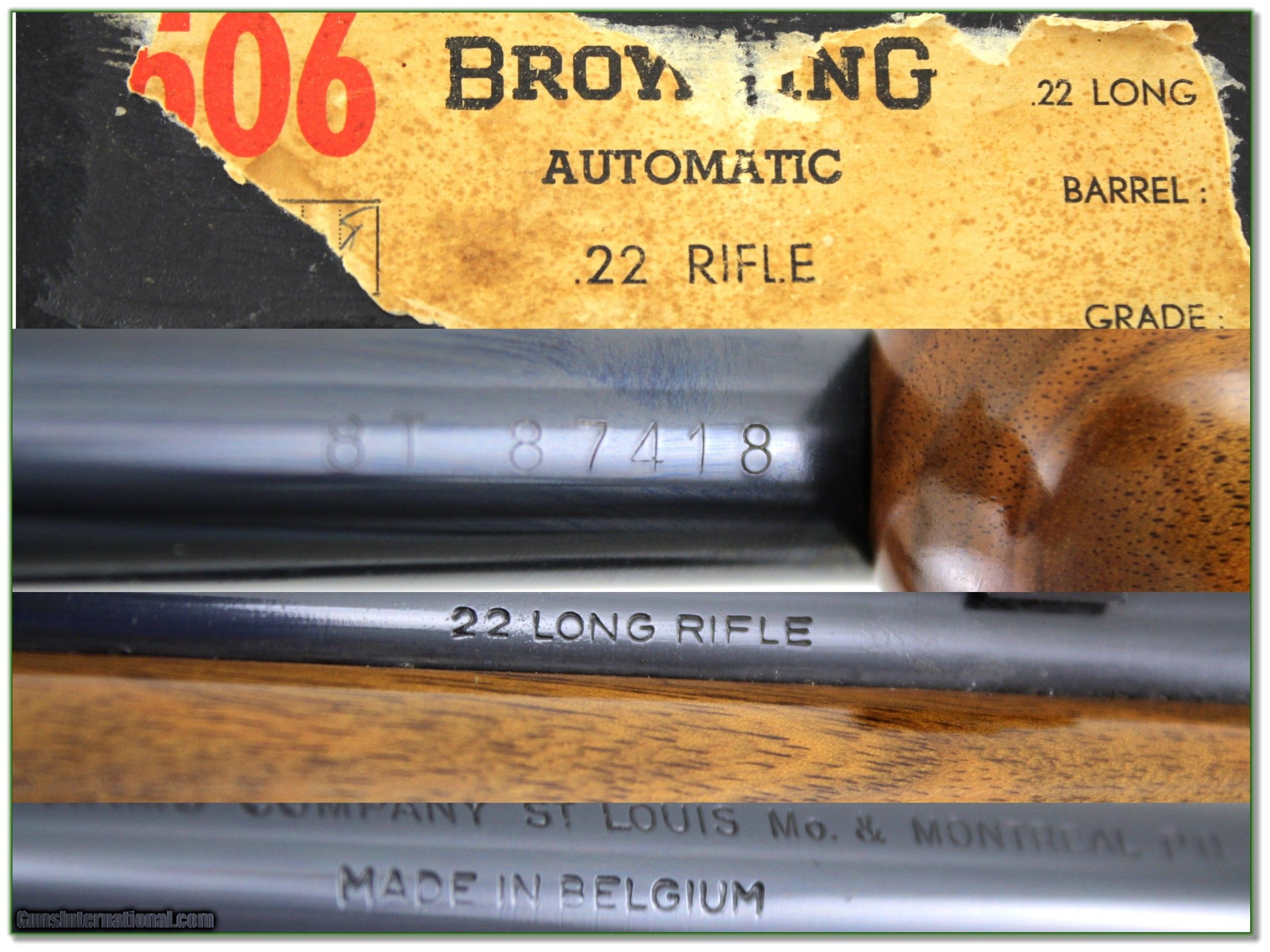 Description: Shooters and collectors, this is a beautiful 1968 Belgium made Browning 22 Auto. It is in near new condition with beautiful honey blond wood. I find no marks of note on the metal or the wood. It comes in it’s original box and with manual. (Note the box end label is missing most of the serial number but the last number matches…..I’m sure it’s original) It will make a fine addition to your collection and these Belgium Browning keep going up in value. That’s what I call a Shooting Investment! Shipping and insurance is $49. Please email me with any questions or larger pictures. (Consign your quality firearms with Shooting Investments for only 12%! Let me know if you have any you would like to sell!) 22-0619 Payment: Payment is by Money Order, Cashiers Check or Personal Check. I can now also accept Credit Cards (MasterCard, Visa, Discover & American Express) with a 3% convenience fee. Shipping: The shipping charge will be listed in each description. It is $49 for most long guns. Some heavy guns, over 48in boxes or those insured for over $2000 will be higher. Shipments to Alaska and Hawaii are higher because air shipment is required. Most firearms are shipped on Tuesday and Thursday and usually in 5 days of receipt of payment. We package all shipments carefully and insure them. Optics are shipped Priority Mail and most other non-firearm shipments are shipped First Class. Returns: Our return policy is simple. If for any reason you are not pleased with your purchase, you may return your item for a full refund of purchase price. Ammunition cannot be returned. It is important to us that you are happy. Guns cannot be fired or dissembled before returning them and they must be returned in the same condition as received. Notification of a return must occur with-in 3 days of receipt at your dealer. Shipping, convenience and dealer fees are not refundable and are the responsibility of the buyer. Lay-a-way: If needed, we offer a 60 day lay-a-way option on most firearms. It is 1/3 now, 1/3 in 30 days and 1/3 in 60 days. Lay-a-way firearm sales are final and if not completed the first payment cannot be returned. Consigning your firearms with Shooting Investments: We will help you get top dollar for your firearms. While most local guns shops charge 20% or more, our fee is only 12% with a minimum of $75. At your local gun shop it might take months to sell. Selling on-line provides instant access to thousands of interested buyers. You won’t find any other on-line dealer willing to sell your firearms for only 12% or listing every gun on 3 separate s. Selling through an House typically costs the seller 15% and the buyer an addition 15% (so 30%) and you have to wait several months to sell and longer to receive funds. If properly priced, we will sell your firearms in a few weeks. Send us an email or give us a call and we’ll explain how easy it is for you to get top dollar. Trading: Trading for use is really just buying your gun to re-sell. If you have a gun you want to trade, please email a picture and we will let you know what we can give or it. You will always get more if we sell it for you on consignment. Help for California Buyers: We are happy to ship to California. It is the buyer’s responsibility to make sure any item you buy is legal in your state. We are also happy to help with your purchase of a firearm from someone other than us. If you see a gun you would like to buy but the seller can’t or won’t ship to California they can ship to use and we’ll then ship it to your California dealer. The cost for this service is only $30 + shipping. Let us know if we can help! SOLD |