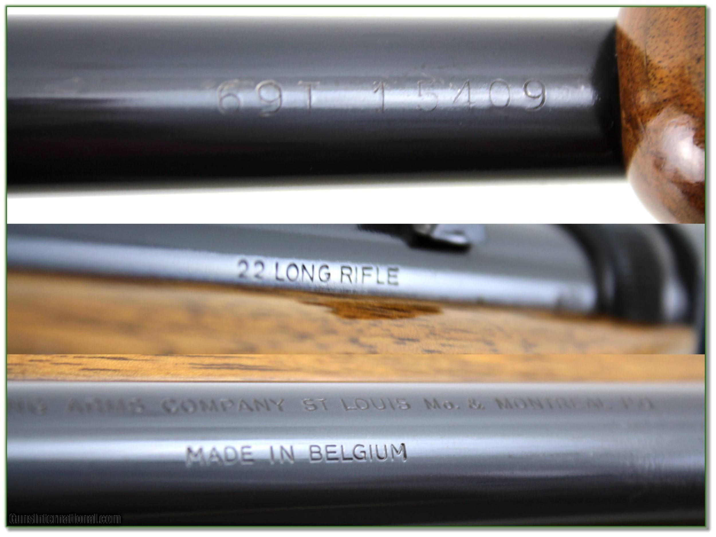 Description: This is a 1969 Belgium made Browning 22 Auto takedown. The blue is excellent! The honey colored walnut has nice grain with scattered minor marks. It will make a nice Belgium 22 you can use. They just don’t make them like they used too! Shipping and insurance is $39. Please email me with any questions or larger pictures. (Consign your quality firearms with Shooting Investments for only 12%! Let me know if you have any you would like to sell!) 20-0300 Payment: Payment is by Money Order, Cashiers Check or Personal Check. I can now also accept MasterCard and Visa with a 3% convenience fee. PayPal can be used for some items but never firearms. Please let us know if you would like to pay via PayPal. Shipping: The shipping charge will be listed in each description. It is $39 for most guns. Some heavy guns or those insured for over $2000 will be higher. Shipments to Alaska and Hawaii are higher because air shipment is required. Most firearms are shipped on Tuesday and Thursday and usually in 5 days of receipt of payment. We package all shipments carefully and insure them. Returns: Our return policy is simple. If for any reason you are not pleased with your purchase, you may return your item for a full refund of purchase price. Ammunition cannot be returned. It is important to us that you are happy. Guns cannot be fired or dissembled before returning them and they must be returned in the same condition as received. Notification of a return must occur with-in 3 days of receipt at your dealer. Shipping, convenience and dealer fees are not refundable and are the responsibility of the buyer. Lay-a-way: If needed, we offer a 60 day lay-a-way option on most firearms. It is 1/3 now, 1/3 in 30 days and 1/3 in 60 days. Lay-a-way firearm sales are final and if not completed the first payment cannot be returned. Consigning your firearms with Shooting Investments: We will help you get top dollar for your firearms. While most local guns shops charge 20% or more, our fee is only 12% with a minimum of $75. At your local gun shop it might take months to sell. Selling on-line provides instant access to thousands of interested buyers. You won’t find any other on-line dealer willing to sell your firearms for only 12% or listing every gun on 3 separate s. Selling through an House typically costs the seller 15% and the buyer an addition 15% (so 30%) and you have to wait several months to sell and longer to receive funds. If properly priced, we will sell your firearms in a few weeks. Send us an email or give us a call and we’ll explain how easy it is for you to get top dollar. Trading: Trading for use is really just buying your gun to re-sell. If you have a gun you want to trade, please email a picture and we will let you know what we can give or it. You will always get more if we sell it for you on consignment. Help for California Buyers: We are happy to ship to California. It is the buyer’s responsibility to make sure any item you buy is legal in your state. We are also happy to help with your purchase of a firearm from someone other than us. If you see a gun you would like to buy but the seller can’t or won’t ship to California they can ship to use and we’ll then ship it to your California dealer. The cost for this service is only $30 + shipping. Let us know if we can help! SOLD |