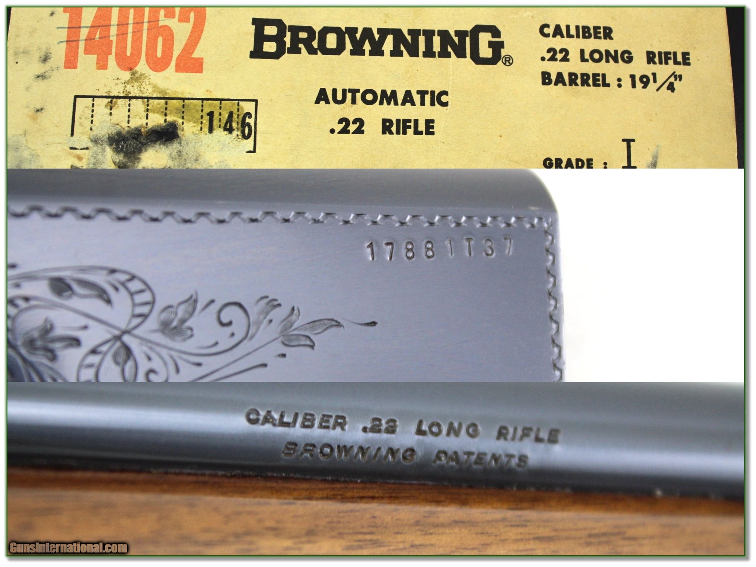 Description: This is an excellent 1974 made Belgium Browning 22 Auto. The metal is about new with no marks I see, and the honey blond wood has only a few minor marks. It comes with box as seen but there is no serial number, I find on the label so can’t say it’s original to the gun. It will make a classic Belgium Browning to use or collect. Either way, it is a Shooting Investment. Shipping and insurance is $49. Please email me with any questions or larger pictures. (Consign your quality firearms with Shooting Investments for only 12%! Let me know if you have any you would like to sell!) 22-0905 Payment: Payment is by Money Order, Cashiers Check or Personal Check. I can now also accept Credit Cards (MasterCard, Visa, Discover & American Express) with a 3% convenience fee. Shipping: The shipping charge will be listed in each description. It is $49 for most long guns. Some heavy guns, over 48in boxes or those insured for over $2000 will be higher. Shipments to Alaska and Hawaii are higher because air shipment is required. Most firearms are shipped on Tuesday and Thursday and usually in 5 days of receipt of payment. We package all shipments carefully and insure them. Optics are shipped Priority Mail and most other non-firearm shipments are shipped First Class. Returns: Our return policy is simple. If for any reason you are not pleased with your purchase, you may return your item for a full refund of purchase price. Ammunition cannot be returned. It is important to us that you are happy. Guns cannot be fired or dissembled before returning them and they must be returned in the same condition as received. Notification of a return must occur with-in 3 days of receipt at your dealer. Shipping, convenience and dealer fees are not refundable and are the responsibility of the buyer. Lay-a-way: If needed, we offer a 60 day lay-a-way option on most firearms. It is 1/3 now, 1/3 in 30 days and 1/3 in 60 days. Lay-a-way firearm sales are final and if not completed the first payment cannot be returned. Consigning your firearms with Shooting Investments: We will help you get top dollar for your firearms. While most local guns shops charge 20% or more, our fee is only 12% with a minimum of $75. At your local gun shop it might take months to sell. Selling on-line provides instant access to thousands of interested buyers. You won’t find any other on-line dealer willing to sell your firearms for only 12% or listing every gun on 3 separate s. Selling through an House typically costs the seller 15% and the buyer an addition 15% (so 30%) and you have to wait several months to sell and longer to receive funds. If properly priced, we will sell your firearms in a few weeks. Send us an email or give us a call and we’ll explain how easy it is for you to get top dollar. Trading: Trading for use is really just buying your gun to re-sell. If you have a gun you want to trade, please email a picture and we will let you know what we can give or it. You will always get more if we sell it for you on consignment. Help for California Buyers: We are happy to ship to California. It is the buyer’s responsibility to make sure any item you buy is legal in your state. We are also happy to help with your purchase of a firearm from someone other than us. If you see a gun you would like to buy but the seller can’t or won’t ship to California they can ship to use and we’ll then ship it to your California dealer. The cost for this service is only $30 + shipping. Let us know if we can help! SOLD |