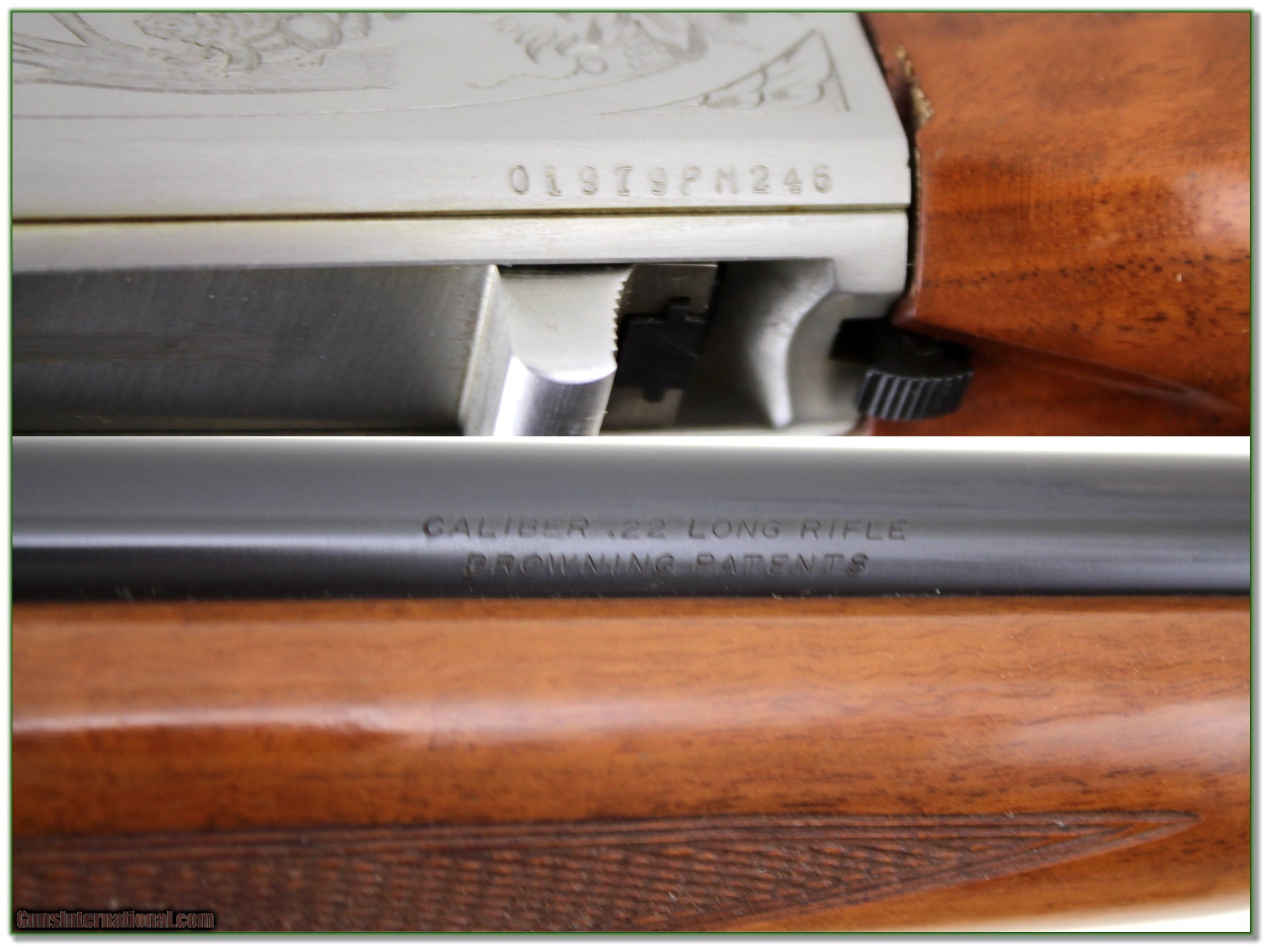 Description: This is a like new Browning 22 Auto Grade II. It is a hand engraved early Japan made gun. It has outstanding wood colors and I find no marks. I believe it is unfired! It will make a fine addition to your collection. It is a real Shooting Investment. Shipping and insurance is $39. Please email me with any questions or larger pictures. (Consign your quality firearms with Shooting Investments for only 12%! Let me know if you have any you would like to sell!) 20-0873 Payment: Payment is by Money Order, Cashiers Check or Personal Check. I can now also accept Credit Cards (MasterCard, Visa, Discover & American Express) with a 3% convenience fee. Shipping: The shipping charge will be listed in each description. It is $39 for most firearms. Some heavy guns or those insured for over $2000 will be higher. Shipments to Alaska and Hawaii are higher because air shipment is required. Most firearms are shipped on Tuesday and Thursday and usually in 5 days of receipt of payment. We package all shipments carefully and insure them. Optics are shipped Priority Mail and most other non-firearm shipments are shipped First Class. Returns: Our return policy is simple. If for any reason you are not pleased with your purchase, you may return your item for a full refund of purchase price. Ammunition cannot be returned. It is important to us that you are happy. Guns cannot be fired or dissembled before returning them and they must be returned in the same condition as received. Notification of a return must occur with-in 3 days of receipt at your dealer. Shipping, convenience and dealer fees are not refundable and are the responsibility of the buyer. Lay-a-way: If needed, we offer a 60 day lay-a-way option on most firearms. It is 1/3 now, 1/3 in 30 days and 1/3 in 60 days. Lay-a-way firearm sales are final and if not completed the first payment cannot be returned. Consigning your firearms with Shooting Investments: We will help you get top dollar for your firearms. While most local guns shops charge 20% or more, our fee is only 12% with a minimum of $75. At your local gun shop it might take months to sell. Selling on-line provides instant access to thousands of interested buyers. You won’t find any other on-line dealer willing to sell your firearms for only 12% or listing every gun on 3 separate s. Selling through an House typically costs the seller 15% and the buyer an addition 15% (so 30%) and you have to wait several months to sell and longer to receive funds. If properly priced, we will sell your firearms in a few weeks. Send us an email or give us a call and we’ll explain how easy it is for you to get top dollar. Trading: Trading for use is really just buying your gun to re-sell. If you have a gun you want to trade, please email a picture and we will let you know what we can give or it. You will always get more if we sell it for you on consignment. Help for California Buyers: We are happy to ship to California. It is the buyer’s responsibility to make sure any item you buy is legal in your state. We are also happy to help with your purchase of a firearm from someone other than us. If you see a gun you would like to buy but the seller can’t or won’t ship to California they can ship to use and we’ll then ship it to your California dealer. The cost for this service is only $30 + shipping. Let us know if we can help! SOLD |