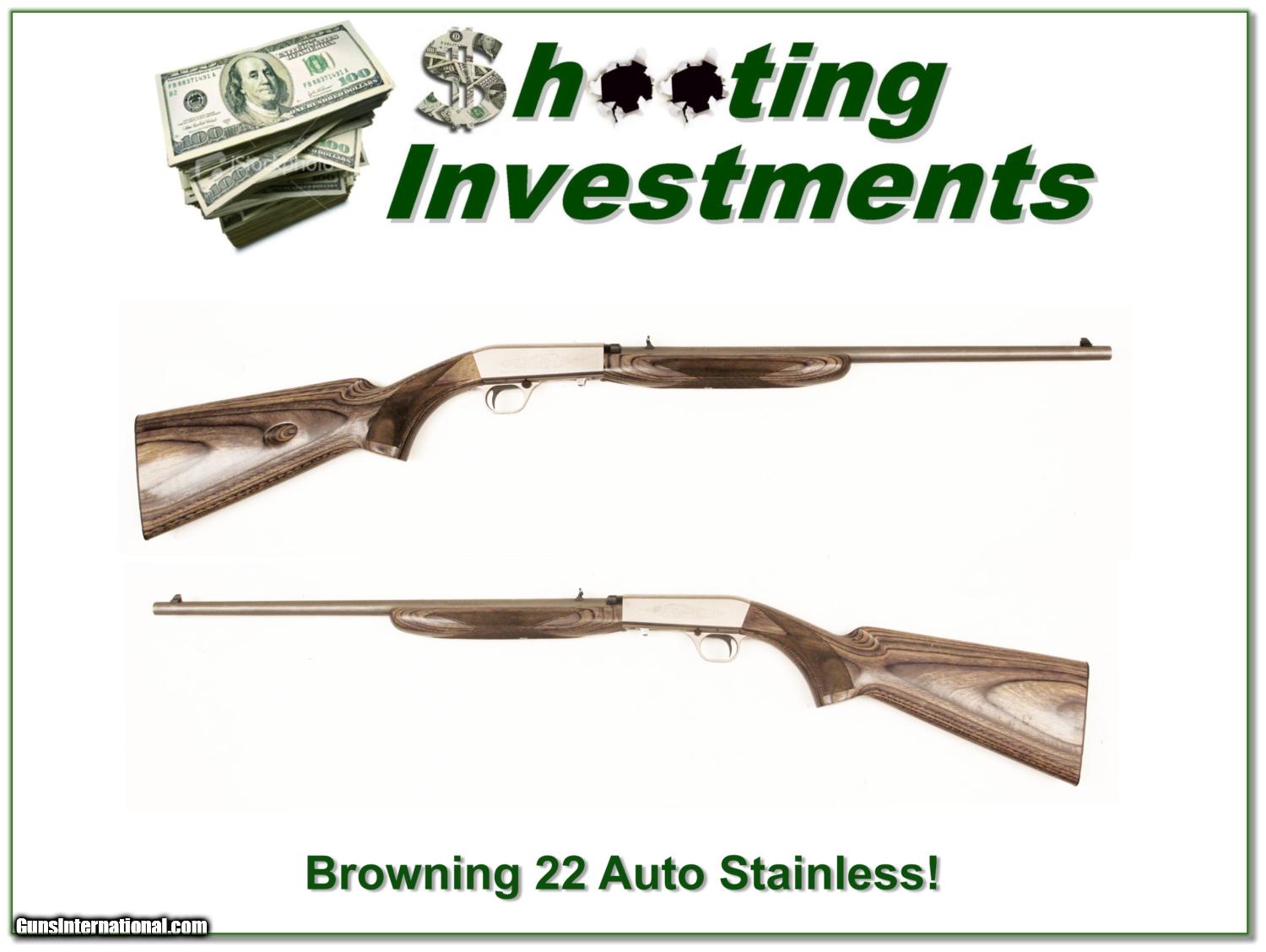 Description: This is a no longer made and sought after Browning 22 Auto Stainless with laminated stock. This one looks to have only fired a few rounds with only a couple minor handing marks. It will make a nice addition to your collection. It will likely go up in value over time as these are Shooting Investments! Shipping and insurance is $30 or $18 more if you want it shipped in a new Plano hard case. Please email me with any questions or larger pictures. (I now consign quality firearms only 10%! Let me know if you have any you would like to sell!) [15-1460] Payment: Payment is by Money Order, Cashiers Check or Personal Check. I can now also accept MasterCard and Visa with a 3% convenience fee. PayPal can be used for some items but never firearms. Please let us know if you would like to pay via PayPal. Shipping: The shipping charge will be listed in each description. It is $30 for most guns. Some heavy guns or those insured for over $2000 may be higher. Shipments to Alaska and Hawaii are higher because air shipment is required. Most firearms are shipped within 5 days of receipt of payment. We prefer shipping at the beginning of the week to avoid firearms in transit over weekends. We package all shipments carefully and insure them for the full purchase price, rounded up to the next $100. In the unlikely event that damage occurs, it is important that you save all packaging material for the claims process. Optics are shipped Priority Mail and most other non-firearm shipments are shipped First Class. Returns: Our return policy is simple. If for any reason you are not pleased with your purchase, you may return your item for a refund. The only exception is ammunition, it cannot be returned. It is important to us that you are happy. Guns cannot be fired or dissembled before returning them and must be returned in the same condition as received. Notification of a return must occur with-in 3 days of receipt at your dealer. Shipping, convenience and dealer fees are not refundable and are the responsibility of the buyer. Lay-a-way: If needed, we offer a 60 day lay-a-way option on most firearms. It is 1/3 now, 1/3 in 30 days and 1/3 in 60 days. Lay-a-way firearm sales are final. Consigning your firearms with Shooting Investments: We will help you get top dollar for your firearms. While most local guns shops charge 20% or more, our fee is only 10% with a minimum of $50. At your local gun shop it might take months to sell. Selling on-line provides instant access to thousands of interested buyers. You won’t find any other on-line dealer willing to sell your firearms for only 10% or listing every gun on 4 separate s. Selling through an House typically costs the seller 15% and the buyer an addition 15% (so 30%) and you have to wait several months to sell and longer to receive funds. If properly priced, we will sell your firearms in a week or two. Send us an email or give us a call and we’ll explain how easy it is for you to get top dollar. Trading: We collect guns and usually just trade for guns we want to add to our collections. We often sell guns for others wanting to purchase one of ours. We find this the most fair to both of us. Our Commission is only 10% and we hold the gun you want until yours sells. Please contact us if you want to sell one of yours to buy one of ours. Help for California Buyers: We are happy to ship to California. It is the buyer’s responsibility to make sure any item you buy is legal in your state. We are also happy to help with your purchase of a firearm from someone other than us. If you see a gun you would like to buy but the seller can’t or won’t ship to California we can help. You buy the gun and have it shipped to us. We’ll then ship it to your California dealer. The cost for this service is only $30 + shipping. Let me know if we can help! SOLD |