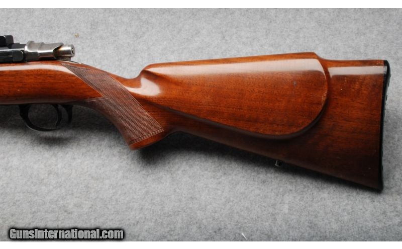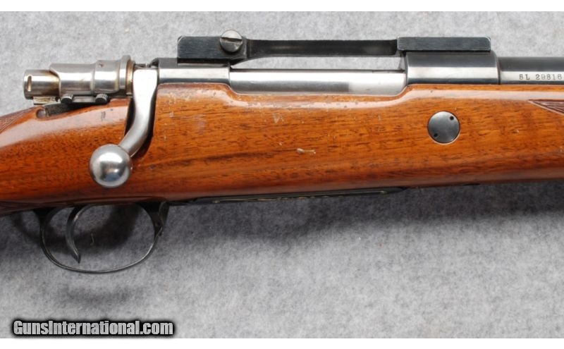 Description: SOLD Caliber Info: .30-06 Metal Condition: Very good with some light handing wear, there is what appears to be storage wear on the trigger guard Wood Condition: The checkering is sharp and crisp, the firearms show normal wear for a field gun. (see pictures) Bore Condition: Bright and shiny Barrels: 24 Stock: Checkered buttstock w/pistol grip Stock Dimensions: LOP: 13.5 Fore End: Checkered Butt Pad: Black plastic plate. Sights: Front hooded sight with rear adjustable sight, drilled and tapped with a base. Item Location: Lexington, KY |