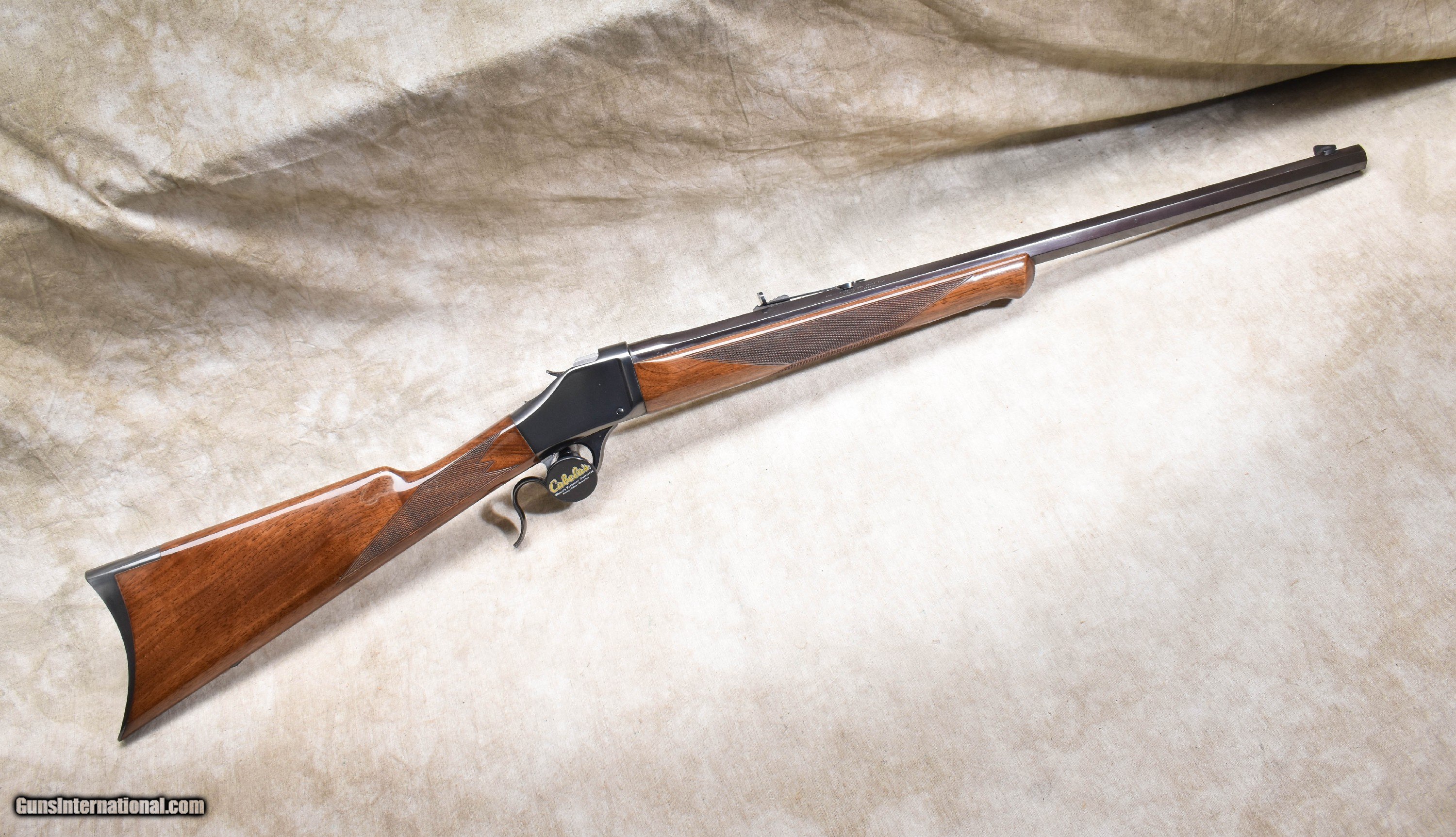 Description: Browning Model 78 Falling Block rifle chambered in .45-70 Government. This classic single-shot rifle is in overall excellent condition, showing only a few minor handling marks from careful use and storage. The metal finish remains strong and well-preserved, and the wood stock displays attractive grain with clean edges and sharp checkering. Renowned for its strength, accuracy, and traditional design, the Browning Model 78 features a robust falling-block action, heavy octagon barrel, and classic lines that appeal to both shooters and collectors. A highly desirable example of a quality Browning rifle in a powerful and historic chambering, ideal for hunting, target shooting, or addition to a fine firearm's collection. .45-70 Government Chambers: 1 Metal Condition: Excellent with just a few minor handling marks. Wood Condition: Excellent with just a few minor handling marks. Bore Condition: Bright and shiny with good rifling. Barrels: 24 inches Triggers: Factory. Stock Dimensions: LOP: 13 3/8 inches. Fore End: Checkered walnut. Butt Pad: Steel crescent. Weight: 8lbs 4oz Sights: Front blade with rear notch. Item Location: Rogers Price: $1,599.99 Contact Seller |