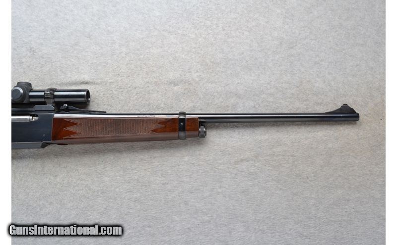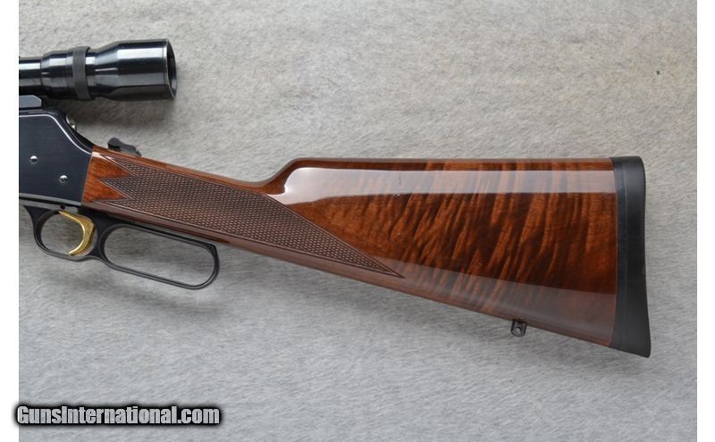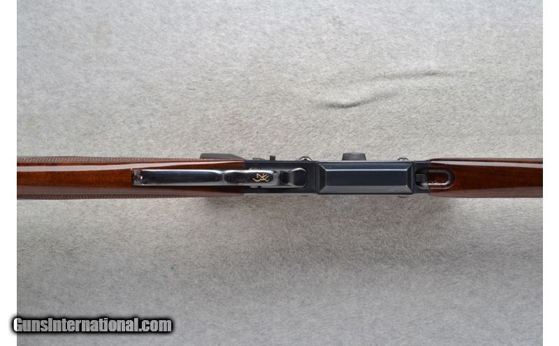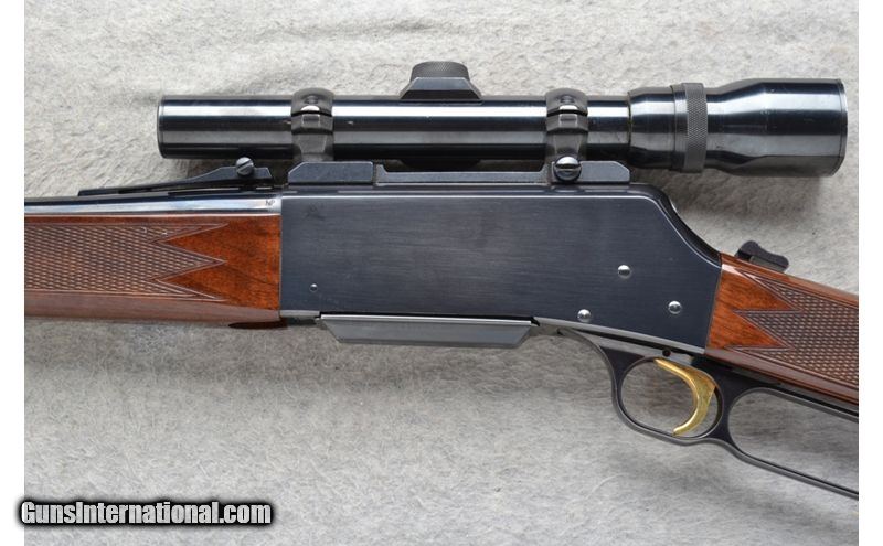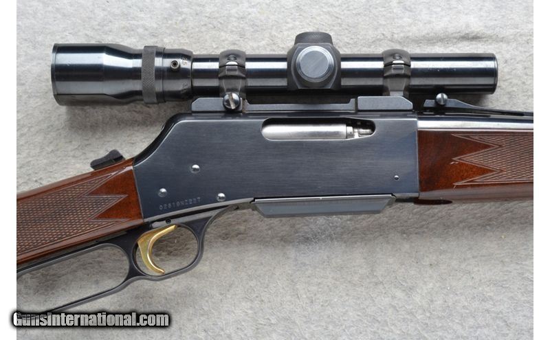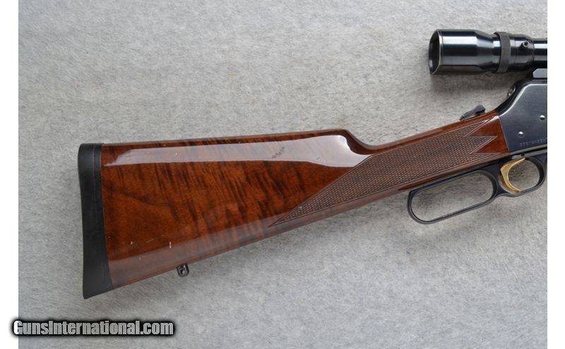 Description: This Browning Model 81 BLR is a right hand lever action rifle in .243 Win. Cal. It has a 20 inch barrel. A blade front and adjustable notch middle sight. It is outfitted with a Weaver Scope. The butt stock is a checkered walnut straight grip. The forearm is a checkered grip walnut with a barrel band. It has a grooved golden trigger. .243 Winchester SOLD Chambers: Lever Action 4 round detachable magazine. Metal Condition: Very good. A few minor handling marks. Wood Condition: Good. Light handling marks. Bore Condition: Very good. Barrels: 20 inch barrel. Triggers: Grooved. Golden. Stock Dimensions: LOP 13.75 inches. Fore End: Checkered grip walnut with a barrel band. Butt Pad: Browning black rubber pad. Weight: 8 lb. 8 Oz. Sights: Raised blade front. Adjustable notch middle. Weaver V4.5-W Scope. Item Location: Richfield, WI |
