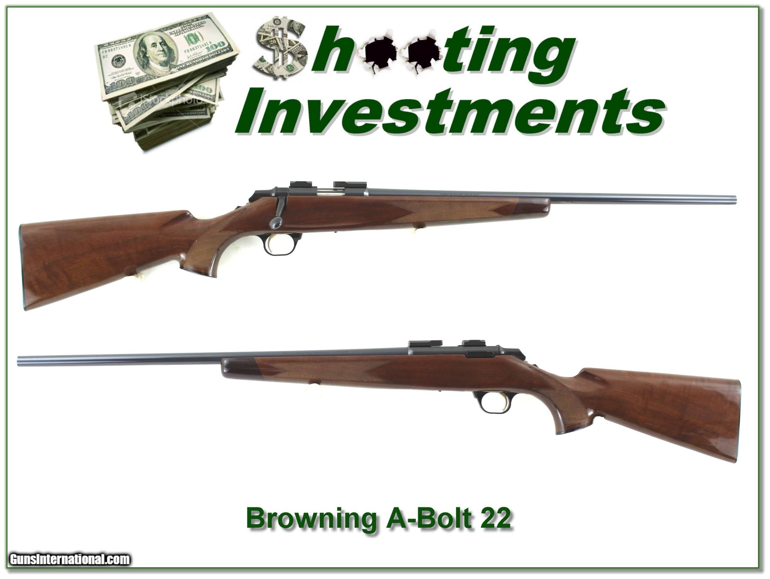 Description: This is an excellent condition Browning A-Bolt 22 LR. These were only made a few years and have become sought after rimfires. I am sure this one has only fired a few rounds. I find only a couple insignificant marks on the stock. It will make a fine addition to your collection and is a real Shooting Investment! I am selling this one on consignment and as such lay-a-way can’t be used. It does of course have the standard 3-day inspection. Shipping and insurance is $39. Please email me with any questions or larger pictures. (Consign your quality firearms with Shooting Investments for only 12%! Let me know if you have any you would like to sell!) 21-0518 Payment: Payment is by Money Order, Cashiers Check or Personal Check. I can now also accept Credit Cards (MasterCard, Visa, Discover & American Express) with a 3% convenience fee. Shipping: The shipping charge will be listed in each description. It is $39 for most firearms. Some heavy guns or those insured for over $2000 will be higher. Shipments to Alaska and Hawaii are higher because air shipment is required. Most firearms are shipped on Tuesday and Thursday and usually in 5 days of receipt of payment. We package all shipments carefully and insure them. Optics are shipped Priority Mail and most other non-firearm shipments are shipped First Class. Returns: Our return policy is simple. If for any reason you are not pleased with your purchase, you may return your item for a full refund of purchase price. Ammunition cannot be returned. It is important to us that you are happy. Guns cannot be fired or dissembled before returning them and they must be returned in the same condition as received. Notification of a return must occur with-in 3 days of receipt at your dealer. Shipping, convenience and dealer fees are not refundable and are the responsibility of the buyer. Lay-a-way: If needed, we offer a 60 day lay-a-way option on most firearms. It is 1/3 now, 1/3 in 30 days and 1/3 in 60 days. Lay-a-way firearm sales are final and if not completed the first payment cannot be returned. Consigning your firearms with Shooting Investments: We will help you get top dollar for your firearms. While most local guns shops charge 20% or more, our fee is only 12% with a minimum of $75. At your local gun shop it might take months to sell. Selling on-line provides instant access to thousands of interested buyers. You won’t find any other on-line dealer willing to sell your firearms for only 12% or listing every gun on 3 separate s. Selling through an House typically costs the seller 15% and the buyer an addition 15% (so 30%) and you have to wait several months to sell and longer to receive funds. If properly priced, we will sell your firearms in a few weeks. Send us an email or give us a call and we’ll explain how easy it is for you to get top dollar. Trading: Trading for use is really just buying your gun to re-sell. If you have a gun you want to trade, please email a picture and we will let you know what we can give or it. You will always get more if we sell it for you on consignment. Help for California Buyers: We are happy to ship to California. It is the buyer’s responsibility to make sure any item you buy is legal in your state. We are also happy to help with your purchase of a firearm from someone other than us. If you see a gun you would like to buy but the seller can’t or won’t ship to California they can ship to use and we’ll then ship it to your California dealer. The cost for this service is only $30 + shipping. Let us know if we can help! SOLD |