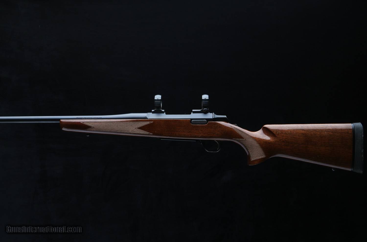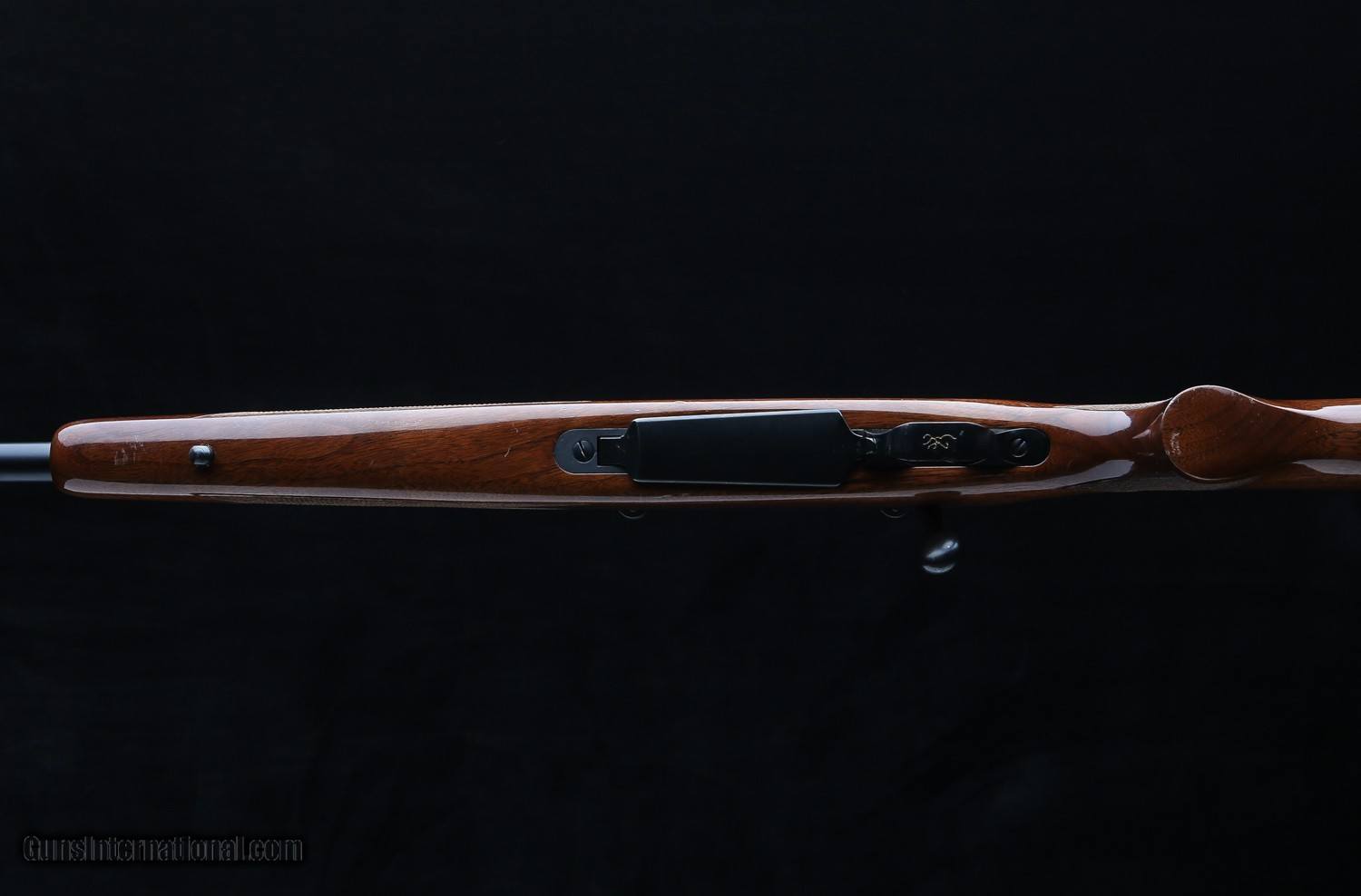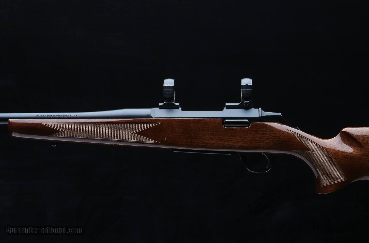 Description: This Browning A-bolt .300 WSM features a glass finish walnut stock, with 2 panel point checkering on the forend and pistol grip, 1" black rubber recoil pad, black matte blueing on reciver and barral, front and rear ball swing swivals, 30mm rings and bases, tang push safety, and an overall condition of 97/98% with some sloght handling marks on the stock. SOLD Rifle Caliber: .300 Winchester Short Magnum Manufacturer: Browning Model: A-bolt Serial Number: 10172MY351 Condition: 97/98% Bore Condition: Perfect Action: Bolt LOP: 13 3/4 Finish: Matte Blue Weight: 7.3 lbs |