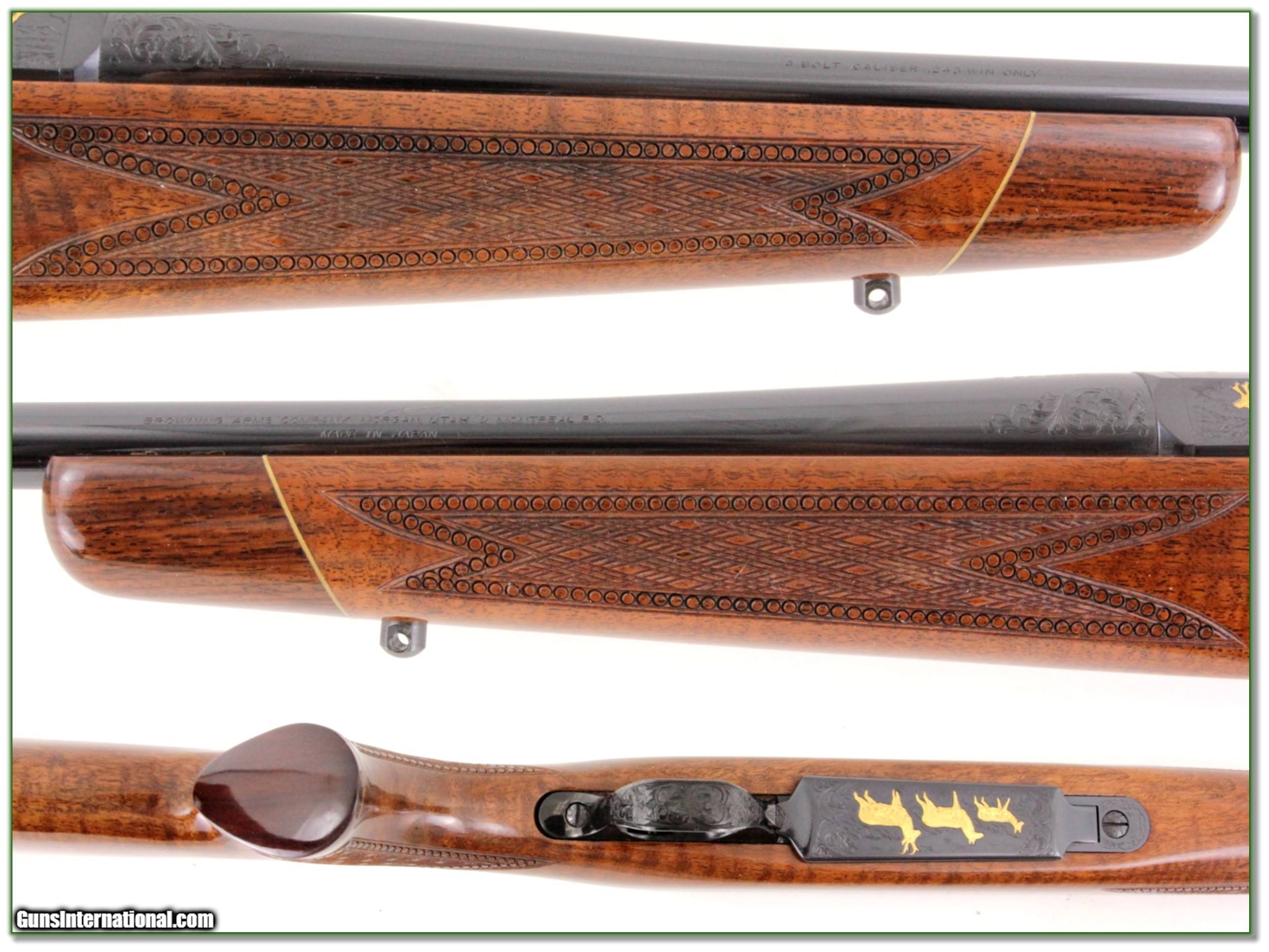 Description: This is a hard to find Browning A-Bolt Pronghorn High-Grade. These are 243 Winchester and 500 were made. This one is unfired in original box with papers. The wood is nicer than my pictures show. I am selling this one on consignment and as such lay-a-way can’t be used. It does of course have the standard 3-day inspection. Shipping with insurance is $39. Please email me with any questions or larger pictures. (Consign your quality firearms with Shooting Investments for only 12%! Let me know if you have any you would like to sell!) 19-0991 Payment: Payment is by Money Order, Cashiers Check or Personal Check. I can now also accept Credit Cards (MasterCard, Visa, Discover & American Express) with a 3% convenience fee. PayPal can be used for some items but never for firearms. Shipping: The shipping charge will be listed in each description. It is $39 for most firearms. Some heavy guns or those insured for over $2000 will be higher. Shipments to Alaska and Hawaii are higher because air shipment is required. Most firearms are shipped on Tuesday and Thursday and usually in 5 days of receipt of payment. We package all shipments carefully and insure them. Optics are shipped Priority Mail and most other non-firearm shipments are shipped First Class. Returns: Our return policy is simple. If for any reason you are not pleased with your purchase, you may return your item for a full refund of purchase price. Ammunition cannot be returned. It is important to us that you are happy. Guns cannot be fired or dissembled before returning them and they must be returned in the same condition as received. Notification of a return must occur with-in 3 days of receipt at your dealer. Shipping, convenience and dealer fees are not refundable and are the responsibility of the buyer. Lay-a-way: If needed, we offer a 60 day lay-a-way option on most firearms. It is 1/3 now, 1/3 in 30 days and 1/3 in 60 days. Lay-a-way firearm sales are final and if not completed the first payment cannot be returned. Consigning your firearms with Shooting Investments: We will help you get top dollar for your firearms. While most local guns shops charge 20% or more, our fee is only 12% with a minimum of $75. At your local gun shop it might take months to sell. Selling on-line provides instant access to thousands of interested buyers. You won’t find any other on-line dealer willing to sell your firearms for only 12% or listing every gun on 3 separate s. Selling through an House typically costs the seller 15% and the buyer an addition 15% (so 30%) and you have to wait several months to sell and longer to receive funds. If properly priced, we will sell your firearms in a few weeks. Send us an email or give us a call and we’ll explain how easy it is for you to get top dollar. Trading: Trading for use is really just buying your gun to re-sell. If you have a gun you want to trade, please email a picture and we will let you know what we can give or it. You will always get more if we sell it for you on consignment. Help for California Buyers: We are happy to ship to California. It is the buyer’s responsibility to make sure any item you buy is legal in your state. We are also happy to help with your purchase of a firearm from someone other than us. If you see a gun you would like to buy but the seller can’t or won’t ship to California they can ship to use and we’ll then ship it to your California dealer. The cost for this service is only $30 + shipping. Let us know if we can help! SOLD |