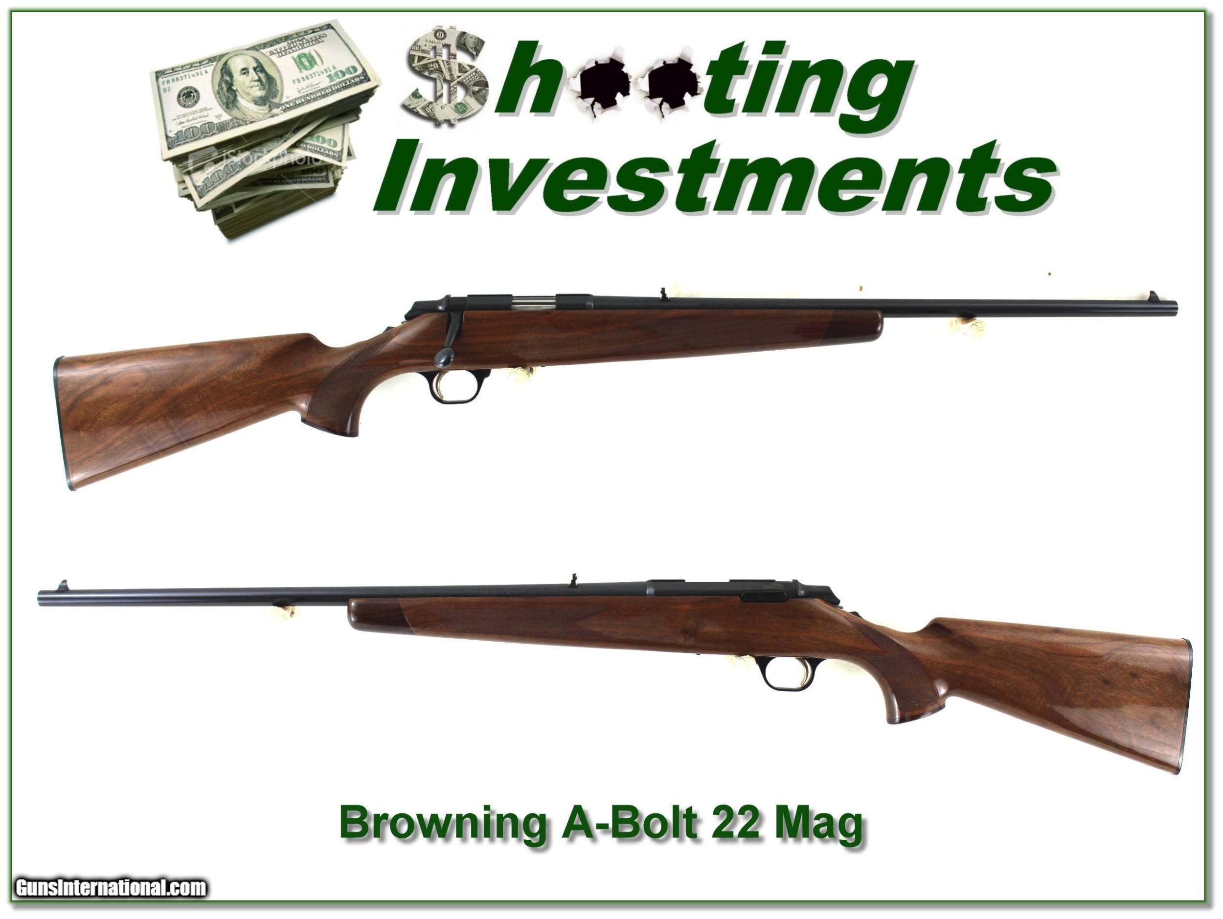 Description: Collectors, shooters, and hunters, this is a like new condition Browning A-Bolt in 22 Magnum. If you are a Browning collector, you know how hard these are to find and to find one in like new condition is VERY hard. I find no marks on the metal or the wood with this one and look at the wood! It has outstanding color and grain. You will look hard to find a nicer one. It is a real Shooting Investment! Shipping and insurance is $49. Please email me with any questions or larger pictures. (Consign your quality firearms with Shooting Investments for only 12%! Let me know if you have any you would like to sell!) 22-0844 Payment: Payment is by Money Order, Cashier’s Check or Personal Check. I can now also accept Credit Cards (MasterCard, Visa, Discover & American Express) with a 3% convenience fee. Shipping: The shipping charge will be listed in each description. It is $39 for most firearms. Some heavy guns or those insured for over $2000 will be higher. Shipments to Alaska and Hawaii are higher because air shipment is required. Most firearms are shipped on Tuesday and Thursday and usually in 5 days of receipt of payment. We package all shipments carefully and insure them. Optics are shipped Priority Mail and most other non-firearm shipments are shipped First Class. Returns: Our return policy is simple. If for any reason you are not pleased with your purchase, you may return your item for a full refund of purchase price. Ammunition cannot be returned. It is important to us that you are happy. Guns cannot be fired or dissembled before returning them and they must be returned in the same condition as received. Notification of a return must occur within 3 days of receipt at your dealer. Shipping, convenience and dealer fees are not refundable and are the responsibility of the buyer. Lay-a-way: If needed, we offer a 60 day lay-a-way option on most firearms. It is 1/3 now, 1/3 in 30 days and 1/3 in 60 days. Lay-a-way firearm sales are final and cannot be returned. If a lay-a-way is not completed the first payment cannot be refunded. Consigning your firearms with Shooting Investments: We will help you get top dollar for your firearms. While most local guns shops charge 20% or more, our fee is only 12% with a minimum of $75. At your local gun shop it might take months to sell. Selling on-line provides instant access to thousands of interested buyers. You won’t find any other on-line dealer willing to sell your firearms for only 12% or listing every gun on 3 separate s. Selling through an House typically costs the seller 15% and the buyer an addition 15% (so 30%) and you have to wait several months to sell and longer to receive funds. If properly priced, we will sell your firearms within a few weeks. Send us an email or give us a call and we’ll explain how easy it is for you to get top dollar. Trading: Trading for us is really just buying your gun to re-sell. If you have a gun you want to trade, please email a picture and we will let you know what we can give for it. You will always get more if we sell it for you on consignment. Help for California Buyers: We are happy to ship to California. It is the buyer’s responsibility to make sure any item you buy is legal in your state. We are also happy to help with your purchase of a firearm from someone other than us. If you see a gun you would like to buy but the seller can’t or won’t ship to California they can ship to use and we’ll then ship it to your California dealer. The cost for this service is only $30 + shipping. Let us know if we can help! SOLD |