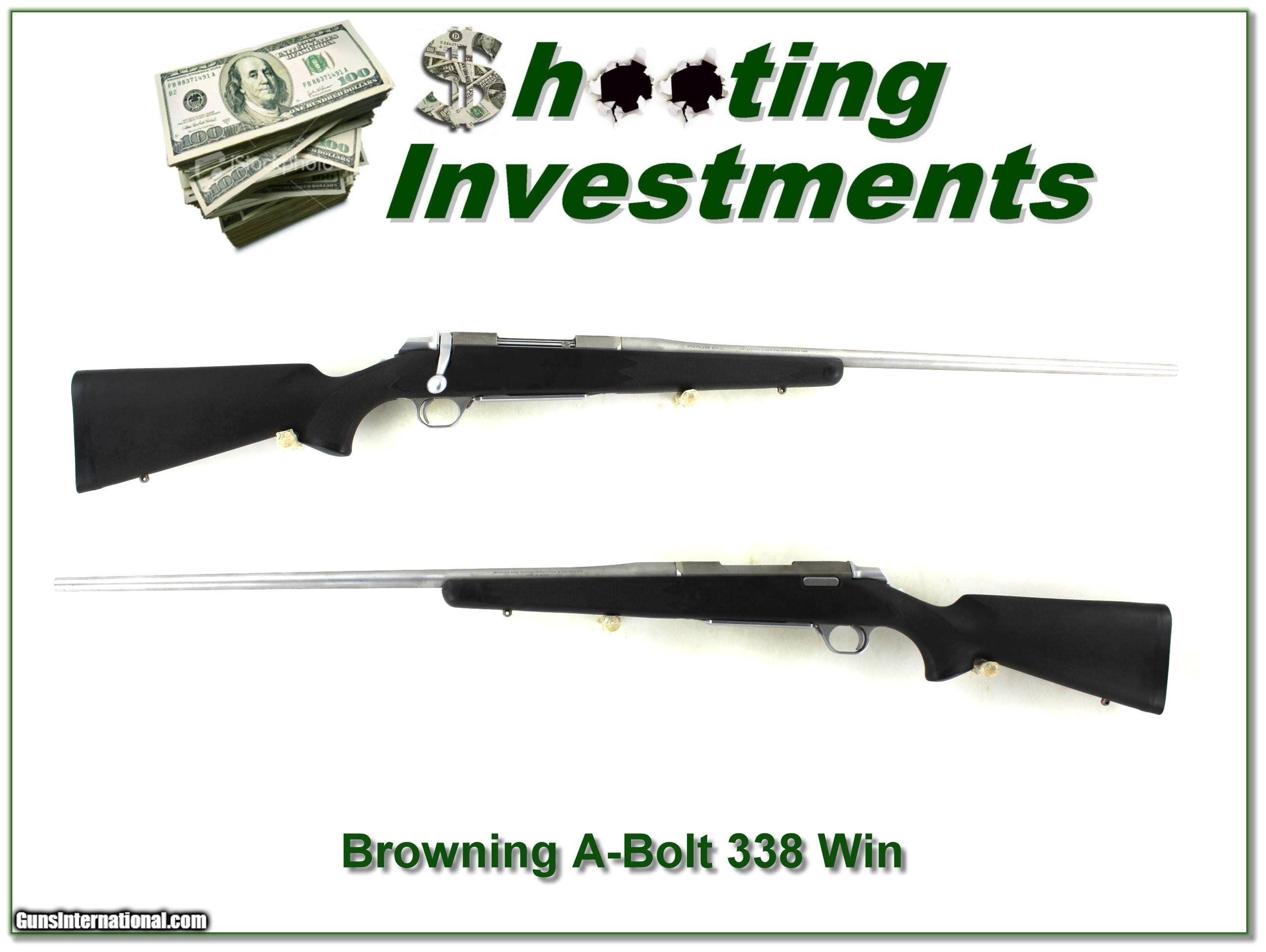 Description: This is a Browning A-Bolt in the hard hitting 338 Winchester Magnum. It is very nice with just a few minor marks. It has a 26in barrel and will make an excellent all-weather big game hunting gun. Shipping and insurance is $49. Please email me with any questions or larger pictures. (Consign your quality firearms with Shooting Investments for only 12%! Let me know if you have any you would like to sell!) 24-0348 Payment: Payment is by Money Order, Cashier’s Check or Personal Check. I can now also accept Credit Cards (MasterCard, Visa, Discover & American Express) with a 3% convenience fee. Shipping: The shipping charge will be listed in each description. It is $49 for most firearms. Some heavy guns or those insured for over $2000 will be higher. Shipments to Alaska and Hawaii are higher because air shipment is required. Most firearms are shipped on Tuesday and Thursday and usually in 5 days of receipt of payment. We package all shipments carefully and insure them. Optics are shipped Priority Mail and most other non-firearm shipments are shipped First Class. Returns: Our return policy is simple. If for any reason you are not pleased with your purchase, you may return your item for a full refund of purchase price. Ammunition cannot be returned. It is important to us that you are happy. Guns cannot be fired or dissembled before returning them and they must be returned in the same condition as received. Notification of a return must occur within 3 days of receipt at your dealer. Shipping, convenience and dealer fees are not refundable and are the responsibility of the buyer. Lay-a-way: If needed, we offer a 60 day lay-a-way option on most firearms. It is 1/3 now, 1/3 in 30 days and 1/3 in 60 days. Lay-a-way firearm sales are final and cannot be returned. If a lay-a-way is not completed the first payment cannot be refunded. Consigning your firearms with Shooting Investments: We will help you get top dollar for your firearms. While most local guns shops charge 20% or more, our fee is only 12% with a minimum of $75. At your local gun shop it might take months to sell. Selling on-line provides instant access to thousands of interested buyers. You won’t find any other on-line dealer willing to sell your firearms for only 12% or listing every gun on 3 separate s. Selling through an House typically costs the seller 15% and the buyer an addition 15% (so 30%) and you have to wait several months to sell and longer to receive funds. If properly priced, we will sell your firearms within a few weeks. Send us an email or give us a call and we’ll explain how easy it is for you to get top dollar. Trading: Trading for us is really just buying your gun to re-sell. If you have a gun you want to trade, please email a picture and we will let you know what we can give for it. You will always get more if we sell it for you on consignment. SOLD |