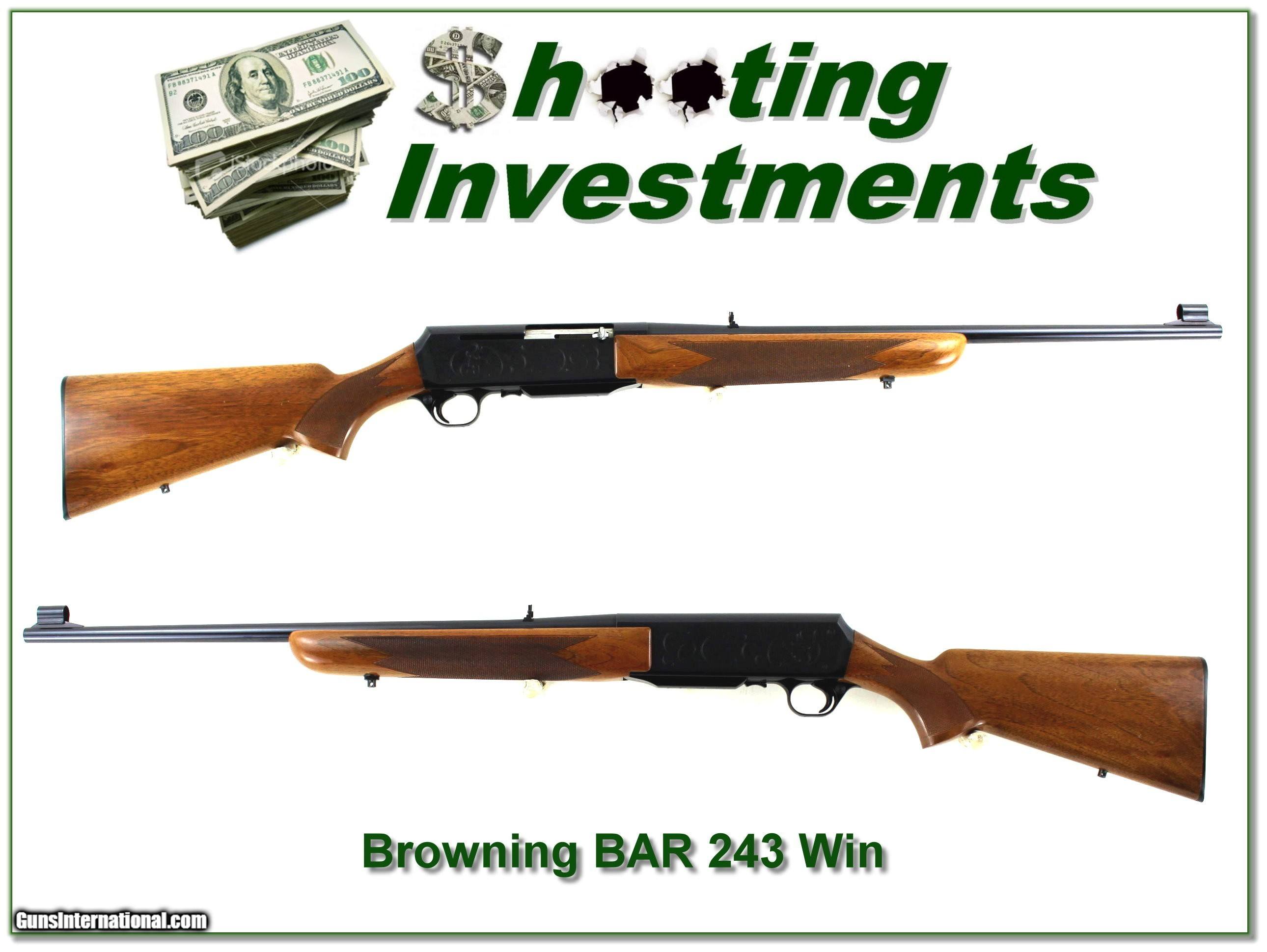 Description: This is a VERY hard to find Belgium Grade II Browning BAR in 243 Winchester. This one was made in 1970 and has beautiful honey blond wood. The metal looks new with no marks I find. I’m sure only a few rounds fired. The wood has only a few minor storage marks. It will make a classic hunting gun or be a fine addition to your collection. It is a real Shooting Investment! Shipping and insurance is $59. Please email me with any questions or larger pictures. (Consign your quality firearms with Shooting Investments for only 12%! Let me know if you have any you would like to sell!) 24-0049 Payment: Payment is by Money Order, Cashier’s Check or Personal Check. I can now also accept Credit Cards (MasterCard, Visa, Discover & American Express) with a 3% convenience fee. Shipping: The shipping charge will be listed in each description. It is $49 for most firearms. Some heavy guns or those insured for over $2000 will be higher. Shipments to Alaska and Hawaii are higher because air shipment is required. Most firearms are shipped on Tuesday and Thursday and usually in 5 days of receipt of payment. We package all shipments carefully and insure them. Optics are shipped Priority Mail and most other non-firearm shipments are shipped First Class. Returns: Our return policy is simple. If for any reason you are not pleased with your purchase, you may return your item for a full refund of purchase price. Ammunition cannot be returned. It is important to us that you are happy. Guns cannot be fired or dissembled before returning them and they must be returned in the same condition as received. Notification of a return must occur within 3 days of receipt at your dealer. Shipping, convenience and dealer fees are not refundable and are the responsibility of the buyer. Lay-a-way: If needed, we offer a 60 day lay-a-way option on most firearms. It is 1/3 now, 1/3 in 30 days and 1/3 in 60 days. Lay-a-way firearm sales are final and cannot be returned. If a lay-a-way is not completed the first payment cannot be refunded. Consigning your firearms with Shooting Investments: We will help you get top dollar for your firearms. While most local guns shops charge 20% or more, our fee is only 12% with a minimum of $75. At your local gun shop it might take months to sell. Selling on-line provides instant access to thousands of interested buyers. You won’t find any other on-line dealer willing to sell your firearms for only 12% or listing every gun on 3 separate s. Selling through an House typically costs the seller 15% and the buyer an addition 15% (so 30%) and you have to wait several months to sell and longer to receive funds. If properly priced, we will sell your firearms within a few weeks. Send us an email or give us a call and we’ll explain how easy it is for you to get top dollar. Trading: Trading for us is really just buying your gun to re-sell. If you have a gun you want to trade, please email a picture and we will let you know what we can give for it. You will always get more if we sell it for you on consignment. SOLD |