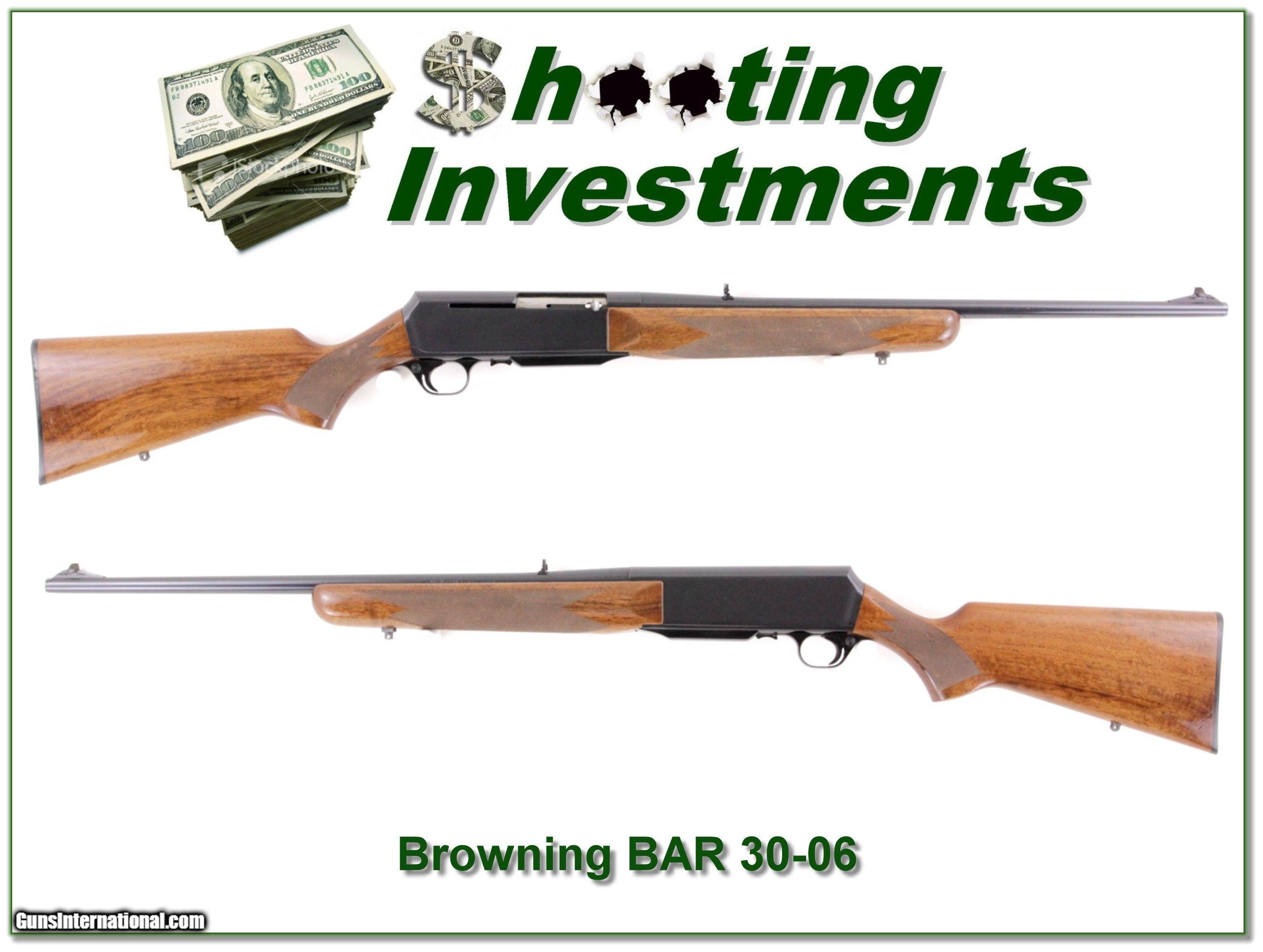 Description: This is a Browning BAR in 30-06. It is a Mark 1, Type 1 indicating it is the original design with a machined receiver. The Type 2’s were stamped. This one has excellent blue with no edge or carry wear. I’m sure only a few rounds through it. It does have scattered handing marks. It will make a classic hunting gun for far less than a newer one. Shipping and insurance is $39. Please email me with any questions or larger pictures. (Consign your quality firearms with Shooting Investments for only 12%! Let me know if you have any you would like to sell!) 18-0643 Payment: Payment is by Money Order, Cashiers Check or Personal Check. I can now also accept MasterCard and Visa with a 3% convenience fee. PayPal can be used for some items but never firearms. Please let us know if you would like to pay via PayPal. Shipping: The shipping charge will be listed in each description. It is $39 for most long guns and $29 for most handguns. Some heavy guns or those insured for over $2000 will be higher. Shipments to Alaska and Hawaii are higher because air shipment is required. Most firearms are shipped on Tuesday and Thursday and usually in 5 days of receipt of payment. We package all shipments carefully and insure them. Optics are shipped Priority Mail and most other non-firearm shipments are shipped First Class. Returns: Our return policy is simple. If for any reason you are not pleased with your purchase, you may return your item for a full refund of purchase price. Ammunition cannot be returned. It is important to us that you are happy. Guns cannot be fired or dissembled before returning them and they must be returned in the same condition as received. Notification of a return must occur with-in 3 days of receipt at your dealer. Shipping, convenience and dealer fees are not refundable and are the responsibility of the buyer. Lay-a-way: If needed, we offer a 60 day lay-a-way option on most firearms. It is 1/3 now, 1/3 in 30 days and 1/3 in 60 days. Lay-a-way firearm sales are final and if not completed the first payment cannot be returned. Consigning your firearms with Shooting Investments: We will help you get top dollar for your firearms. While most local guns shops charge 20% or more, our fee is only 12% with a minimum of $75. At your local gun shop it might take months to sell. Selling on-line provides instant access to thousands of interested buyers. You won’t find any other on-line dealer willing to sell your firearms for only 12% or listing every gun on 3 separate s. Selling through an House typically costs the seller 15% and the buyer an addition 15% (so 30%) and you have to wait several months to sell and longer to receive funds. If properly priced, we will sell your firearms in a few weeks. Send us an email or give us a call and we’ll explain how easy it is for you to get top dollar. Trading: Trading for use is really just buying your gun to re-sell. If you have a gun you want to trade, please email a picture and we will let you know what we can give or it. You will always get more if we sell it for you on consignment. Help for California Buyers: We are happy to ship to California. It is the buyer’s responsibility to make sure any item you buy is legal in your state. We are also happy to help with your purchase of a firearm from someone other than us. If you see a gun you would like to buy but the seller can’t or won’t ship to California they can ship to use and we’ll then ship it to your California dealer. The cost for this service is only $30 + shipping. Let us know if we can help! SOLD |