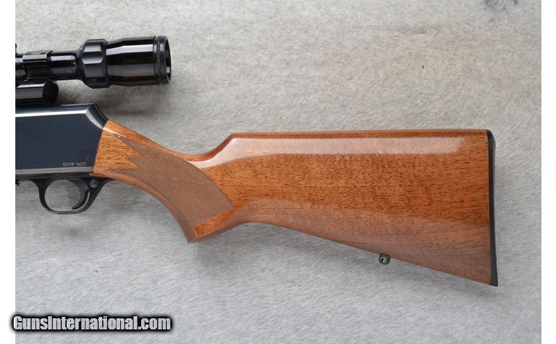 Description: This Browning Model BAR is a right hand semi-auto rifle in .30-06 Cal. It has a 22 inch barrel. A blade front sight and an adjustable notch middle sight. It is outfitted with a Bushnell 3-9x40 Scope. The walnut stock is a checkered pistol grip butt and forearm. .30-06 Springfield SOLD Barrels: 22 inch Weight: 8 lbs. 7 oz. Item Location: Richfield, WI |