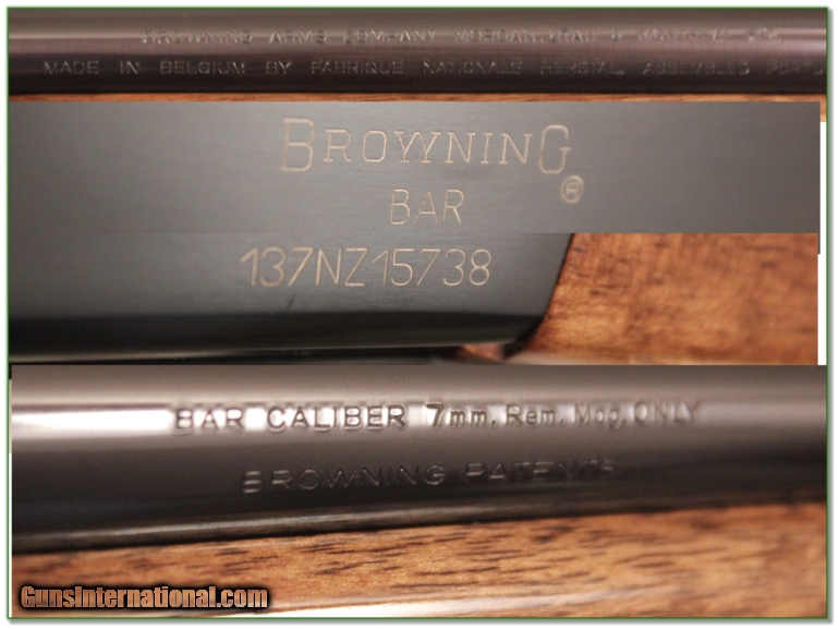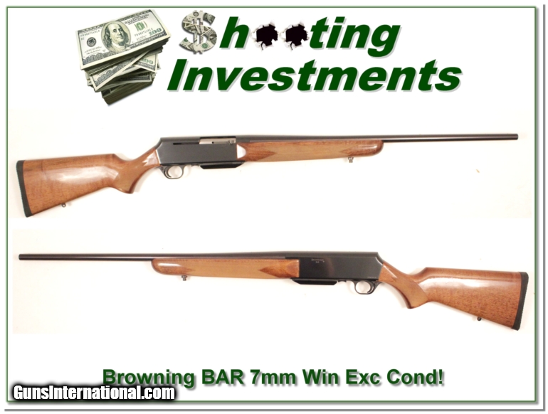 Description: This is a BAR in 7mm Rem Mag. It is in excellent near new condition. Only the lightest of handing mark but none of note. With the price of a new BAR now over $1200 this is for sure a Shooting Investment. Shipping and insurance is $30 or $18 more if you want it shipped in a new Plano hard case. Please email me with any questions or larger pictures. (I now consign quality firearms only 10%! Let me know if you have any you would like to sell!) [14-0339] Terms & Conditions Payment: Payment is by Money Order, Cashiers Check or Personal Check. I can now also accept MasterCard and Visa with a 3% convenience fee. PayPal can be used for some items but never firearms. Please let us know if you would like to pay via PayPal. Shipping: The shipping charge will be listed in each description. It is $30 for most guns. Some heavy guns or those insured for over $2000 may be higher. Shipments to Alaska and Hawaii are higher because air shipment is required. Most firearms are shipped within 5 days of receipt of payment. We prefer shipping at the beginning of the week to avoid firearms in transit over weekends. We package all shipments carefully and insure them for the full purchase price, rounded up to the next $100. In the unlikely event that damage occurs, it is important that you save all packaging material for the claims process. Optics are shipped Priority Mail and most other non-firearm shipments are shipped First Class. Returns: Our return policy is simple. If for any reason you are not pleased with your purchase, you may return your item for a refund. The only exception is ammunition, it cannot be returned. It is important to us that you are happy. Guns cannot be fired or dissembled before returning them and must be returned in the same condition as received. Notification of a return must occur with-in 3 days of receipt at your dealer. Shipping, convenience and dealer fees are not refundable and are the responsibility of the buyer. Lay-a-way: If needed, we offer a 60 day lay-a-way option on most firearms. It is 1/3 now, 1/3 in 30 days and 1/3 in 60 days. Lay-a-way firearm sales are final. Consigning your firearms with Shooting Investments: We will help you get top dollar for your firearms. While most local guns shops charge 20% or more, our fee is only 10% with a minimum of $50. At your local gun shop it might take months to sell. Selling on-line provides instant access to thousands of interested buyers. You won’t find any other on-line dealer willing to sell your firearms for only 10% or listing every gun on 4 separate s. Selling through an House typically costs 15% and you have to wait several months to sell and longer to receive funds. If properly priced, we will sell your firearms in a week or two. Send us an email or give us a call and we’ll explain how easy it is for you to get top dollar. Trading: We collect guns and usually just trade for guns we want to add to our collections. We often sell guns for others wanting to purchase one of ours. We find this the most fair to both of us. Our Commission is only 10% and we hold the gun you want until yours sells. Please contact us if you want to sell one of yours to buy one of ours. Help for California Buyers: We are happy to ship to California. It is the buyer’s responsibility to make sure any item you buy is legal in your state. We are also happy to help with your purchase of a firearm from someone other than us. If you see a gun you would like to buy but the seller can’t or won’t ship to California we can help. You buy the gun and have it shipped to us. We’ll then ship it to your California dealer. The cost for this service is only $30 + shipping. Let me know if we can help! SOLD |