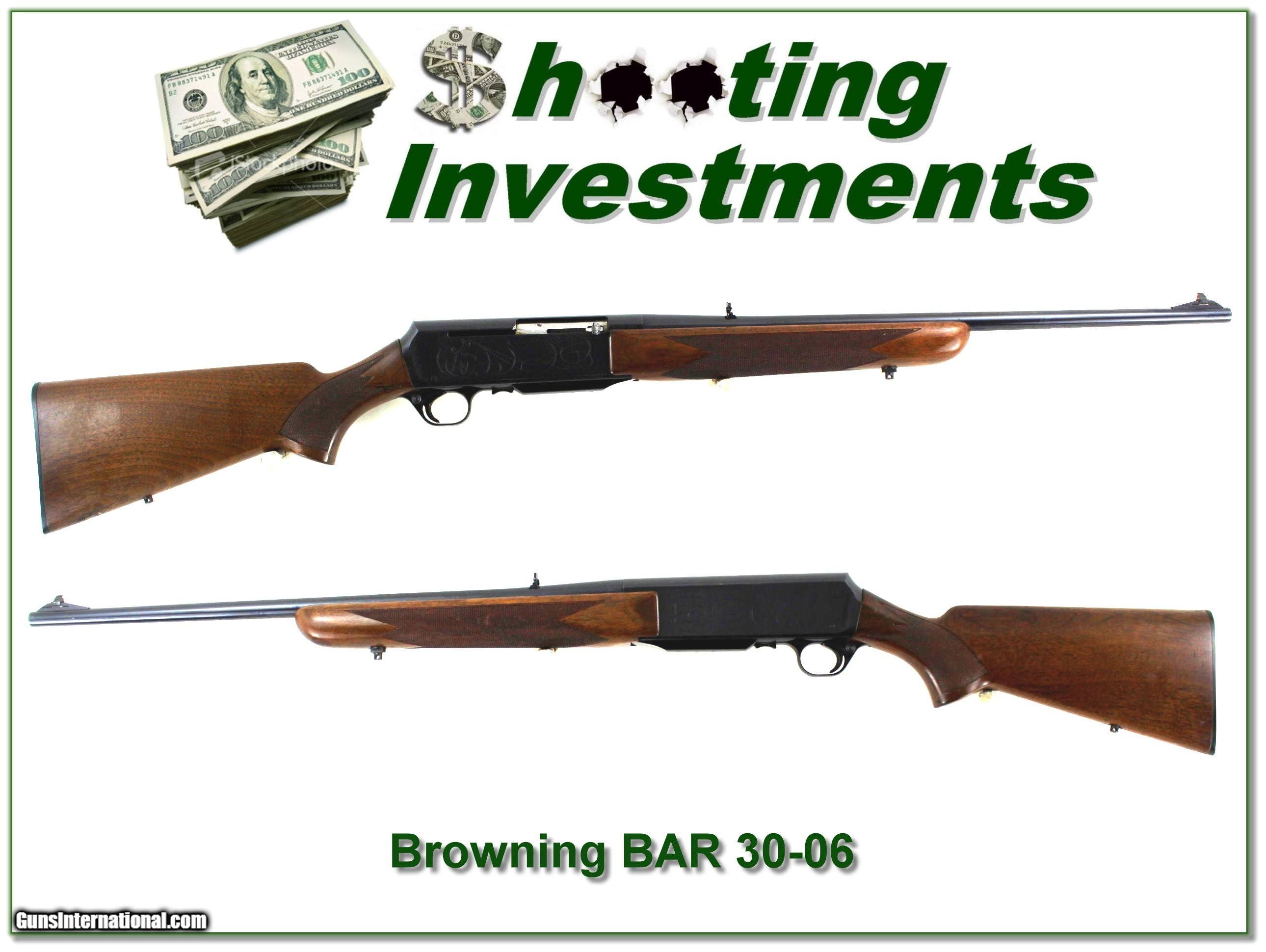 Description: This is a 1970 Belgium made Browning BAR Grade II in 30-06. It has the hand engraved Grade II scrolling on the receiver and a 22in barrel with open sights. The blue has just some light thinning on the carry points of the receiver. The wood has just a few minor marks. It will make a classic hunting gun and they just don’t make them like they used too! I call it a Shooting Investment. Shipping and insurance is $49. Please email me with any questions or larger pictures. (Consign your quality firearms with Shooting Investments for only 12%! Let me know if you have any you would like to sell!) 24-0336 Payment: Payment is by Money Order, Cashier’s Check or Personal Check. I can now also accept Credit Cards (MasterCard, Visa, Discover & American Express) with a 3% convenience fee. Shipping: The shipping charge will be listed in each description. It is $49 for most firearms. Some heavy guns or those insured for over $2000 will be higher. Shipments to Alaska and Hawaii are higher because air shipment is required. Most firearms are shipped on Tuesday and Thursday and usually in 5 days of receipt of payment. We package all shipments carefully and insure them. Optics are shipped Priority Mail and most other non-firearm shipments are shipped First Class. Returns: Our return policy is simple. If for any reason you are not pleased with your purchase, you may return your item for a full refund of purchase price. Ammunition cannot be returned. It is important to us that you are happy. Guns cannot be fired or dissembled before returning them and they must be returned in the same condition as received. Notification of a return must occur within 3 days of receipt at your dealer. Shipping, convenience and dealer fees are not refundable and are the responsibility of the buyer. Lay-a-way: If needed, we offer a 60 day lay-a-way option on most firearms. It is 1/3 now, 1/3 in 30 days and 1/3 in 60 days. Lay-a-way firearm sales are final and cannot be returned. If a lay-a-way is not completed the first payment cannot be refunded. Consigning your firearms with Shooting Investments: We will help you get top dollar for your firearms. While most local guns shops charge 20% or more, our fee is only 12% with a minimum of $75. At your local gun shop it might take months to sell. Selling on-line provides instant access to thousands of interested buyers. You won’t find any other on-line dealer willing to sell your firearms for only 12% or listing every gun on 3 separate s. Selling through an House typically costs the seller 15% and the buyer an addition 15% (so 30%) and you have to wait several months to sell and longer to receive funds. If properly priced, we will sell your firearms within a few weeks. Send us an email or give us a call and we’ll explain how easy it is for you to get top dollar. Trading: Trading for us is really just buying your gun to re-sell. If you have a gun you want to trade, please email a picture and we will let you know what we can give for it. You will always get more if we sell it for you on consignment. SOLD |