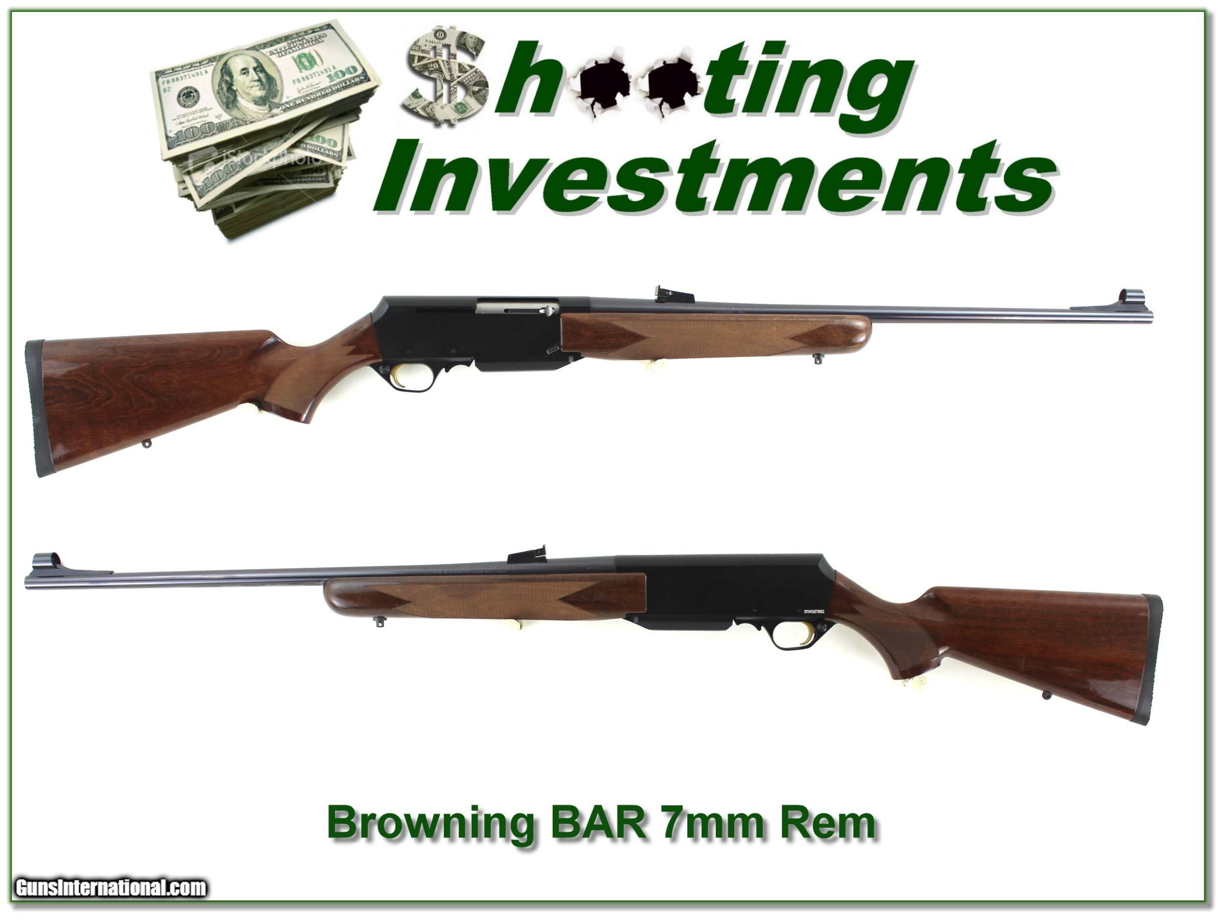 Description: This is a hard to find BAR Mark II Lightweight with walnut stock in 7mm Remington Magnum! I believe it is unfired and I only find a couple insignificant storage marks on the wood. It comes with open sights as seen and will make a classic (no longer made) hunting gun. Or of course be a fine addition to your collection. Shipping with insurance is $39. Please email me with any questions or larger pictures. (Consign your quality firearms with Shooting Investments for only 12%! Let me know if you have any you would like to sell!) 21-1555 Payment: Payment is by Money Order, Cashiers Check or Personal Check. I can now also accept Credit Cards (MasterCard, Visa, Discover & American Express) with a 3% convenience fee. Shipping: The shipping charge will be listed in each description. It is $39 for most firearms. Some heavy guns or those insured for over $2000 will be higher. Shipments to Alaska and Hawaii are higher because air shipment is required. Most firearms are shipped on Tuesday and Thursday and usually in 5 days of receipt of payment. We package all shipments carefully and insure them. Optics are shipped Priority Mail and most other non-firearm shipments are shipped First Class. Returns: Our return policy is simple. If for any reason you are not pleased with your purchase, you may return your item for a full refund of purchase price. Ammunition cannot be returned. It is important to us that you are happy. Guns cannot be fired or dissembled before returning them and they must be returned in the same condition as received. Notification of a return must occur with-in 3 days of receipt at your dealer. Shipping, convenience and dealer fees are not refundable and are the responsibility of the buyer. Lay-a-way: If needed, we offer a 60 day lay-a-way option on most firearms. It is 1/3 now, 1/3 in 30 days and 1/3 in 60 days. Lay-a-way firearm sales are final and if not completed the first payment cannot be returned. Consigning your firearms with Shooting Investments: We will help you get top dollar for your firearms. While most local guns shops charge 20% or more, our fee is only 12% with a minimum of $75. At your local gun shop it might take months to sell. Selling on-line provides instant access to thousands of interested buyers. You won’t find any other on-line dealer willing to sell your firearms for only 12% or listing every gun on 3 separate s. Selling through an House typically costs the seller 15% and the buyer an addition 15% (so 30%) and you have to wait several months to sell and longer to receive funds. If properly priced, we will sell your firearms in a few weeks. Send us an email or give us a call and we’ll explain how easy it is for you to get top dollar. Trading: Trading for use is really just buying your gun to re-sell. If you have a gun you want to trade, please email a picture and we will let you know what we can give or it. You will always get more if we sell it for you on consignment. Help for California Buyers: We are happy to ship to California. It is the buyer’s responsibility to make sure any item you buy is legal in your state. We are also happy to help with your purchase of a firearm from someone other than us. If you see a gun you would like to buy but the seller can’t or won’t ship to California they can ship to use and we’ll then ship it to your California dealer. The cost for this service is only $30 + shipping. Let us know if we can help! SOLD |