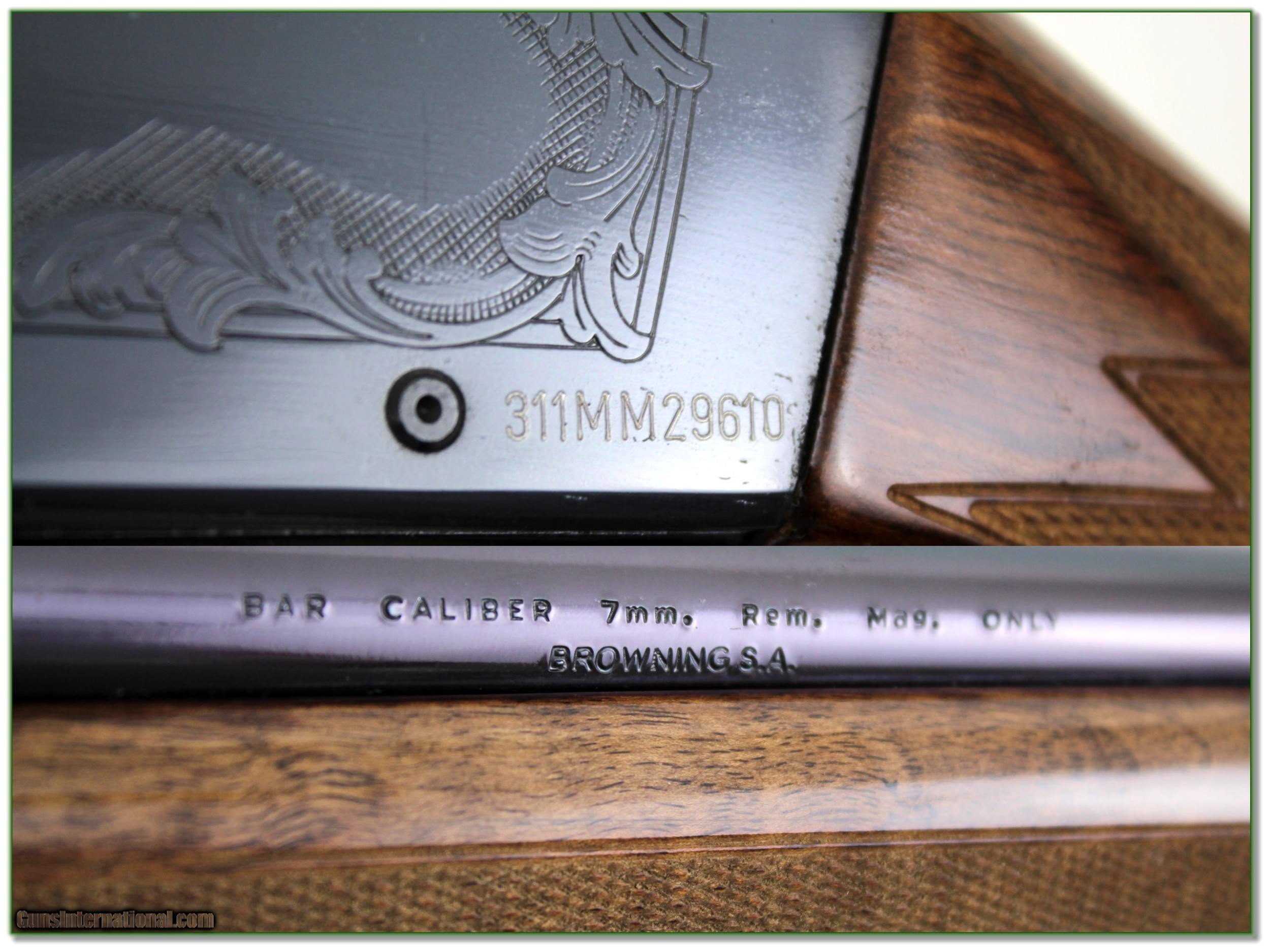 Description: This is a near new Browning BAR Safari II in 7mm Remington Magnum. I am sure only a few rounds fired. I find no marks or wear on the metal and only a couple storage marks on the wood. If will make a classic long range hunting gun or be a fine addition to your collection. It is a real Shooting Investment! Shipping and insurance is $49. Please email me with any questions or larger pictures. (Consign your quality firearms with Shooting Investments for only 12%! Let me know if you have any you would like to sell!) 22-0580 Payment: Payment is by Money Order, Cashier’s Check or Personal Check. I can now also accept Credit Cards (MasterCard, Visa, Discover & American Express) with a 3% convenience fee. Shipping: The shipping charge will be listed in each description. It is $39 for most firearms. Some heavy guns or those insured for over $2000 will be higher. Shipments to Alaska and Hawaii are higher because air shipment is required. Most firearms are shipped on Tuesday and Thursday and usually in 5 days of receipt of payment. We package all shipments carefully and insure them. Optics are shipped Priority Mail and most other non-firearm shipments are shipped First Class. Returns: Our return policy is simple. If for any reason you are not pleased with your purchase, you may return your item for a full refund of purchase price. Ammunition cannot be returned. It is important to us that you are happy. Guns cannot be fired or dissembled before returning them and they must be returned in the same condition as received. Notification of a return must occur within 3 days of receipt at your dealer. Shipping, convenience and dealer fees are not refundable and are the responsibility of the buyer. Lay-a-way: If needed, we offer a 60 day lay-a-way option on most firearms. It is 1/3 now, 1/3 in 30 days and 1/3 in 60 days. Lay-a-way firearm sales are final and cannot be returned. If a lay-a-way is not completed the first payment cannot be refunded. Consigning your firearms with Shooting Investments: We will help you get top dollar for your firearms. While most local guns shops charge 20% or more, our fee is only 12% with a minimum of $75. At your local gun shop it might take months to sell. Selling on-line provides instant access to thousands of interested buyers. You won’t find any other on-line dealer willing to sell your firearms for only 12% or listing every gun on 3 separate s. Selling through an House typically costs the seller 15% and the buyer an addition 15% (so 30%) and you have to wait several months to sell and longer to receive funds. If properly priced, we will sell your firearms within a few weeks. Send us an email or give us a call and we’ll explain how easy it is for you to get top dollar. Trading: Trading for us is really just buying your gun to re-sell. If you have a gun you want to trade, please email a picture and we will let you know what we can give for it. You will always get more if we sell it for you on consignment. Help for California Buyers: We are happy to ship to California. It is the buyer’s responsibility to make sure any item you buy is legal in your state. We are also happy to help with your purchase of a firearm from someone other than us. If you see a gun you would like to buy but the seller can’t or won’t ship to California they can ship to use and we’ll then ship it to your California dealer. The cost for this service is only $30 + shipping. Let us know if we can help! SOLD |