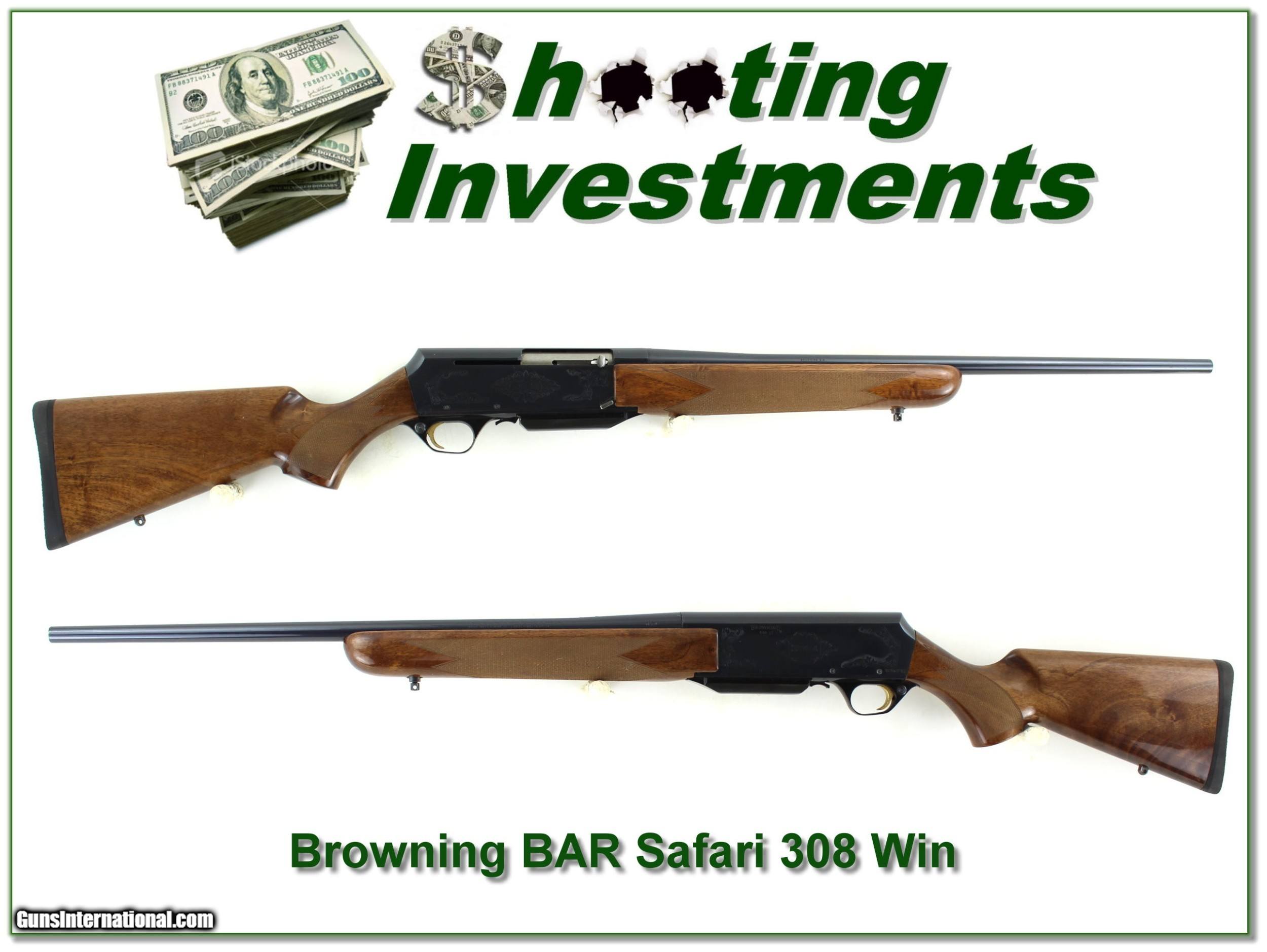 Description: This is a harder to find BAR Safari 308 Winchester. It has beautiful wood. I find no marks on the blue and I’m sure not many rounds fired. The wood has only a few minor marks and the LOP was professionally shortened 1/2in. It will be perfect for a lady or youth. I am selling this one on consignment and as such lay-a-way can’t be used. It does of course have the standard 3-day inspection. Shipping and insurance is $39. Please email me with any questions or larger pictures. (Consign your quality firearms with Shooting Investments for only 12%! Let me know if you have any you would like to sell!) 21-0786 Payment: Payment is by Money Order, Cashiers Check or Personal Check. I can now also accept Credit Cards (MasterCard, Visa, Discover & American Express) with a 3% convenience fee. Shipping: The shipping charge will be listed in each description. It is $39 for most firearms. Some heavy guns or those insured for over $2000 will be higher. Shipments to Alaska and Hawaii are higher because air shipment is required. Most firearms are shipped on Tuesday and Thursday and usually in 5 days of receipt of payment. We package all shipments carefully and insure them. Optics are shipped Priority Mail and most other non-firearm shipments are shipped First Class. Returns: Our return policy is simple. If for any reason you are not pleased with your purchase, you may return your item for a full refund of purchase price. Ammunition cannot be returned. It is important to us that you are happy. Guns cannot be fired or dissembled before returning them and they must be returned in the same condition as received. Notification of a return must occur with-in 3 days of receipt at your dealer. Shipping, convenience and dealer fees are not refundable and are the responsibility of the buyer. Lay-a-way: If needed, we offer a 60 day lay-a-way option on most firearms. It is 1/3 now, 1/3 in 30 days and 1/3 in 60 days. Lay-a-way firearm sales are final and if not completed the first payment cannot be returned. Consigning your firearms with Shooting Investments: We will help you get top dollar for your firearms. While most local guns shops charge 20% or more, our fee is only 12% with a minimum of $75. At your local gun shop it might take months to sell. Selling on-line provides instant access to thousands of interested buyers. You won’t find any other on-line dealer willing to sell your firearms for only 12% or listing every gun on 3 separate s. Selling through an House typically costs the seller 15% and the buyer an addition 15% (so 30%) and you have to wait several months to sell and longer to receive funds. If properly priced, we will sell your firearms in a few weeks. Send us an email or give us a call and we’ll explain how easy it is for you to get top dollar. Trading: Trading for use is really just buying your gun to re-sell. If you have a gun you want to trade, please email a picture and we will let you know what we can give or it. You will always get more if we sell it for you on consignment. Help for California Buyers: We are happy to ship to California. It is the buyer’s responsibility to make sure any item you buy is legal in your state. We are also happy to help with your purchase of a firearm from someone other than us. If you see a gun you would like to buy but the seller can’t or won’t ship to California they can ship to use and we’ll then ship it to your California dealer. The cost for this service is only $30 + shipping. Let us know if we can help! SOLD |