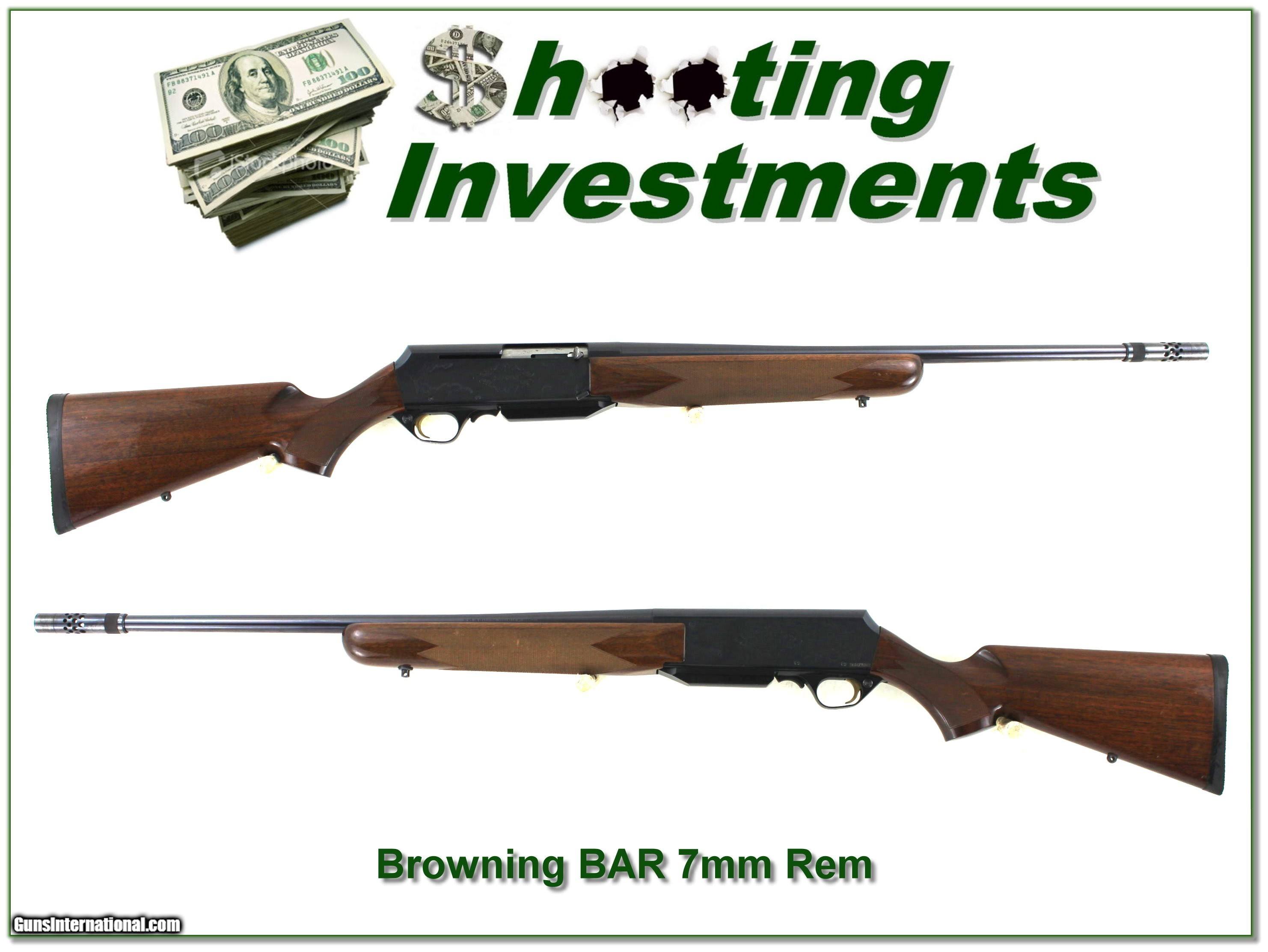 Description: This is a very nice Browning BAR Safari II in the flat-shooting 7mm Remington Magnum. It has the no longer offered BOSS that can be tuned for accuracy, and it reduces recoil to more like a 30-06. It is also Suppressor Ready! I find minor marks from use. It will make a classic big game hunting gun! Shipping and insurance is $49. Please email me with any questions or larger pictures. (Consign your quality firearms with Shooting Investments for only 12%! Let me know if you have any you would like to sell!) 25-0387 Payment: Payment is by Money Order, Cashier’s Check or Personal Check. I can now also accept Credit Cards (MasterCard, Visa, Discover & American Express) with a 3% convenience fee. Shipping: The shipping charge will be listed in each description. It is $49 for most firearms. Some heavy guns or those insured for over $2000 will be higher. Shipments to Alaska and Hawaii are higher because air shipment is required. Most firearms are shipped on Tuesday and Thursday and usually in 5 days of receipt of payment. We package all shipments carefully and insure them. Optics are shipped Priority Mail and most other non-firearm shipments are shipped First Class. Returns: Our return policy is simple. If for any reason you are not pleased with your purchase, you may return your item for a full refund of purchase price. Ammunition cannot be returned. It is important to us that you are happy. Guns cannot be fired or dissembled before returning them and they must be returned in the same condition as received. Notification of a return must occur within 3 days of receipt at your dealer. Shipping, convenience and dealer fees are not refundable and are the responsibility of the buyer. Lay-a-way: If needed, we offer a 60 day lay-a-way option on most firearms. It is 1/3 now, 1/3 in 30 days and 1/3 in 60 days. Lay-a-way firearm sales are final and cannot be returned. If a lay-a-way is not completed the first payment cannot be refunded. Consigning your firearms with Shooting Investments: We will help you get top dollar for your firearms. While most local guns shops charge 20% or more, our fee is only 12% with a minimum of $100. At your local gun shop it might take months to sell. Selling on-line provides instant access to thousands of interested buyers. You won’t find any other on-line dealer willing to sell your firearms for only 12% or listing every gun on 3 separate s. Selling through an House typically costs the seller 15% and the buyer an addition 15% (so 30%) and you have to wait several months to sell and longer to receive funds. If properly priced, we will sell your firearms within a few weeks. Send us an email or give us a call and we’ll explain how easy it is for you to get top dollar. Trading: Trading for us is really just buying your gun to re-sell. If you have a gun you want to trade, please email a picture and we will let you know what we can give for it. You will always get more if we sell it for you on consignment. SOLD |