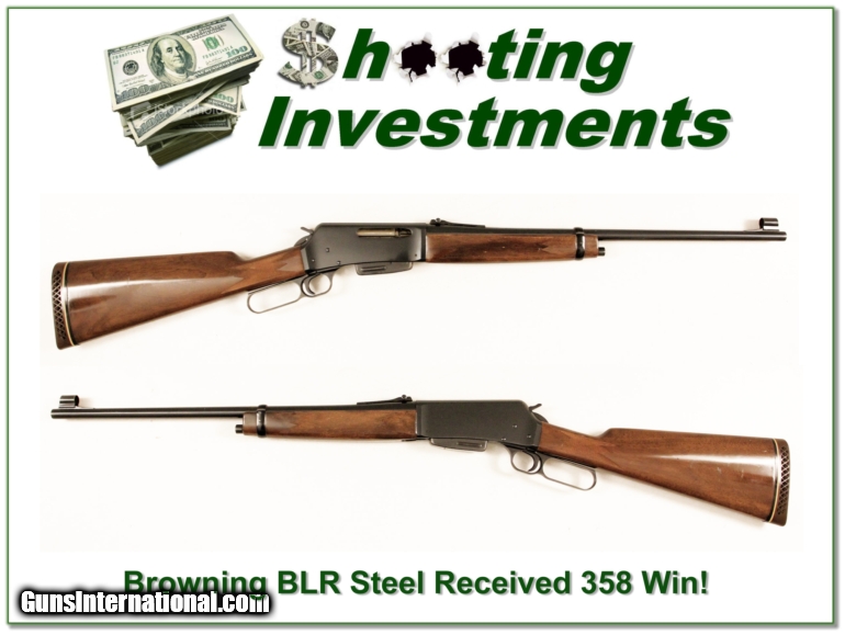 Description: This is an early BLR in 358 Winchester. It has the early steel receiver not the stamped alloy receiver of most. The metal on this one is excellent with only very light edge wear. The wood has only a few minor marks. It could be restored to like new or will make a very nice classic hunting gun as it. All of these 358s are Japan made. Shipping and insurance is $30 or $18 more if you want it shipped in a new Plano hard case. Please email me with any questions or larger pictures. (I now consign quality firearms only 10%! Let me know if you have any you would like to sell!) [15-0209] Payment: Payment is by Money Order, Cashiers Check or Personal Check. I can now also accept MasterCard and Visa with a 3% convenience fee. PayPal can be used for some items but never firearms. Please let us know if you would like to pay via PayPal. Shipping: The shipping charge will be listed in each description. It is $30 for most guns. Some heavy guns or those insured for over $2000 may be higher. Shipments to Alaska and Hawaii are higher because air shipment is required. Most firearms are shipped within 5 days of receipt of payment. We prefer shipping at the beginning of the week to avoid firearms in transit over weekends. We package all shipments carefully and insure them for the full purchase price, rounded up to the next $100. In the unlikely event that damage occurs, it is important that you save all packaging material for the claims process. Optics are shipped Priority Mail and most other non-firearm shipments are shipped First Class. Returns: Our return policy is simple. If for any reason you are not pleased with your purchase, you may return your item for a refund. The only exception is ammunition, it cannot be returned. It is important to us that you are happy. Guns cannot be fired or dissembled before returning them and must be returned in the same condition as received. Notification of a return must occur with-in 3 days of receipt at your dealer. Shipping, convenience and dealer fees are not refundable and are the responsibility of the buyer. Lay-a-way: If needed, we offer a 60 day lay-a-way option on most firearms. It is 1/3 now, 1/3 in 30 days and 1/3 in 60 days. Lay-a-way firearm sales are final. Consigning your firearms with Shooting Investments: We will help you get top dollar for your firearms. While most local guns shops charge 20% or more, our fee is only 10% with a minimum of $50. At your local gun shop it might take months to sell. Selling on-line provides instant access to thousands of interested buyers. You won’t find any other on-line dealer willing to sell your firearms for only 10% or listing every gun on 4 separate s. Selling through an House typically costs the seller 15% and the buyer an addition 15% (so 30%) and you have to wait several months to sell and longer to receive funds. If properly priced, we will sell your firearms in a week or two. Send us an email or give us a call and we’ll explain how easy it is for you to get top dollar. Trading: We collect guns and usually just trade for guns we want to add to our collections. We often sell guns for others wanting to purchase one of ours. We find this the most fair to both of us. Our Commission is only 10% and we hold the gun you want until yours sells. Please contact us if you want to sell one of yours to buy one of ours. Help for California Buyers: We are happy to ship to California. It is the buyer’s responsibility to make sure any item you buy is legal in your state. We are also happy to help with your purchase of a firearm from someone other than us. If you see a gun you would like to buy but the seller can’t or won’t ship to California we can help. You buy the gun and have it shipped to us. We’ll then ship it to your California dealer. The cost for this service is only $30 + shipping. Let me know if we can help! SOLD |