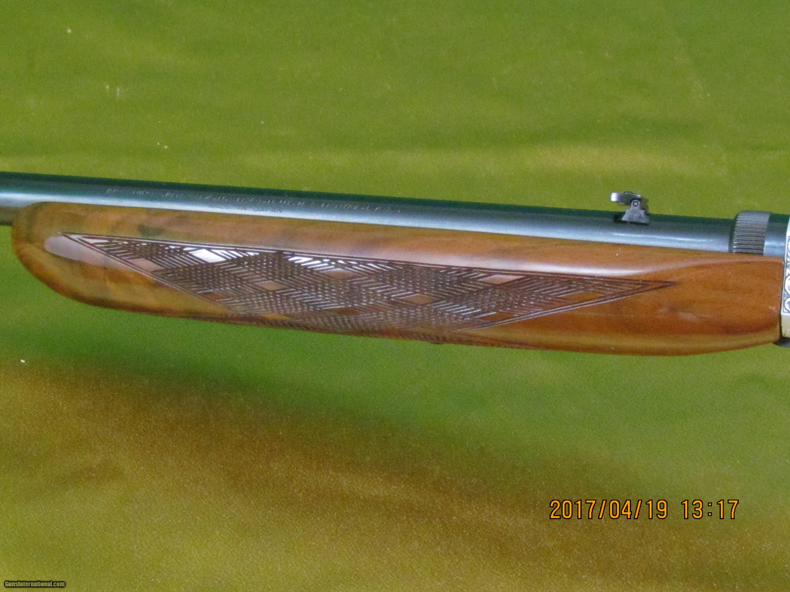 Description: Browning Grade lll Takedown, in .22 Long Rifle with a 19" barrel. Gun was made in 1983 and engraved by T. Nika. This little gun has beautiful wood and exceptional engraving. Gun is about 98-99% condition. Made in Japan, and would be a great addition to your collection. Buyer pays $68.00 shipping Must ship to FFL Dealer. For more info. call Wayne at 513-515-4250 or 513-726-4827 SOLD Manufacturer: Browning Model: Gd. lll takedown Serial Number: 01308 px346 Caliber Info: .22 LR |
