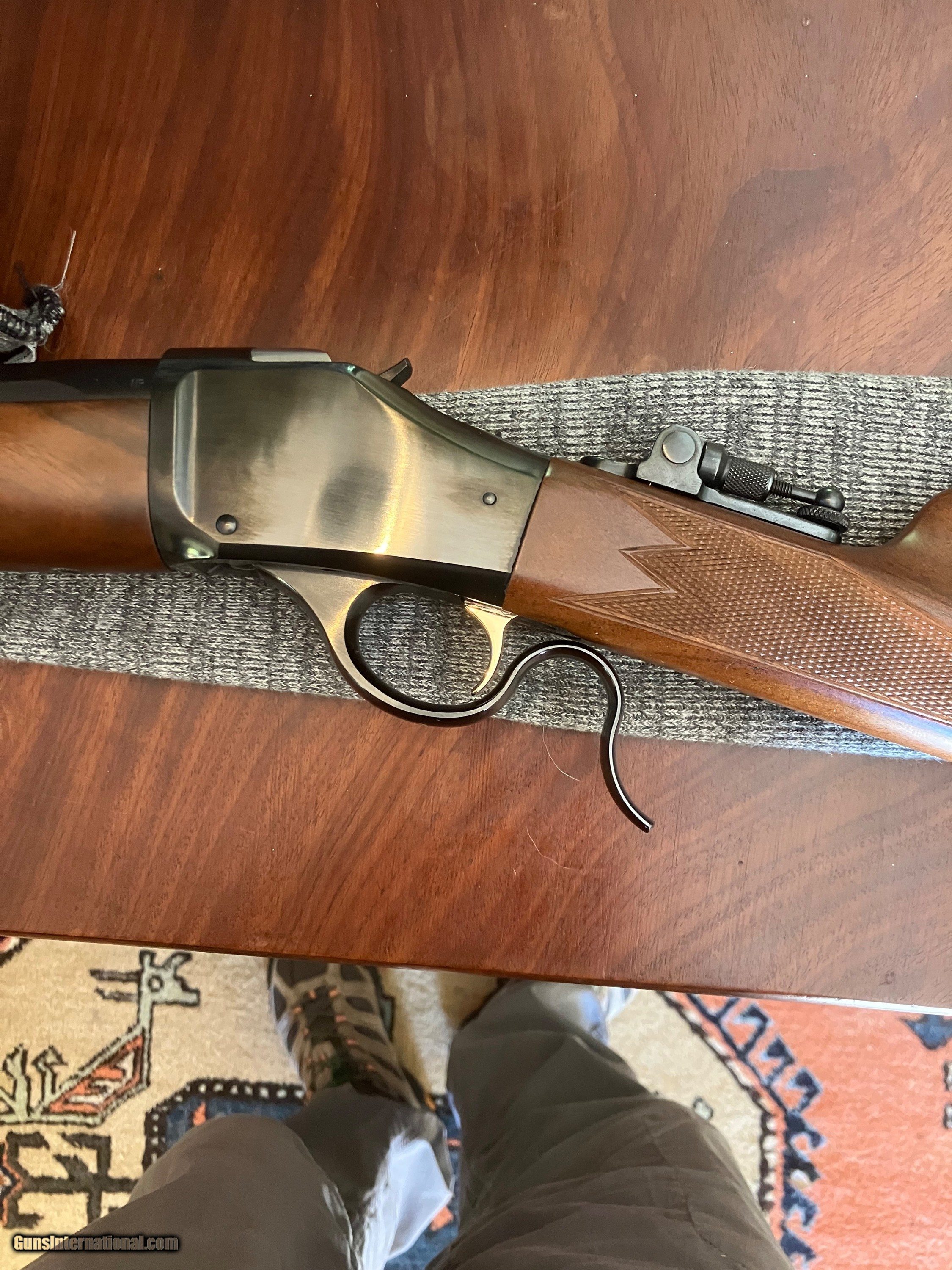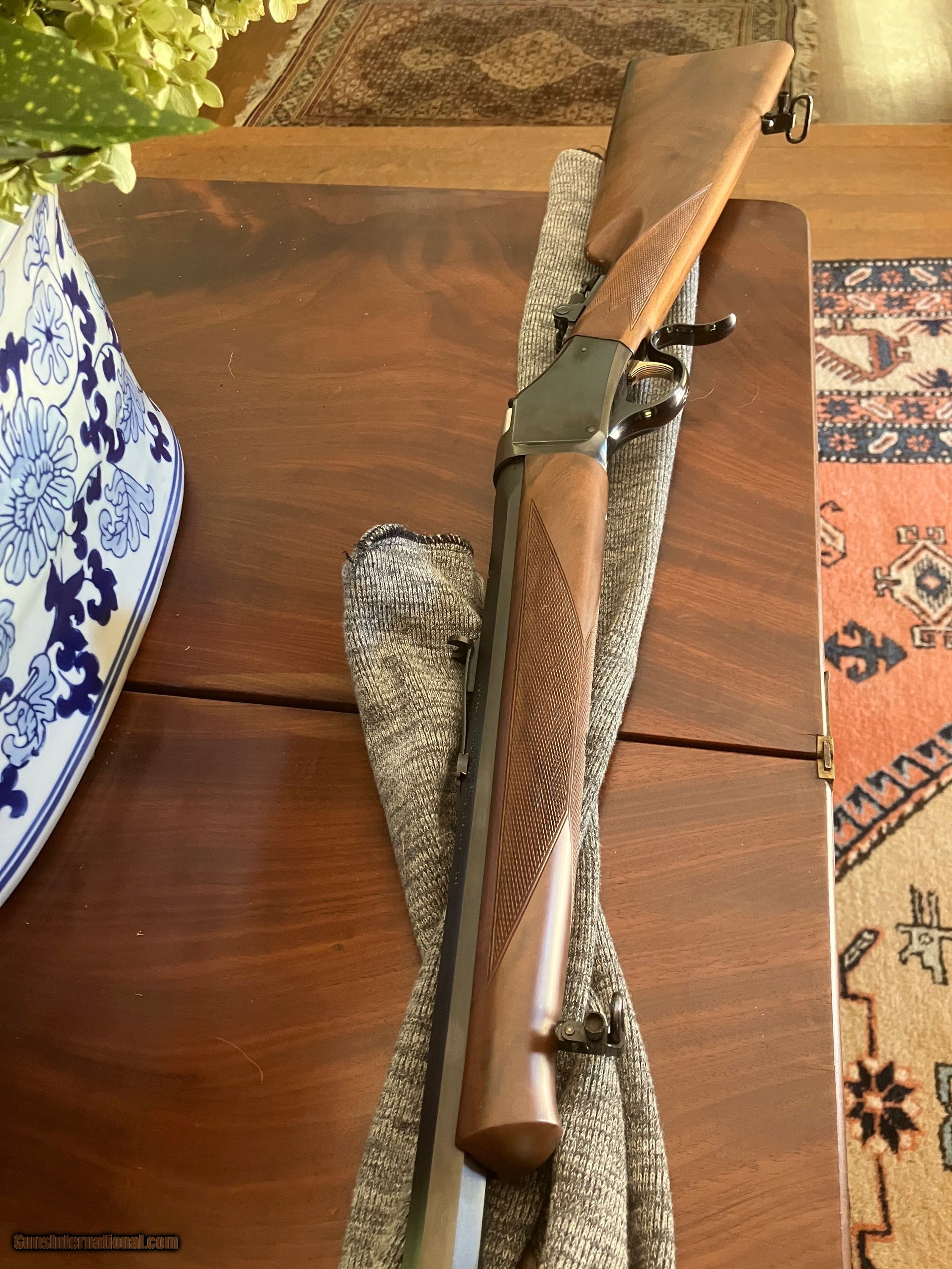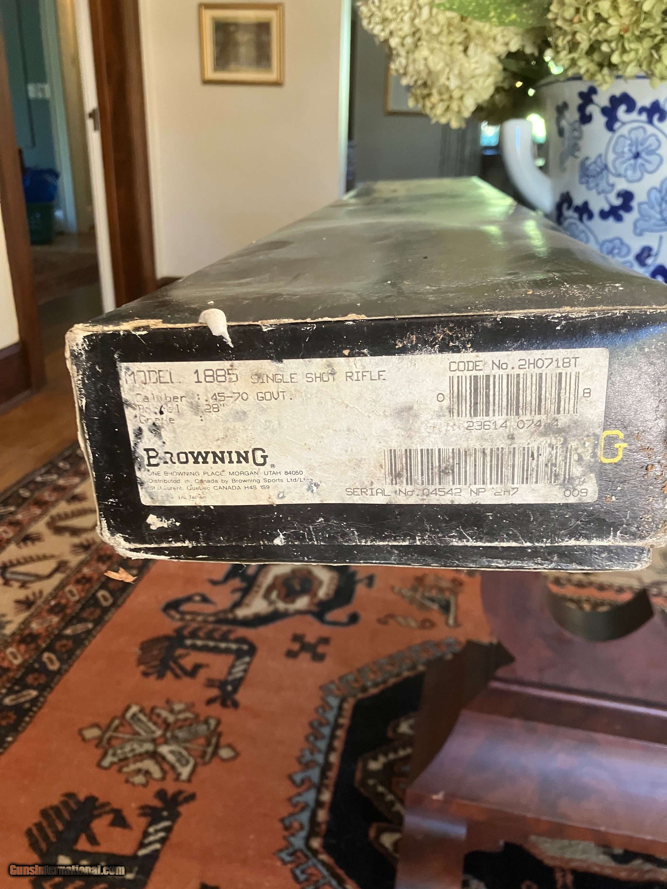 Description: Model 1885 In 45–70, with box and paraphernalia. Excellent condition with one minor mark and some scratches on the butt plate documented in the photos. Safe kept; never fired. Octagonal 28 inch barrel Rifle Caliber: .45-70 Government Manufacturer: Browning Model: Model 2885 Traditional Hunter Barrel Length: 28 Condition: Exc Metal Condition: Exc Wood Condition: Exc Bore Condition: Exc Barrel Type: Octangonal Price: $1,800.00 Pay with ![]() Contact Seller |