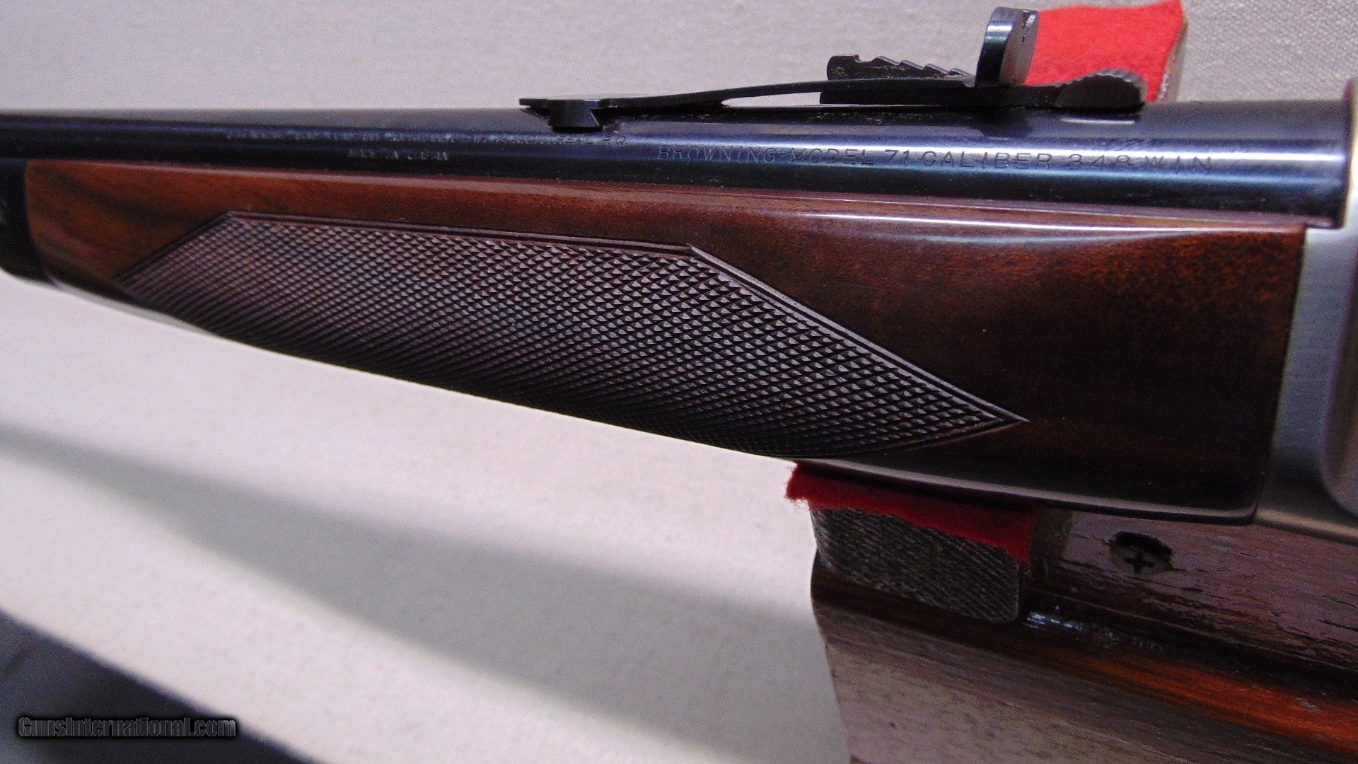 Description: Browning Model 71 high Grade, 348 Win., 24" barrel, Engraved With Gold Inlays, Appears Unfired with Some Handling Marks, See Pictures, In Tatttered Correct Number Box and Manual, Only 3000 Produced 1986-1987!! Store Hours-Thurs-Fri-10AM-8PM Sat-9AM-12PM All Other Times Please Leave a Message, Thank You! No Hawaiian & California Sales 6% Pa Sales Tax Applicable Shipping $35.00 Contact Information Long Shot Gun Shop 299 Hooflander Road Dornsife,Pa.,17823 570-758-2262 longshotgunshopgmail SOLD Rifle Caliber: .348 Winchester Manufacturer: Browning Model: 71 High Grade Serial Number: 02655PR6R7 Barrel Length: 24 |