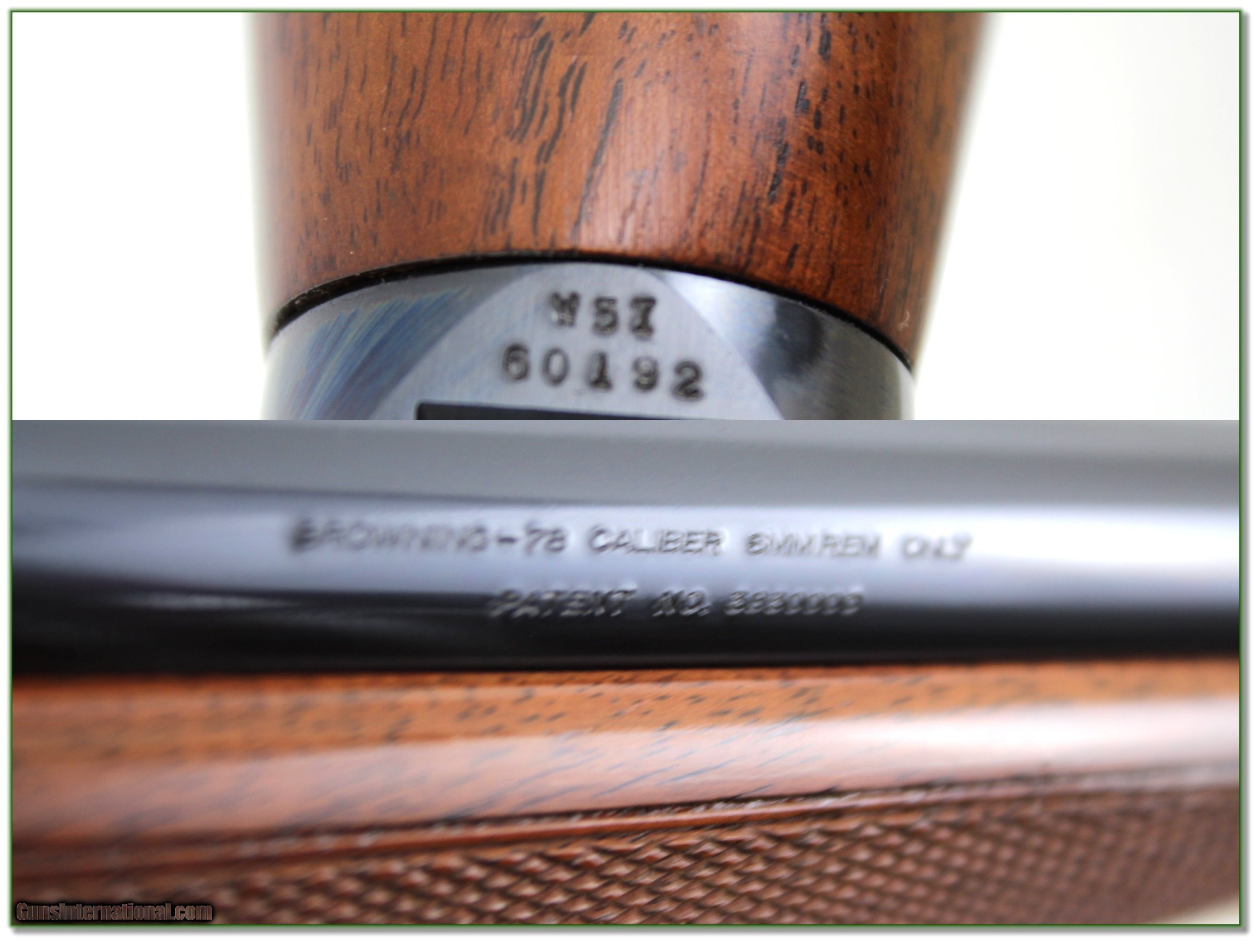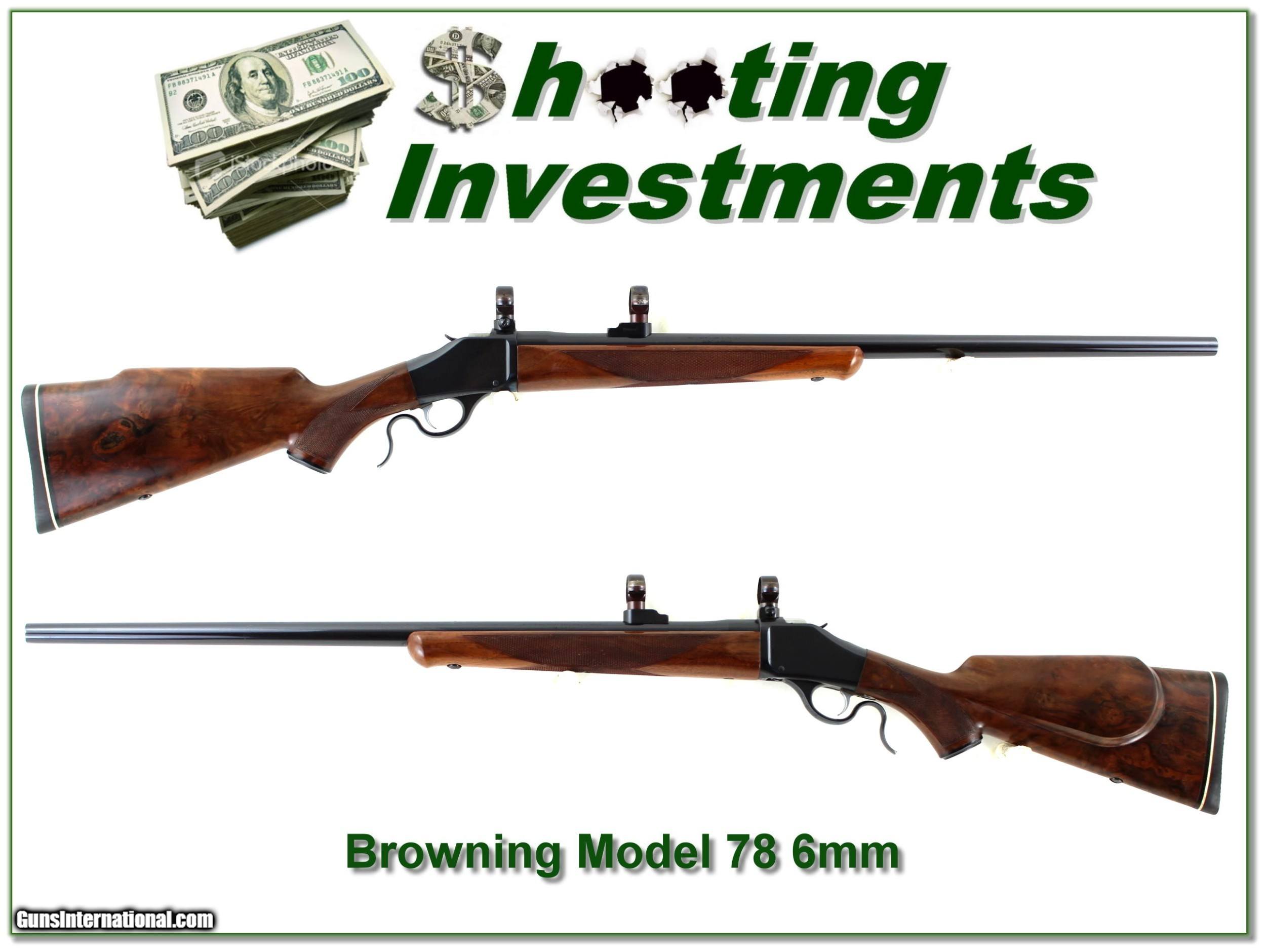 Description: This is a beautiful Browning Model 78 in 6mm Remington. It has the heavy round 26in varmint barrel and comes as seen with factory bases and rings. The blue is excellent with only light thinning on the muzzle wedge. And look at the wood! It has beautiful figure. Someone added a nice shadow line under the check piece and the butt looks to have been refinished with no marks I find. It will make a classic Browning and there are no more of these! I am selling this one on consignment and as such lay-a-way can’t be used. It does of course have the standard 3-day inspection. Shipping and insurance is $39. Please email me with any questions or larger pictures. (Consign your quality firearms with Shooting Investments for only 12%! Let me know if you have any you would like to sell!) 21-1031 Payment: Payment is by Money Order, Cashiers Check or Personal Check. I can now also accept Credit Cards (MasterCard, Visa, Discover & American Express) with a 3% convenience fee. Shipping: The shipping charge will be listed in each description. It is $39 for most firearms. Some heavy guns or those insured for over $2000 will be higher. Shipments to Alaska and Hawaii are higher because air shipment is required. Most firearms are shipped on Tuesday and Thursday and usually in 5 days of receipt of payment. We package all shipments carefully and insure them. Optics are shipped Priority Mail and most other non-firearm shipments are shipped First Class. Returns: Our return policy is simple. If for any reason you are not pleased with your purchase, you may return your item for a full refund of purchase price. Ammunition cannot be returned. It is important to us that you are happy. Guns cannot be fired or dissembled before returning them and they must be returned in the same condition as received. Notification of a return must occur with-in 3 days of receipt at your dealer. Shipping, convenience and dealer fees are not refundable and are the responsibility of the buyer. Lay-a-way: If needed, we offer a 60 day lay-a-way option on most firearms. It is 1/3 now, 1/3 in 30 days and 1/3 in 60 days. Lay-a-way firearm sales are final and if not completed the first payment cannot be returned. Consigning your firearms with Shooting Investments: We will help you get top dollar for your firearms. While most local guns shops charge 20% or more, our fee is only 12% with a minimum of $75. At your local gun shop it might take months to sell. Selling on-line provides instant access to thousands of interested buyers. You won’t find any other on-line dealer willing to sell your firearms for only 12% or listing every gun on 3 separate s. Selling through an House typically costs the seller 15% and the buyer an addition 15% (so 30%) and you have to wait several months to sell and longer to receive funds. If properly priced, we will sell your firearms in a few weeks. Send us an email or give us a call and we’ll explain how easy it is for you to get top dollar. Trading: Trading for use is really just buying your gun to re-sell. If you have a gun you want to trade, please email a picture and we will let you know what we can give or it. You will always get more if we sell it for you on consignment. Help for California Buyers: We are happy to ship to California. It is the buyer’s responsibility to make sure any item you buy is legal in your state. We are also happy to help with your purchase of a firearm from someone other than us. If you see a gun you would like to buy but the seller can’t or won’t ship to California they can ship to use and we’ll then ship it to your California dealer. The cost for this service is only $30 + shipping. Let us know if we can help! SOLD |