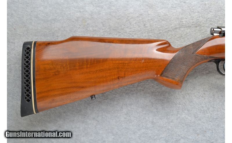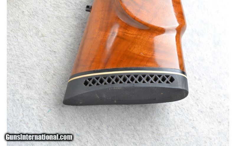 Description: This Browning Safari Model is a right hand bolt action rifle in .30-06 Cal. Only. It has a 22 inch barrel. A raised blade front sight and it has scope mount bases attached. The butt stock is a checkered walnut pistol grip with a raised cheekpiece and the .30-06 Springfield SOLD Chambers: Bolt Action 4 round with a hinged floorplate. Metal Condition: Excellent with a couple of minor handling marks. Wood Condition: Very good. Minor handling marks. Barrels: 22 inch blued barrel. Triggers: Grooved. Stock Dimensions: LOP 14 3/8 inches. Fore End: Checkered grip walnut. Butt Pad: Pachmayr White Line rubber recoil pad. Sights: Raised front blade. Drilled and tapped for a middle sight. Scope mount bases attached. Item Location: Richfield, WI |