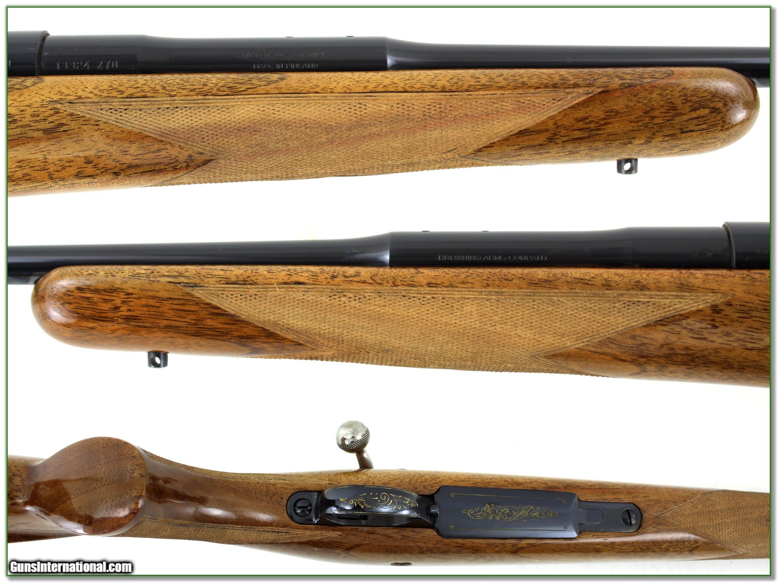 Description: Collectors and varmint hunters, this is a beautiful Belgium made Browning Safari Grade in 22-250 Remington. It ever fired I’m sure only a couple rounds. These were made on a Sako receiver and stocked in Belgium. This one as beautiful wood and I am certain it is NOT Saltwood! The metal is in NEW condition and I find just a couple storage marks on the wood. You will look a long time to find a nicer one. Shipping and insurance is $39. Please email me with any questions or larger pictures. (Consign your quality firearms with Shooting Investments for only 12%! Let me know if you have any you would like to sell!) 20-0481 Payment: Payment is by Money Order, Cashiers Check or Personal Check. I can now also accept MasterCard and Visa with a 3% convenience fee. PayPal can be used for some items but never firearms. Please let us know if you would like to pay via PayPal. Shipping: The shipping charge will be listed in each description. It is $39 for most guns. Some heavy guns or those insured for over $2000 will be higher. Shipments to Alaska and Hawaii are higher because air shipment is required. Most firearms are shipped on Tuesday and Thursday and usually in 5 days of receipt of payment. We package all shipments carefully and insure them. Returns: Our return policy is simple. If for any reason you are not pleased with your purchase, you may return your item for a full refund of purchase price. Ammunition cannot be returned. It is important to us that you are happy. Guns cannot be fired or dissembled before returning them and they must be returned in the same condition as received. Notification of a return must occur with-in 3 days of receipt at your dealer. Shipping, convenience and dealer fees are not refundable and are the responsibility of the buyer. Lay-a-way: If needed, we offer a 60 day lay-a-way option on most firearms. It is 1/3 now, 1/3 in 30 days and 1/3 in 60 days. Lay-a-way firearm sales are final and if not completed the first payment cannot be returned. Consigning your firearms with Shooting Investments: We will help you get top dollar for your firearms. While most local guns shops charge 20% or more, our fee is only 12% with a minimum of $75. At your local gun shop it might take months to sell. Selling on-line provides instant access to thousands of interested buyers. You won’t find any other on-line dealer willing to sell your firearms for only 12% or listing every gun on 3 separate s. Selling through an House typically costs the seller 15% and the buyer an addition 15% (so 30%) and you have to wait several months to sell and longer to receive funds. If properly priced, we will sell your firearms in a few weeks. Send us an email or give us a call and we’ll explain how easy it is for you to get top dollar. Trading: Trading for use is really just buying your gun to re-sell. If you have a gun you want to trade, please email a picture and we will let you know what we can give or it. You will always get more if we sell it for you on consignment. Help for California Buyers: We are happy to ship to California. It is the buyer’s responsibility to make sure any item you buy is legal in your state. We are also happy to help with your purchase of a firearm from someone other than us. If you see a gun you would like to buy but the seller can’t or won’t ship to California they can ship to use and we’ll then ship it to your California dealer. The cost for this service is only $30 + shipping. Let us know if we can help! SOLD |