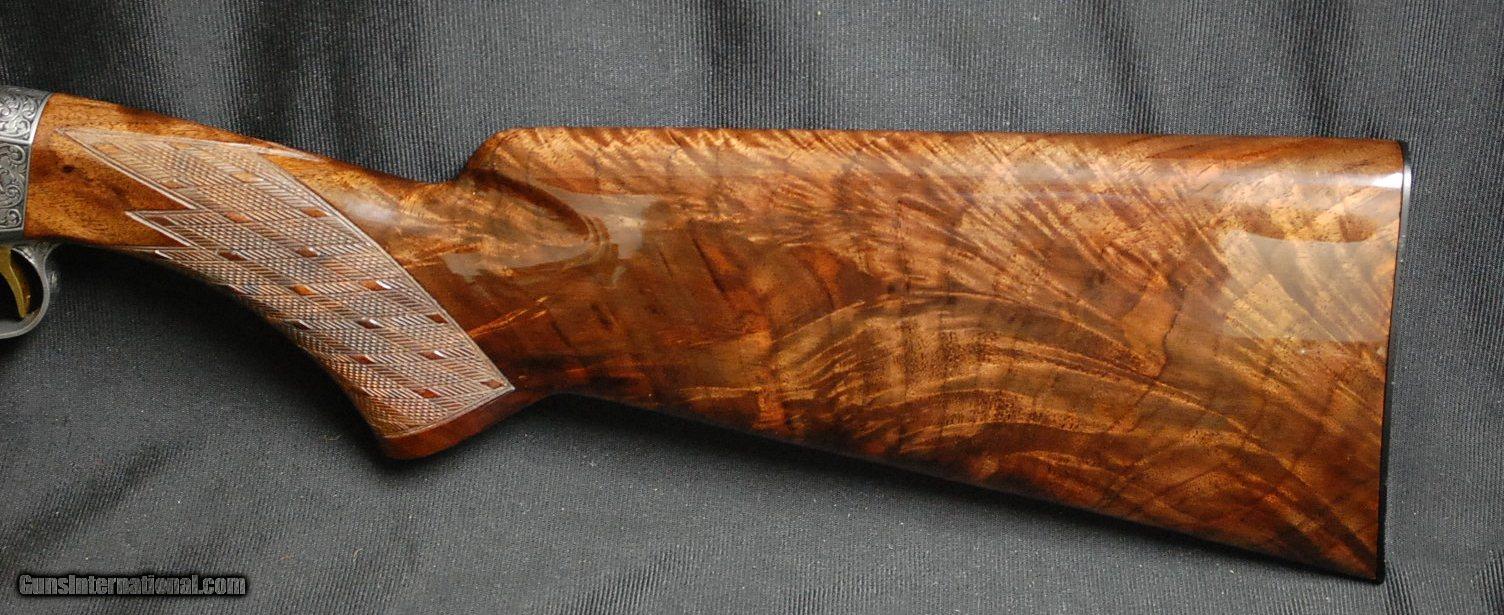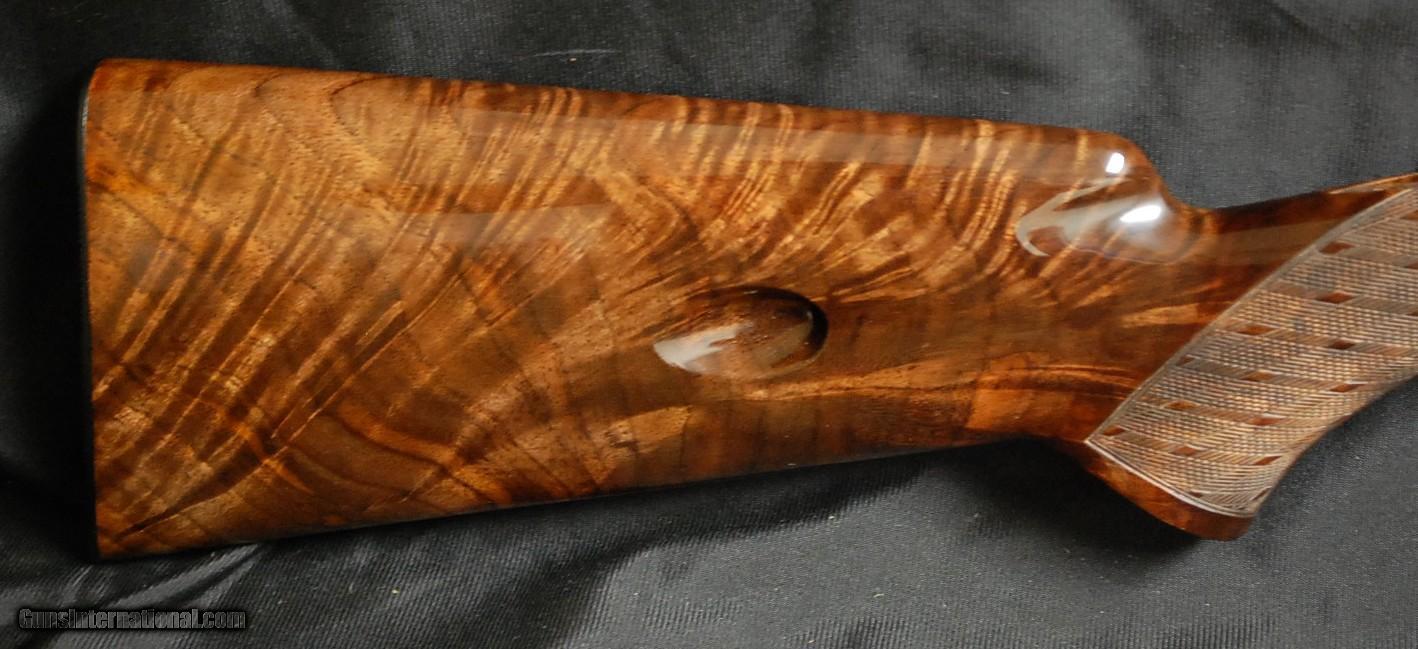 Description: Browning – Safari Grade, .458 Winchester Magnum, 24” barrels, highest quality 1972 Belgian manufacture, pistol grip stock , cheek piece, Browning recoil pad, open sights, tapped for scope mounts, Very light handling marks consistent with light use, a fine example of this rare configuration.