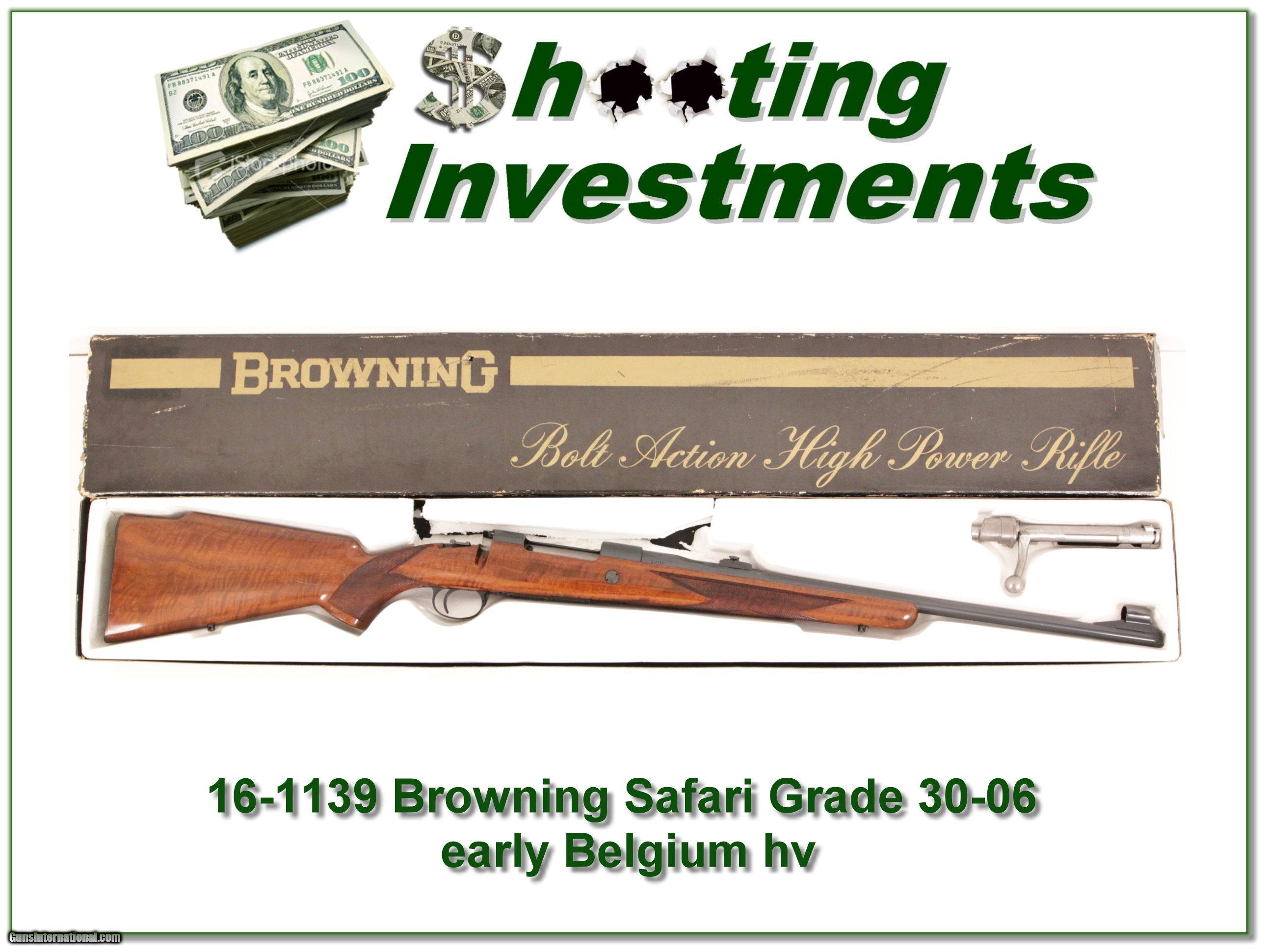 Description: This is a 1960 Belgium made Browning Safari Grade in 30-06. It has beautiful wood and was made well before any saltwood issue. It has some hunting use with some marks here and there. It will make a classic hunting gun and come in original box (serial number on label is missing). I am selling this one on consignment and as such lay-a-way can’t be used. It does of course have the standard 3-day inspection. Shipping and insurance is $35 or $15 more if you want it shipped in a new Plano hard case. Please email me with any questions or larger pictures. (I now consign quality firearms only 10%! Let me know if you have any you would like to sell!) [16-1139] Payment: Payment is by Money Order, Cashiers Check or Personal Check. I can now also accept MasterCard and Visa with a 3% convenience fee. PayPal can be used for some items but never firearms. Please let us know if you would like to pay via PayPal. Shipping: The shipping charge will be listed in each description. It is $35 for most guns. Some heavy guns or those insured for over $2000 will be higher. Shipments to Alaska and Hawaii are higher because air shipment is required. Most firearms are shipped within 5 days of receipt of payment. We prefer shipping at the beginning of the week to avoid firearms in transit over weekends. We package all shipments carefully and insure them for the full purchase price, rounded up to the next $100. In the unlikely event that damage occurs, it is important that you save all packaging material for the claims process. Optics are shipped Priority Mail and most other non-firearm shipments are shipped First Class. Returns: Our return policy is simple. If for any reason you are not pleased with your purchase, you may return your item for a refund. The only exception is ammunition, it cannot be returned. It is important to us that you are happy. Guns cannot be fired or dissembled before returning them and must be returned in the same condition as received. Notification of a return must occur with-in 3 days of receipt at your dealer. Shipping, convenience and dealer fees are not refundable and are the responsibility of the buyer. Lay-a-way: If needed, we offer a 60 day lay-a-way option on most firearms. It is 1/3 now, 1/3 in 30 days and 1/3 in 60 days. Lay-a-way firearm sales are final. Consigning your firearms with Shooting Investments: We will help you get top dollar for your firearms. While most local guns shops charge 20% or more, our fee is only 10% with a minimum of $50. At your local gun shop it might take months to sell. Selling on-line provides instant access to thousands of interested buyers. You won’t find any other on-line dealer willing to sell your firearms for only 10% or listing every gun on 4 separate s. Selling through an House typically costs the seller 15% and the buyer an addition 15% (so 30%) and you have to wait several months to sell and longer to receive funds. If properly priced, we will sell your firearms in a week or two. Send us an email or give us a call and we’ll explain how easy it is for you to get top dollar. Trading: We collect guns and usually just trade for guns we want to add to our collections. We often sell guns for others wanting to purchase one of ours. We find this the most fair to both of us. Our Commission is only 10% and we hold the gun you want until yours sells. Please contact us if you want to sell one of yours to buy one of ours. Help for California Buyers: We are happy to ship to California. It is the buyer’s responsibility to make sure any item you buy is legal in your state. We are also happy to help with your purchase of a firearm from someone other than us. If you see a gun you would like to buy but the seller can’t or won’t ship to California we can help. You buy the gun and have it shipped to us. We’ll then ship it to your California dealer. The cost for this service is only $30 + shipping. Let me know if we can help! SOLD |