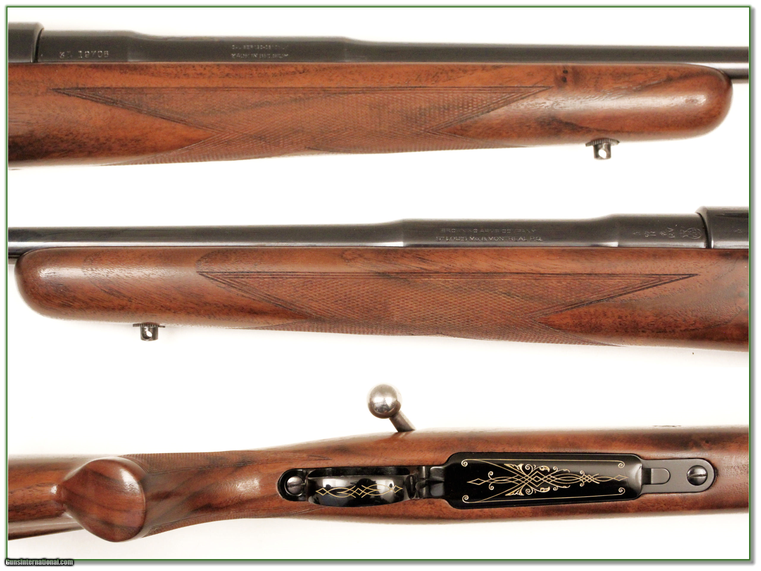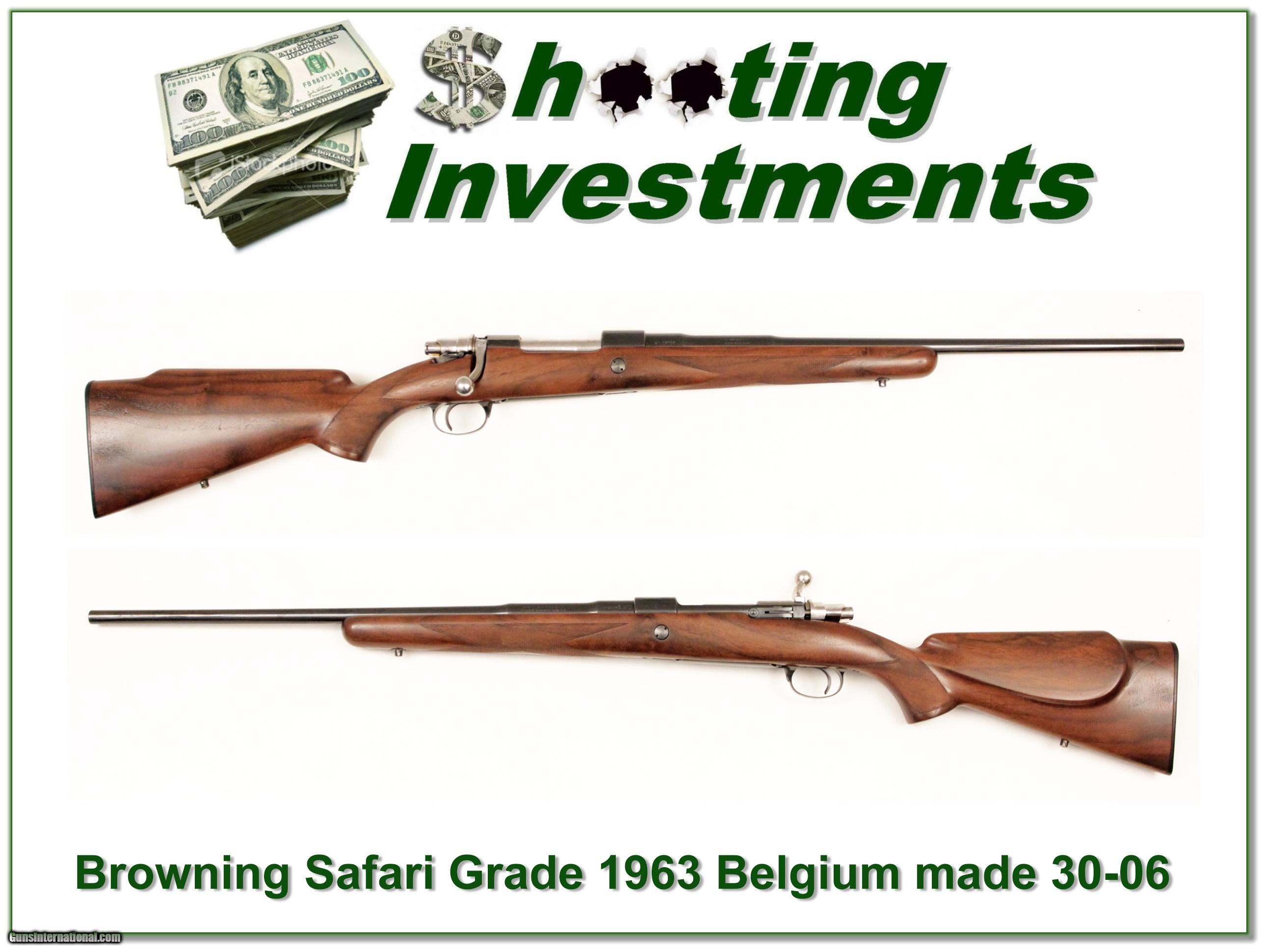 Description: This is a 1963 Belgium made Browning Safari Grade in 30-06. It is well before any saltwood issues so no worries there. This one came without open sights. The metal is excellent. The looks to have been refinished to a satin and is also excellent with no marks of note. This will make a classic hunting gun at the fraction of the price to buy a new gun of this quality be. This is a real Shooting Investment. Shipping and insurance is $35 or $15 more if you want it shipped in a new Plano hard case. Please email me with any questions or larger pictures. (I now consign quality firearms only 10%! Let me know if you have any you would like to sell!) [16-0153] Payment: Payment is by Money Order, Cashiers Check or Personal Check. I can now also accept MasterCard and Visa with a 3% convenience fee. PayPal can be used for some items but never firearms. Please let us know if you would like to pay via PayPal. Shipping: The shipping charge will be listed in each description. It is $35 for most guns. Some heavy guns or those insured for over $2000 will be higher. Shipments to Alaska and Hawaii are higher because air shipment is required. Most firearms are shipped within 5 days of receipt of payment. We prefer shipping at the beginning of the week to avoid firearms in transit over weekends. We package all shipments carefully and insure them for the full purchase price, rounded up to the next $100. In the unlikely event that damage occurs, it is important that you save all packaging material for the claims process. Optics are shipped Priority Mail and most other non-firearm shipments are shipped First Class. Returns: Our return policy is simple. If for any reason you are not pleased with your purchase, you may return your item for a refund. The only exception is ammunition, it cannot be returned. It is important to us that you are happy. Guns cannot be fired or dissembled before returning them and must be returned in the same condition as received. Notification of a return must occur with-in 3 days of receipt at your dealer. Shipping, convenience and dealer fees are not refundable and are the responsibility of the buyer. Lay-a-way: If needed, we offer a 60 day lay-a-way option on most firearms. It is 1/3 now, 1/3 in 30 days and 1/3 in 60 days. Lay-a-way firearm sales are final. Consigning your firearms with Shooting Investments: We will help you get top dollar for your firearms. While most local guns shops charge 20% or more, our fee is only 10% with a minimum of $50. At your local gun shop it might take months to sell. Selling on-line provides instant access to thousands of interested buyers. You won’t find any other on-line dealer willing to sell your firearms for only 10% or listing every gun on 4 separate s. Selling through an House typically costs the seller 15% and the buyer an addition 15% (so 30%) and you have to wait several months to sell and longer to receive funds. If properly priced, we will sell your firearms in a week or two. Send us an email or give us a call and we’ll explain how easy it is for you to get top dollar. Trading: We collect guns and usually just trade for guns we want to add to our collections. We often sell guns for others wanting to purchase one of ours. We find this the most fair to both of us. Our Commission is only 10% and we hold the gun you want until yours sells. Please contact us if you want to sell one of yours to buy one of ours. Help for California Buyers: We are happy to ship to California. It is the buyer’s responsibility to make sure any item you buy is legal in your state. We are also happy to help with your purchase of a firearm from someone other than us. If you see a gun you would like to buy but the seller can’t or won’t ship to California we can help. You buy the gun and have it shipped to us. We’ll then ship it to your California dealer. The cost for this service is only $30 + shipping. Let me know if we can help! SOLD |