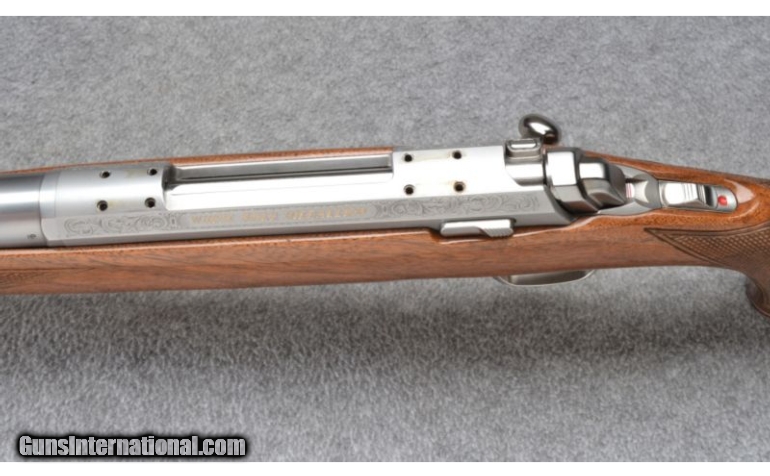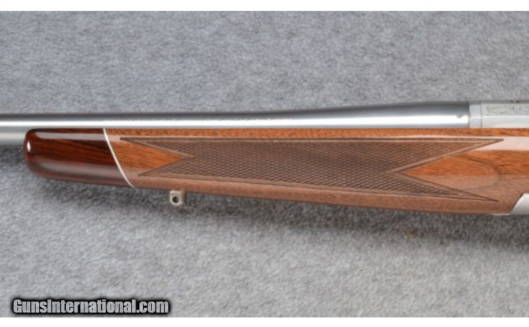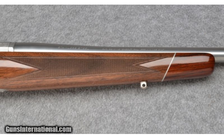 Description: Wood shows a few light storage/use scuffs. Metal and bore remain excellent. No box. SOLD Manufacturer: S/N 017ZMXXX Caliber Info: .338 Win. Mag. Metal Condition: Excellent Wood Condition: Very Good Bore Condition: Excellent Barrels: 26 Triggers: Factory Stock: Checkered Walnut with Right Hand Palm Swell and Rosewood Cap Stock Dimensions: 13 3/8" LOP Fore End: Checkered Walnut with Rosewood Cap Butt Pad: Black Rubber Weight: 7 LB Sights: None Item Location: Wheeling, WV |
